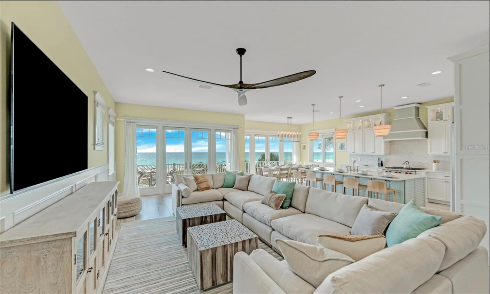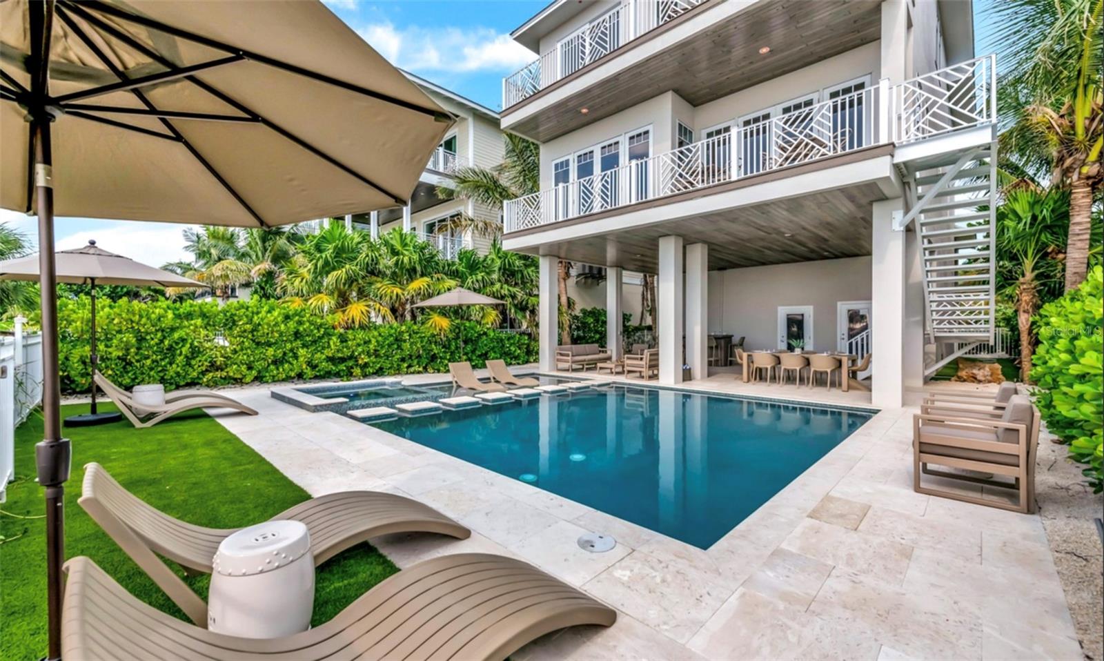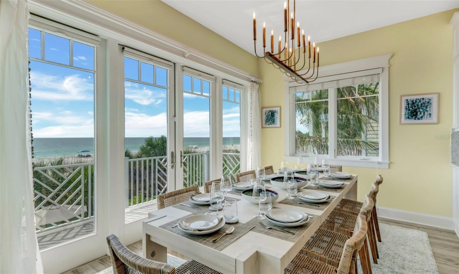 This stunning beachfront luxury home at 2510 Gulf Dr North on Anna Maria Island features 8 bedrooms, 6.5 bathrooms, and sleeps 18 comfortably. Located directly on the beach- the property includes incredible views, a beautiful beachside heated pool and spa, and private walkway access to Anna Maria beaches. The open floor plan in the kitchen and living space is accompanied by multiple decks and balconies offering sunset views. Most bedrooms, the living room, dining room, and even the outdoor entertaining spaces downstairs have gulf views. The floor plan features 6 king bedroom suites. The main level includes living, dining, and kitchen areas with quartz countertops and Wolf appliances. Conveniently located near a mini-golf course, fishing pier, restaurants, shopping, and entertainment at Bridge Street, the home is easily accessible by the free trolley, eliminating the need to drive. This property offers a unique opportunity to enjoy luxury beachfront living on Anna Maria Island with great rental income.