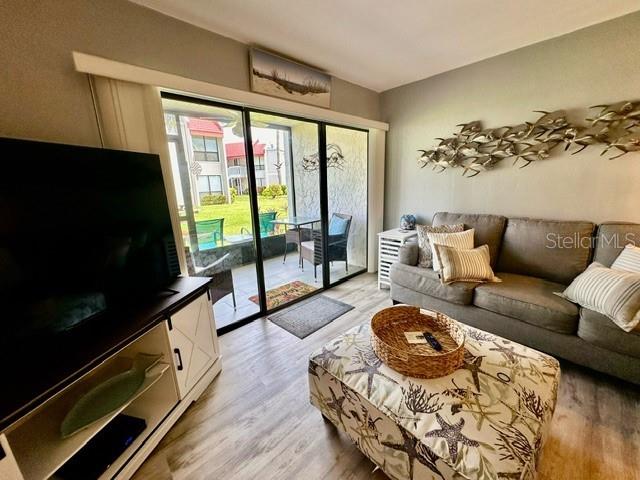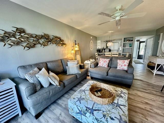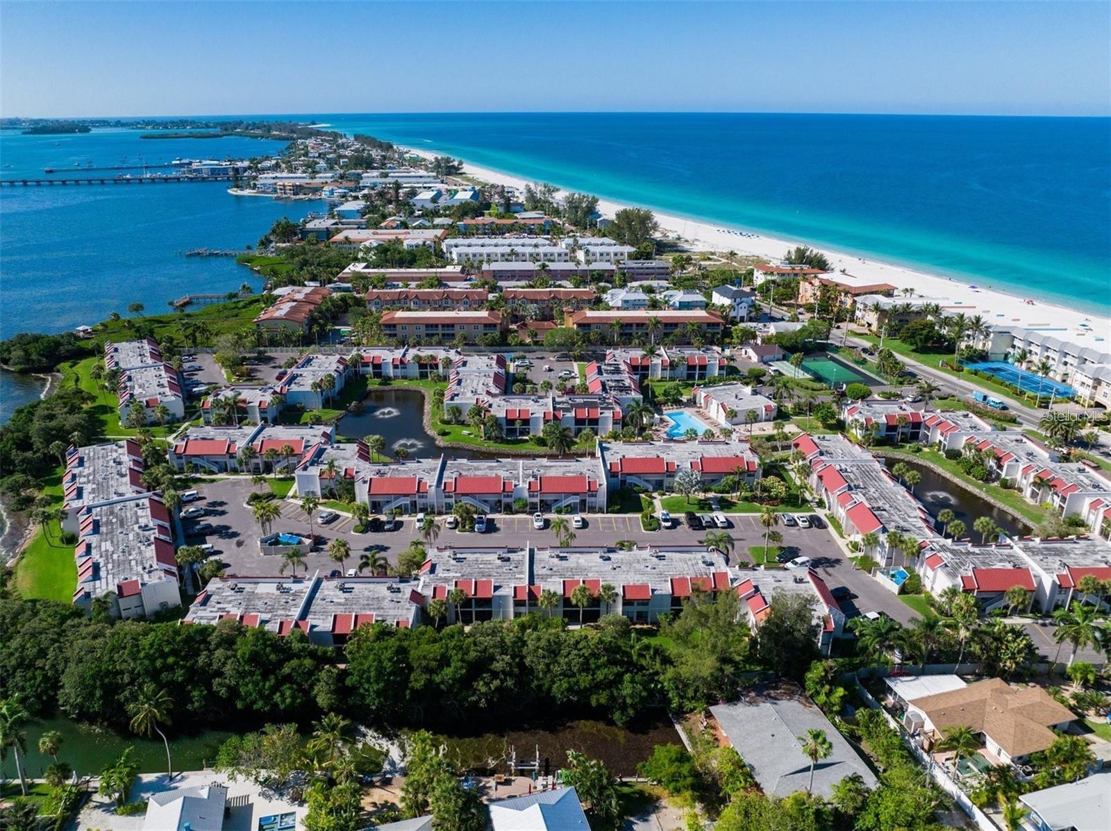 Discover Anna Maria Island in this first floor 2-bedroom, 2-bathroom condo in the highly sought-after Runaway Bay community. This condo has serene lake views to the left and peak a boo bay views on the right from the screened in back patio. Runaway Bay includes exclusive deeded beach access, making it a dream location for residents and/or vacationers. This beachy condo features a primary bedroom with a king-size bed and a spacious walk-in closet. The second bedroom offers convenience with twin beds and built in closet. Modern amenities include flat screen tv in living room, updated living room furniture, a full-size washer and dryer, new luxury vinyl and tile flooring throughout. There are many on-site perks such as a heated swimming pool, sauna, tennis/pickleball courts, a fitness center, clubhouse, bocce ball and shuffleboard. Whether you are seeking a primary residence or a vacation getaway, this property exceeds all expectations. The association allows for weekly rentals. There is $20k in future revenue.