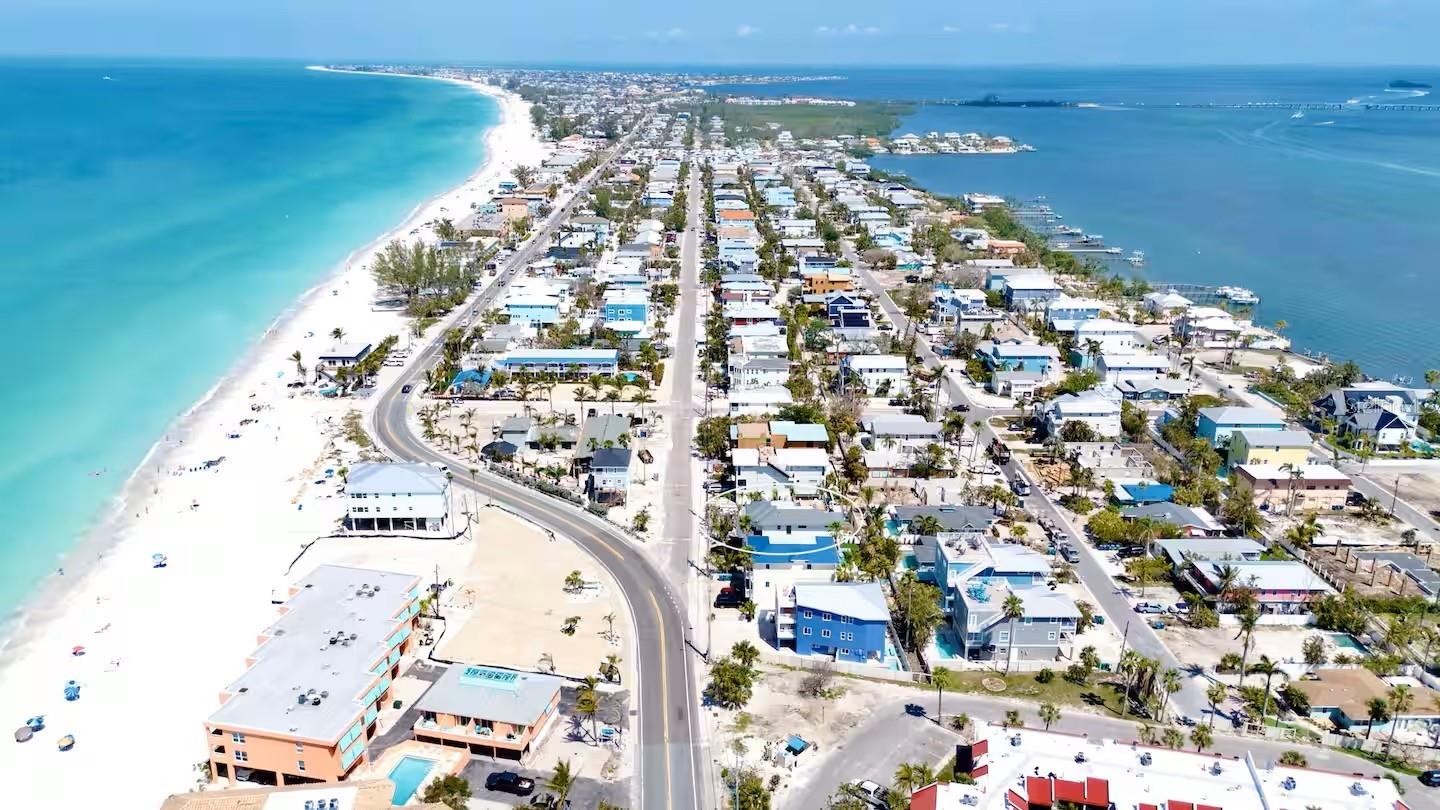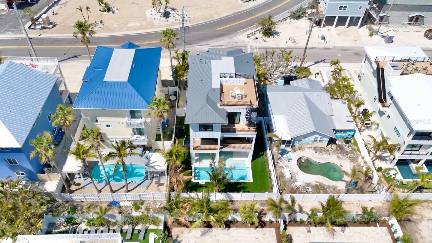 Breathtaking Gulf panoramas and turquoise horizons, this residence rises above the shoreline with postcard-perfect views from every level. Experience coastal luxury living just steps from the sand in this brand-new 7 bedroom, 6.5 bath Gulf-view retreat located in the heart of Bradenton Beach. Thoughtfully designed with vacation living in mind, this home offers resort-style amenities, high-end finishes, and exceptional rental potential — making it ideal as both a personal getaway and a proven income-producing investment. From the moment you arrive, the clean architectural lines, palm-framed entry, and three-car garage set the tone for the sophistication inside. The open-concept main living level features soaring wood-beam ceilings, custom millwork, designer lighting, and an abundance of natural light flowing through oversized sliders that open to multiple balconies with sweeping Gulf views. The chef’s kitchen is beautifully appointed with quartz countertops, premium appliances, an oversized island with bar seating, and open shelving for a truly coastal-luxe look. The spacious dining and living areas transition seamlessly for entertaining large groups or extended family. Each bedroom has been designed for privacy and comfort, many with ensuite baths and private balconies. A separate upper-level lounge and game room with Gulf views provides even more gathering space. Step outside and enjoy your own tropical oasis with a private heated pool and spa, shaded lounge seating, grilling area, and fully fenced yard surrounded by lush landscaping — perfect for enjoying the island lifestyle day and night. The rooftop-level balcony offers some of the best vantage points on the island for sunsets over the Gulf, the ideal backdrop for evening cocktails or quiet relaxation. Located just steps from public beach access, restaurants, shopping, and the charming Bradenton Beach lifestyle, this home provides both unmatched convenience and strong rental income year-round.