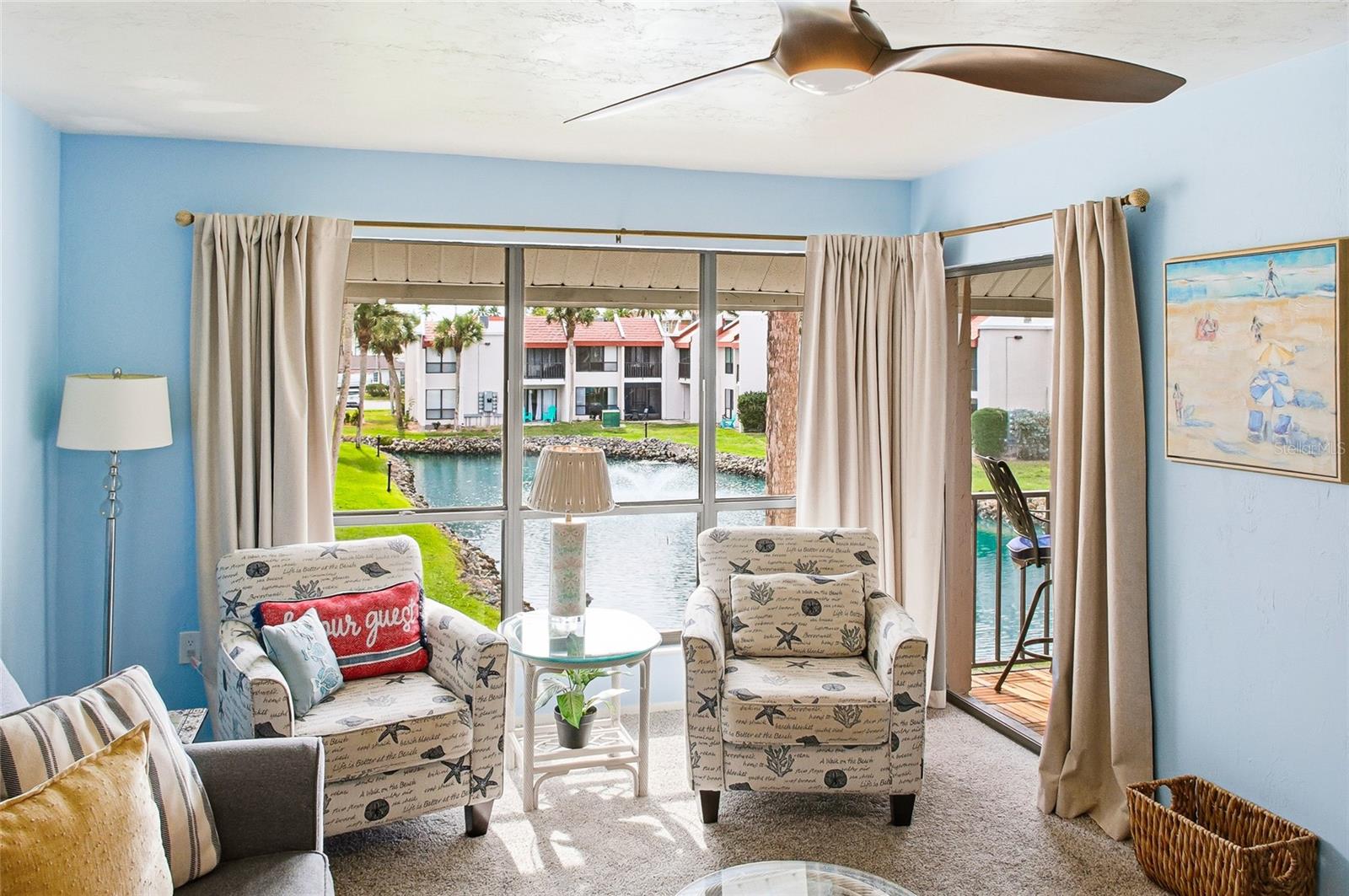 Welcome to Runaway Bay, an island paradise community on Bradenton Beach offering the perfect blend of coastal living and investment potential, with weekly rentals allowed. Ideal as a winter retreat or income-producing getaway, this beautifully updated 1-bedroom, 1-bath residence is located on the second floor and showcases tranquil lagoon views with a sparkling fountain backdrop. Step inside to find an abundance of natural light and the calming sounds of the water just outside. The well-appointed kitchen is thoughtfully designed for easy meal prep and entertaining, opening seamlessly to the living and dining area for a bright, open-concept layout. The spacious primary bedroom comfortably accommodates a king-size bed and features stunning water views along with private access to the lanai. Sellers enhanced the outdoor space with sleek teak wood flooring, creating the perfect spot to relax and soak in the tropical ambiance. An in-unit stacking washer and dryer adds everyday convenience. Significant updates provide peace of mind, including the installation of new roofs and gutters in 2025, a new A/C system in August 2024, and a new water heater in January 2026. The unit is being sold turnkey furnished, excluding a few personal items. The unit includes new TVs, dishes, fixtures, fans, lighting, art, shelving, WiFi thermostat, WiFi entry locks, and a fun color-changing WiFi entry light. Runaway Bay boasts an impressive array of amenities: deeded beach access, a newly oversized observation and fishing pier on the bay, the largest heated pool on Anna Maria Island that has been completely renovated, resurfaced pickleball and tennis courts, shuffleboard, kayak launch, multiple Weber charcoal grills throughout the community, and a clubhouse currently undergoing renovations with a fitness center. Live the island lifestyle and enjoy everything Anna Maria Island has to offer while benefiting from an established vacation rental with bookings already in place from February through April and more on the horizon.