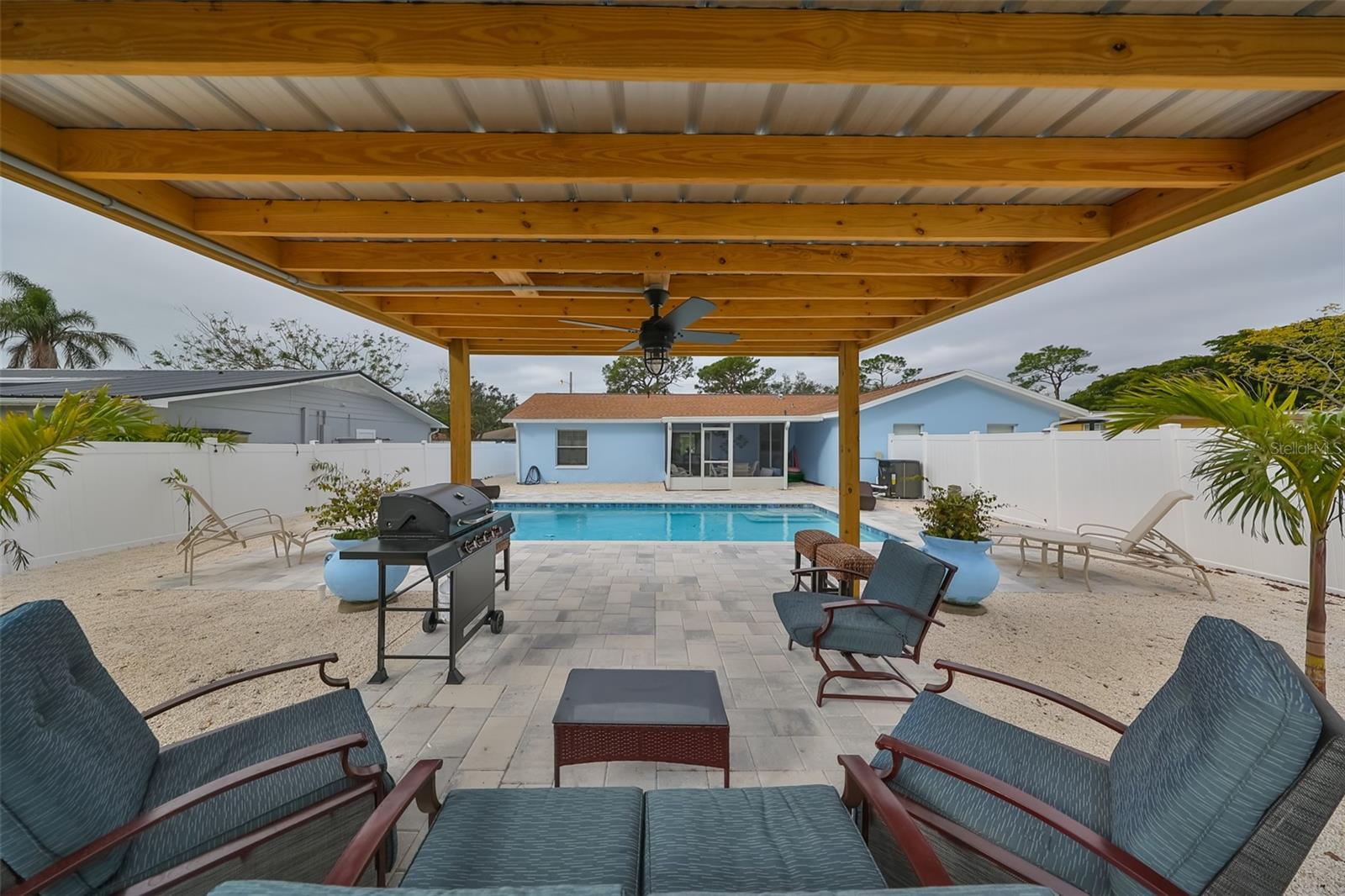 No minimum rental requirements, no flood insurance required, no HOA, no CDD! Are you searching for an oasis just minutes from the beach? Look no further! Welcome to this gorgeous pool home, offering Florida living at its finest, located just 5 miles from our pristine white sandy beaches. Whether you're looking for a beach getaway, a lucrative investment opportunity, or your very own slice of paradise, this property delivers on all fronts. Currently, the main house operates as a short-term rental, while the in-law suite is leased on a month-to-month basis. The main residence boasts 3 bedrooms and 2 full bathrooms, providing ample space for both family and guests. The open-concept living area exudes a welcoming ambiance, ideal for relaxation and entertaining. Expansive windows allow abundant natural light to pour in, enhancing the home's warmth and charm. Step outside to your private, fenced backyard retreat, complete with a screened lanai, a stunning heated pool, and a serene gazebo—perfect for cooling off, unwinding, or simply soaking up the Florida sunshine. This tranquil outdoor space is truly a standout feature of the property. For added versatility, the property includes a fully equipped in-law suite with its own private entrance and fenced backyard. This self-contained living area features 1 bedroom, 1 bathroom, a cozy living room, and a full kitchen, making it an excellent option for guests, extended family, or even as a potential rental unit. Pool added 2024, A/C replaced 2023, Roof replaced 2022. Conveniently located near the beaches, shopping, restaurants, hospitals, etc. This exceptional home offers a rare combination of prime location, luxury living, and income-generating potential. Don't miss out on the opportunity to experience everything this property has to offer—schedule your private showing today!
