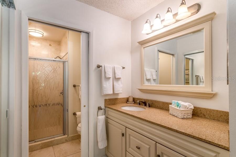 THIS IS A REAL GEM, REAL BRIGHT AND YOU CAN WATCH THE SUNSETS FROM THE BACK PORCH, BUT I WOULD DRIVE A FEW MINUTES AND BE RIGHT ON THE BEACH AT COQUINA, ANNA MARIA ISLAND KNOWN ALL OVER THE WORLD FOR IT'S FINE BEACHES. THIS CONDO HAS BEEN TOTALLY RENOVATED AND THE A/C IS ONLY 8 YEARS OLD. AND A NEWER ELECTRIC WATER TANK. COME IN AND CHECK OUT THE KITCHEN, IT FEATURES A CURVED ARCHWAY PASSTHRU WINDOW. THIS IS THE FIRST TIME I HAVE SEEN THIS AT SHOREWALK. SOLID WOOD CABINETS AND GRANITE COUNTER TOP. SS Appliances. THERE ARE MANY TOP UPGRADES HERE. THE 16 INCH TILE FLOOR IS THE SAME THRUOUT THE CONDO. ALL DOORS WERE REPLACED WITH 6 PANEL COLONIAL MODEL DOORS. The guests bedroom features twin beds with under bed storage drawers. The Guest bathroom features glass doors, new tile on the walls and newer vanity . The entire condo is nicely decorated, everything is newer and clean. The master bedroom has a queen size bed and the bathroom was totally renovated , the shower door as well as the floor pan was changed and the walls were retiled, all rooms have fans, windows have window treatment.