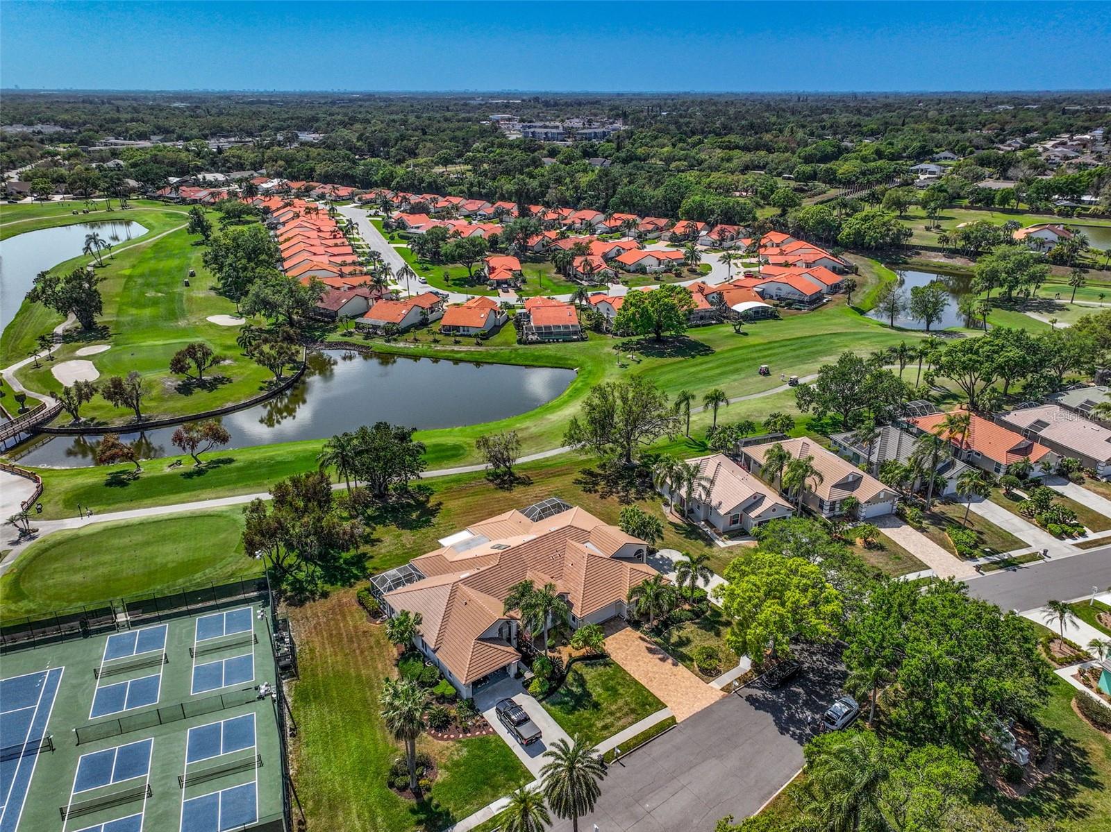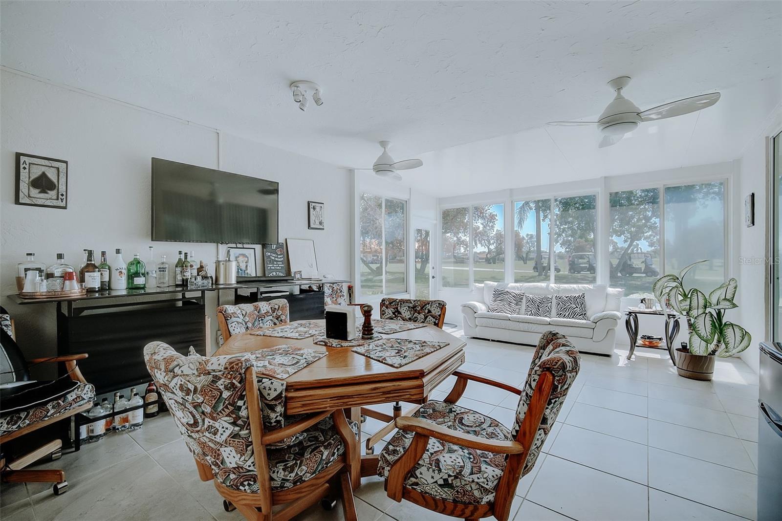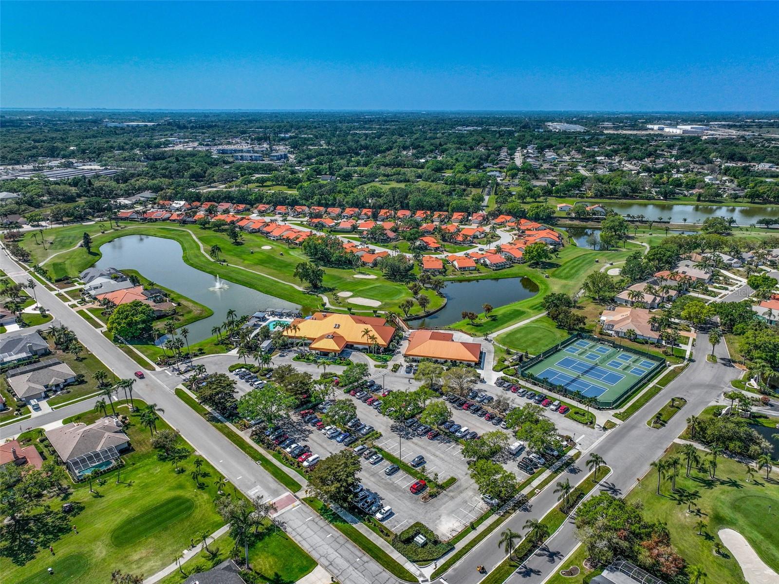 Significant price improvement of $49,000—an Exceptional opportunity for Buyers to secure this beautiful home! Peridia has ONE Triplex located in Peridia Isle and this is the LARGEST of the three homes with PRIME golf course location! You will fall in love with this 1590 Sq. Ft. 2BR/2BA home from the moment you pull into the beautiful paver driveway. As you walk through the double entry door you are surrounded by lots of light and high ceilings. There is an open floor plan connecting the kitchen, dining room and great room making entertaining easy. Kitchen has granite countertops, a breakfast bar and plenty of cabinets for storage. Large main room with walk in closet and an ensuite bath that has split vanities, a soaking tub, a gorgeous shower and a linen closet. The second bedroom is thoughtfully designed to accommodate both family and guests with a Murphy bed. This versatile space allows for flexibility and functionality, ensuring comfort for everyone. The heart of this home is the enclosed sunroom, flooded with natural light from windows galore. It's truly the most used room in the home! Laundry room has a full-size washer and dryer, a utility sink and extra storage cabinets. Take advantage of the convenience of being steps away from well-maintained tennis courts. Perfect for staying active and engaging in friendly matches with neighbors and friends. Peridia Golf & Country Club is an active golf community with amenities including golf, clubhouse, swimming pool, tennis and restaurant. Enjoy everything from Men & Women's Golf Leagues, Card Clubs, Bocce Ball, Pickle Ball, Special Member Dinner Dances, Live Entertainment at Tiki Bar, etc... $4,000 One Time Cap. Reserve, $938 Qrtly Master Assoc, $450 Annual food/beverage, $455 Quarterly Yard Care, $200 One Time App Fee. Call this place home today and experience a vibrant community lifestyle!