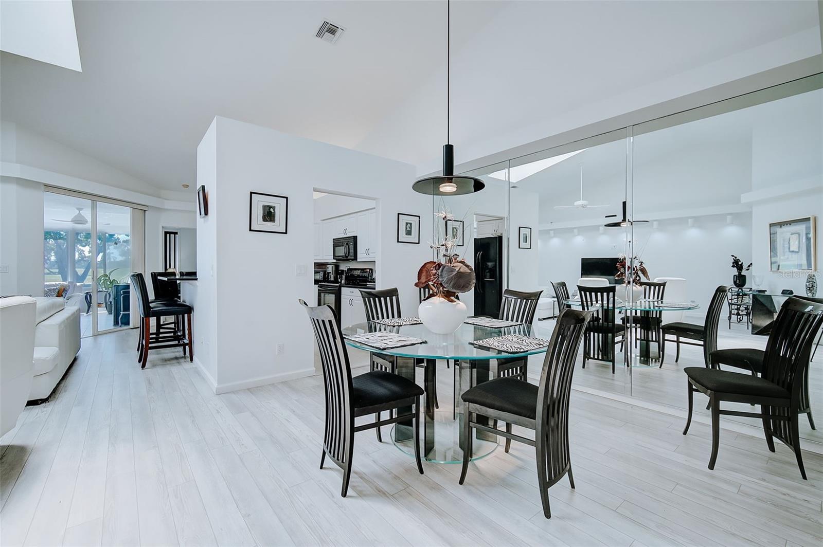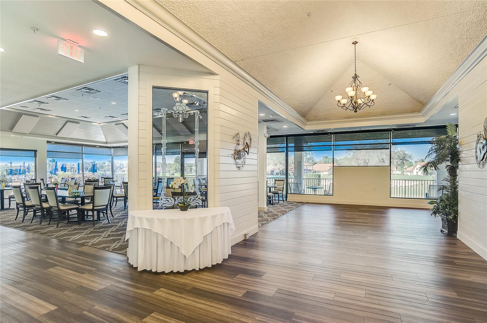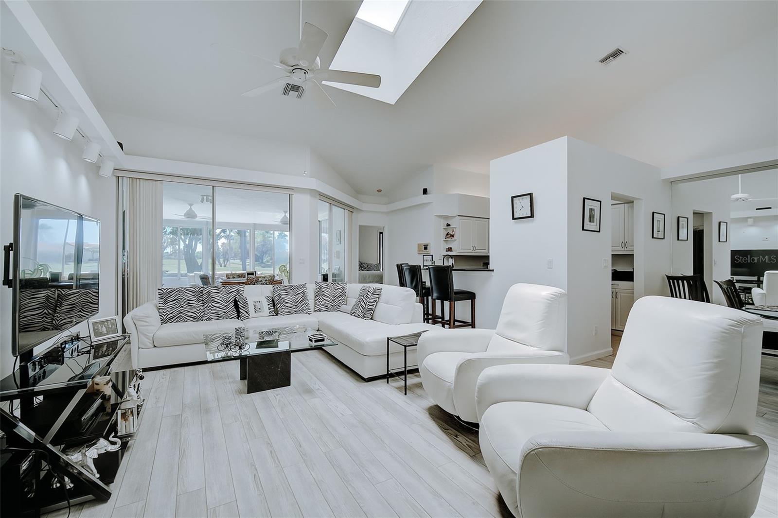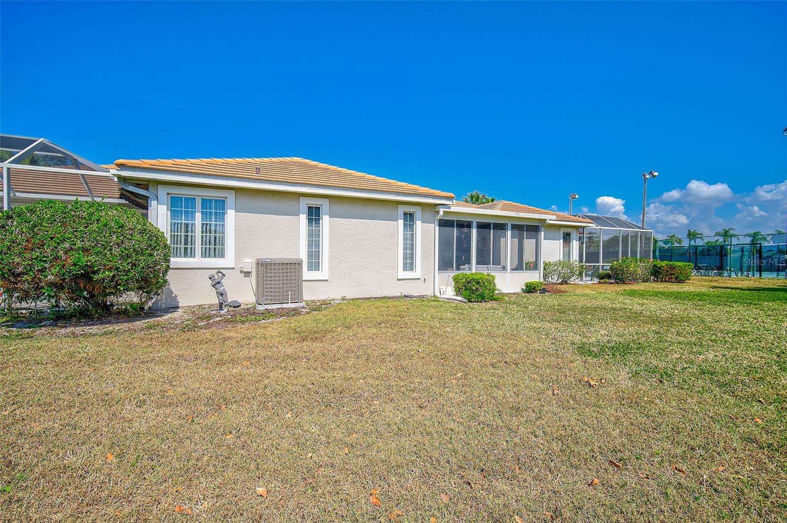 Significant price improvement of $49,000—an Exceptional opportunity for Buyers to secure this beautiful home! Peridia has ONE Triplex located in Peridia Isle and this is the LARGEST of the three homes with PRIME golf course location! You will fall in love with this 1590 Sq. Ft. 2BR/2BA home from the moment you pull into the beautiful paver driveway. As you walk through the double entry door you are surrounded by lots of light and high ceilings. There is an open floor plan connecting the kitchen, dining room and great room making entertaining easy. Kitchen has granite countertops, a breakfast bar and plenty of cabinets for storage. Large main room with walk in closet and an ensuite bath that has split vanities, a soaking tub, a gorgeous shower and a linen closet. The second bedroom is thoughtfully designed to accommodate both family and guests with a Murphy bed. This versatile space allows for flexibility and functionality, ensuring comfort for everyone. The heart of this home is the enclosed sunroom, flooded with natural light from windows galore. It's truly the most used room in the home! Laundry room has a full-size washer and dryer, a utility sink and extra storage cabinets. Take advantage of the convenience of being steps away from well-maintained tennis courts. Perfect for staying active and engaging in friendly matches with neighbors and friends. Peridia Golf & Country Club is an active golf community with amenities including golf, clubhouse, swimming pool, tennis and restaurant. Enjoy everything from Men & Women's Golf Leagues, Card Clubs, Bocce Ball, Pickle Ball, Special Member Dinner Dances, Live Entertainment at Tiki Bar, etc... $4,000 One Time Cap. Reserve, $938 Qrtly Master Assoc, $450 Annual food/beverage, $455 Quarterly Yard Care, $200 One Time App Fee. Call this place home today and experience a vibrant community lifestyle!