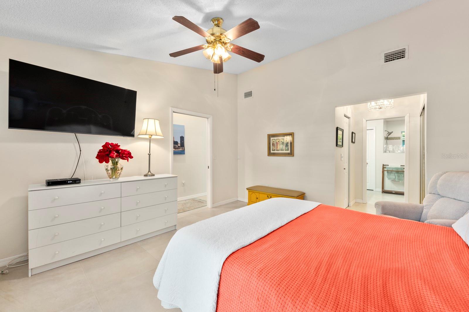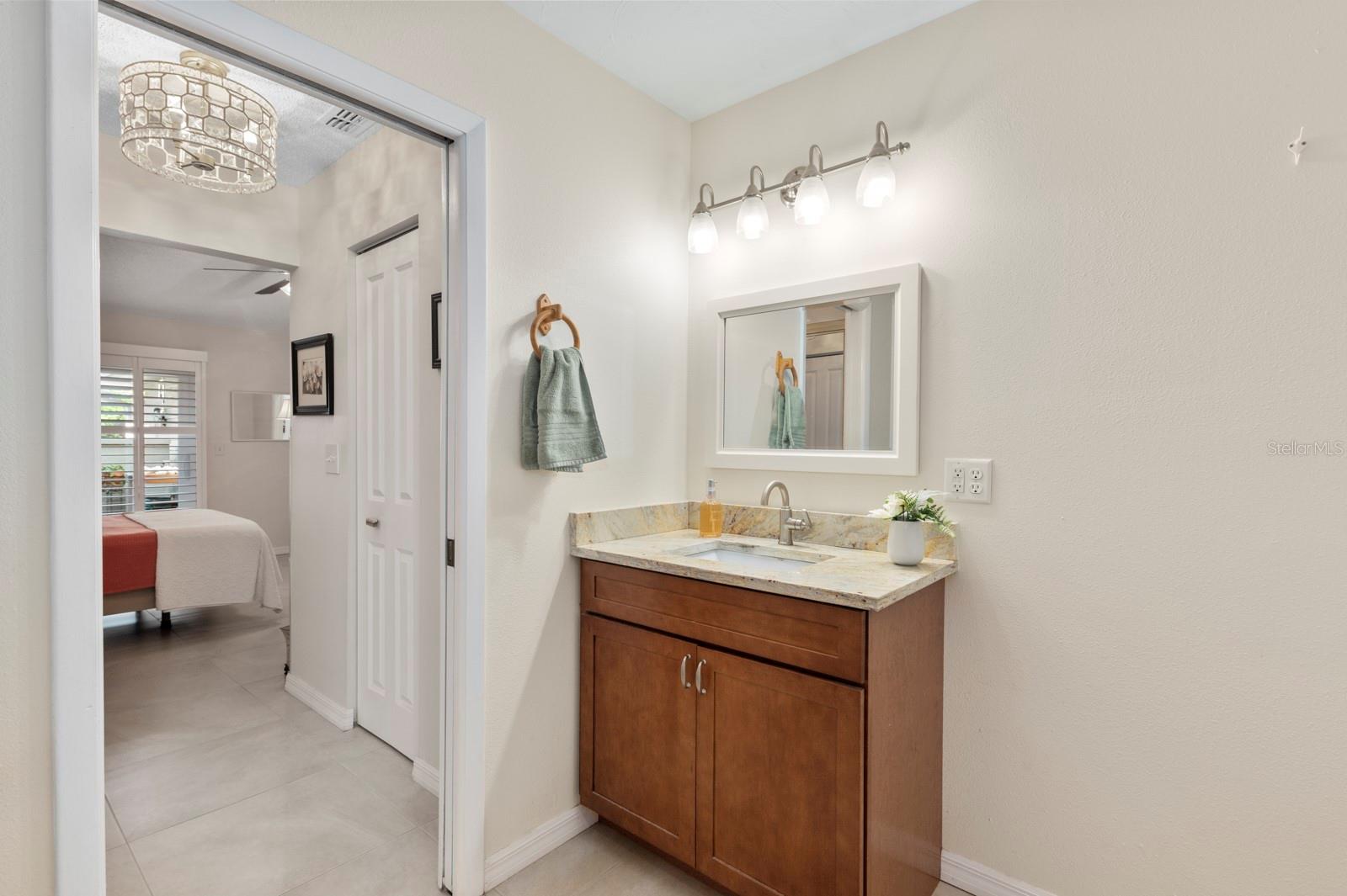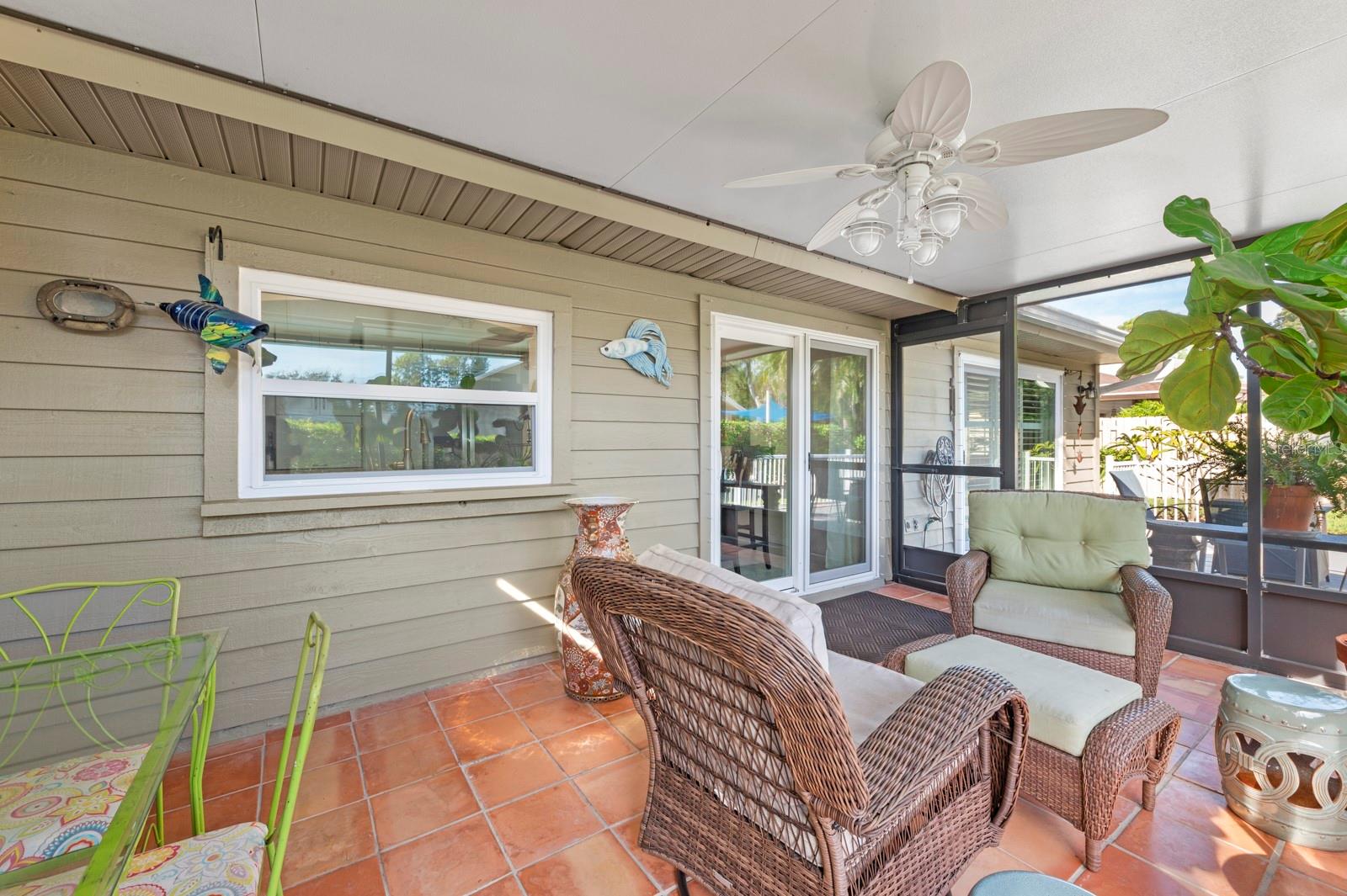 Welcome to your gorgeous new villa in Turnberry Woods at El Conquistador! This meticulously maintained 3-bedroom, 2-bathroom residence offers a perfect blend of comfort, style, and convenience. Step inside and be greeted by the elegant interior featuring large porcelain tile floors and plantation shutters throughout, creating a timeless and stylish ambiance. The remodeled kitchen (2017) is a chef's dream, boasting granite countertops, a striking granite backsplash behind the range and range hood, and new top-of-the-line appliances (2023). Both bathrooms have been tastefully remodeled (2017-2018), adding a touch of modern elegance to the home. Outside, the home is equally impressive with new windows and all new sliders (2021), providing an abundance of natural light and a seamless indoor-outdoor living experience. The paver walkways and courtyards continue the luxurious touches from the inside to the outside. There are multiple outdoor seating areas, both screened and unscreened, perfect for enjoying the Florida sunshine. The rear deck features Trex decking (2020) and railing, creating a perfect spot for relaxation. Additionally, the home is equipped with clear lightweight hurricane shutters for all windows and doors, ensuring peace of mind during storm season. The main roof was replaced and the exterior was painted in 2022. The lanai roof was replaced and the lanai rescreened in 2019. Conveniently located just steps away from the community pool, this home is also close to IMG Academy, the State College of Florida (SCF), downtown Bradenton, and Sarasota. Enjoy easy access to Bradenton and Anna Maria beaches, as well as proximity to golfing, dining, and shopping destinations. Don't miss the opportunity to make this exquisite property your own! Check out the 360 degree virtual tour here: https://my.matterport.com/show/?m=PCpo95fZhWg Schedule a showing today and experience the luxurious lifestyle that awaits you in this beautiful Bradenton home.