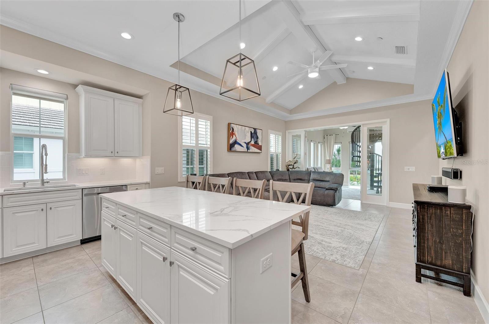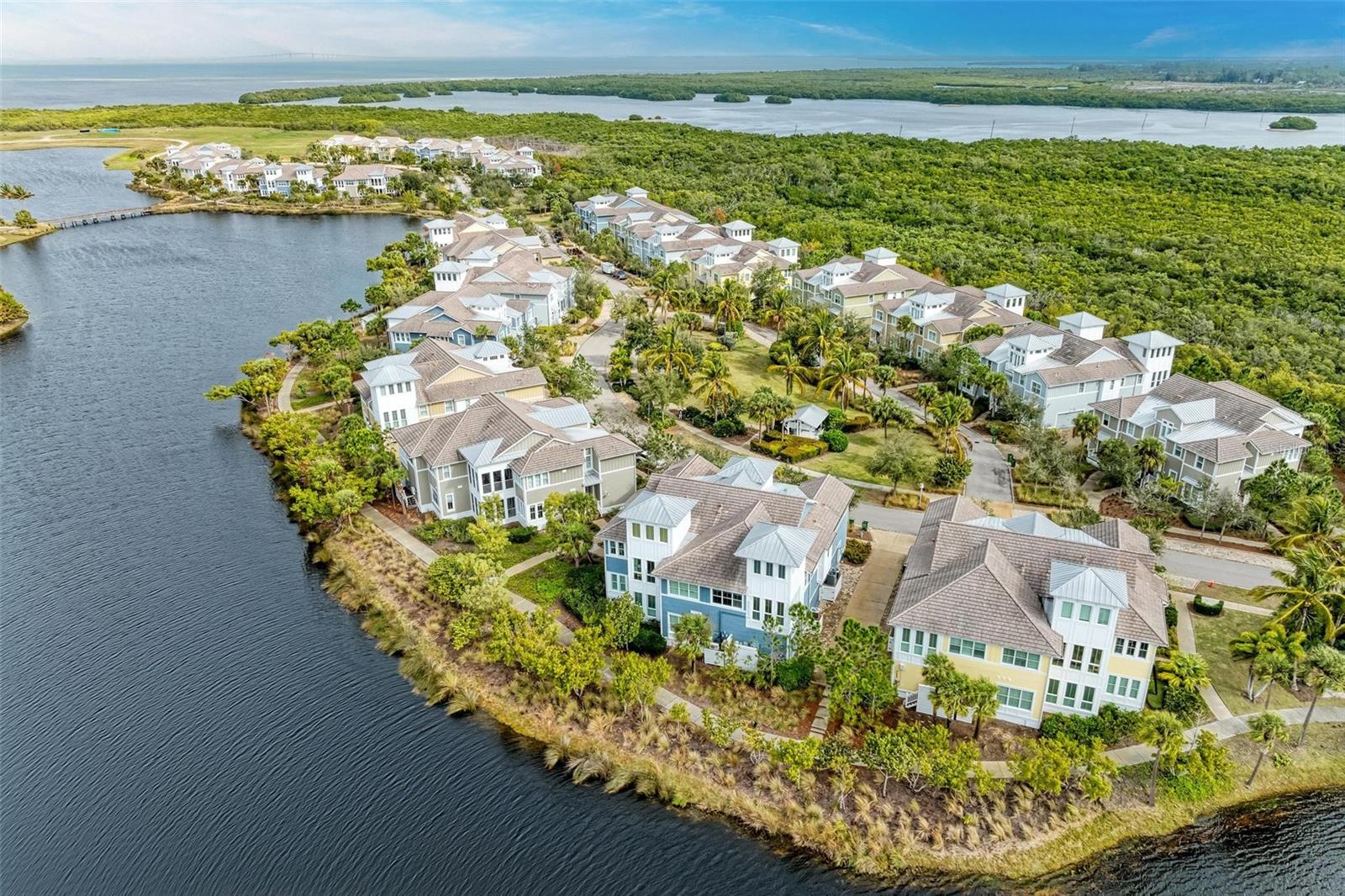 Welcome home to this beautiful, waterfront, easy, breezy coastal living home. It truly is seaside living at its best! Discover award-winning Harbour Isle—gated, resort-style living on gorgeous Anna Maria Sound. This popular Andros Grand unit offers dramatic sunset views over Sapphire Lake. You will love the upgrades in this home! Entertaining will be delightful in this bright open floor plan with exceptional finishes throughout this beautiful home. Custom window treatments are included throughout — including draperies, plantation shutters, and shades. Living room with dramatic wood-beamed vaulted ceiling, sunroom, dining room and a large kitchen with stainless appliances (most of which were purchased new in 2022), premium cabinetry, quartz counters, and a large island are featured in the open and airy plan. The primary retreat features serene water views, a luxurious large walk-in shower, and a custom closet. Two additional large bedrooms (one with extensive custom cabinetry) and two more full baths round out this spacious living. From the 3rd-floor observatory, enjoy expansive water views and breath-taking sunsets. The home is LEED-certified and has a large two-car garage and your own private elevator. While inside the gates at Harbour Isle, explore two miles of neighborhood walking trails. Stroll to one of the four nearby heated neighborhood pools with outdoor grills, cabanas, a fire pit, a lap pool, and kayak launch for the 38-acre lake. End the day with an incredible sunset at the 23,000 square-foot Beach Club overlooking Anna Maria Sound. The Beach Club features resort-style amenities with the Sky Bar, Lounge, Pavilion, Fitness Center, Yoga Lawn, Event Lawn, resort pool, hot tub, and a private beach to launch a kayak in the Sound. Just outside the gates of Harbour Isle, you’ll find the Margaritaville-inspired Compass Hotel, Safe Harbour Marina, and Floridays waterfront tiki restaurant. Cross the Manatee Bridge and you’re on Anna Maria Island with its sugar sand beaches and quaint island charm and just minutes away you will find the natural beauty of Robinson Preserve with kayaking, walking trails, and bike paths. Wait no longer! It’s time to start living your best life. Live, relax, enjoy an active lifestyle in this beautiful home! Make your appointment today! View video copy and paste:https://vimeo.com/902604974