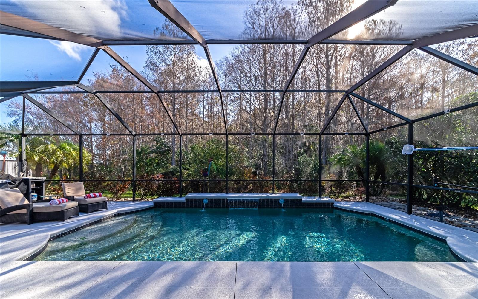 MOTIVATED SELLER...ALL REASONABLE OFFERS WILL BE CONSIDERED! Ultimate privacy with a PRESERVE behind you, MATURE LANDSCAPING on both sides of your SCREENED AND HEATED SALTWATER POOL, and ALL OUTDOOR FURNITURE PLUS THE GRILL INCLUDED! 2,203 Sq ft, 3 BD, 2 BA, PLUS Den/OFC, Split Floor Plan, 2 Car Garage, Private, Preserve Views, Heated Saltwater Pool, Outdoor Kitchen, Tile Roof, Hardwood Floors, Double Oven, Garage Storage, Security Cameras, Resort-Style Living, Gated Community with LOW HOA FEES and GREAT AMENITIES. Welcome to your serene retreat in the peaceful community of Stoneybrook at Heritage Harbour. This meticulously maintained residence offers modern amenities and inviting warmth, ideal for families. Nestled against a lush preserve, it ensures privacy and a seamless connection to nature. Freshly painted interiors and exteriors, coupled with a recently pressure-washed roof, illuminate every corner with refreshing brightness. The beautifully landscaped front yard enhances the home’s welcoming atmosphere. Inside, discover a welcoming family room with a cozy built-in electric fireplace. The updated kitchen boasts stylish, top-tier appliances. Retreat to the primary suite with a custom closet, upgraded doors, and tranquil views of the sparkling pool and lush preserve. Outside, enjoy a private screened-in oasis with an inviting outdoor kitchen for al fresco dining and a heated saltwater pool. Modern conveniences include keyless entry, a Ring Camera for security, and smart garage storage solutions. This home harmonizes practicality with luxury, offering a vibrant haven where every detail enhances your living experience. Immerse yourself in Florida living with Stoneybrook's vibrant resort-style amenities: an 18-hole golf course (Golf membership not required), community pool, hot tub, fitness center, dog park, and courts for tennis, basketball, bocce, and pickleball. Activities available daily including clubs, games and special events. Conveniently located near I-75, Tampa, pristine beaches, and top shopping destinations, it's the perfect blend of luxury and leisure. Don’t miss the opportunity to experience comfortable and convenient living at Stoneybrook at Heritage Harbour. Call today to schedule your private showing and make this inviting retreat your own!