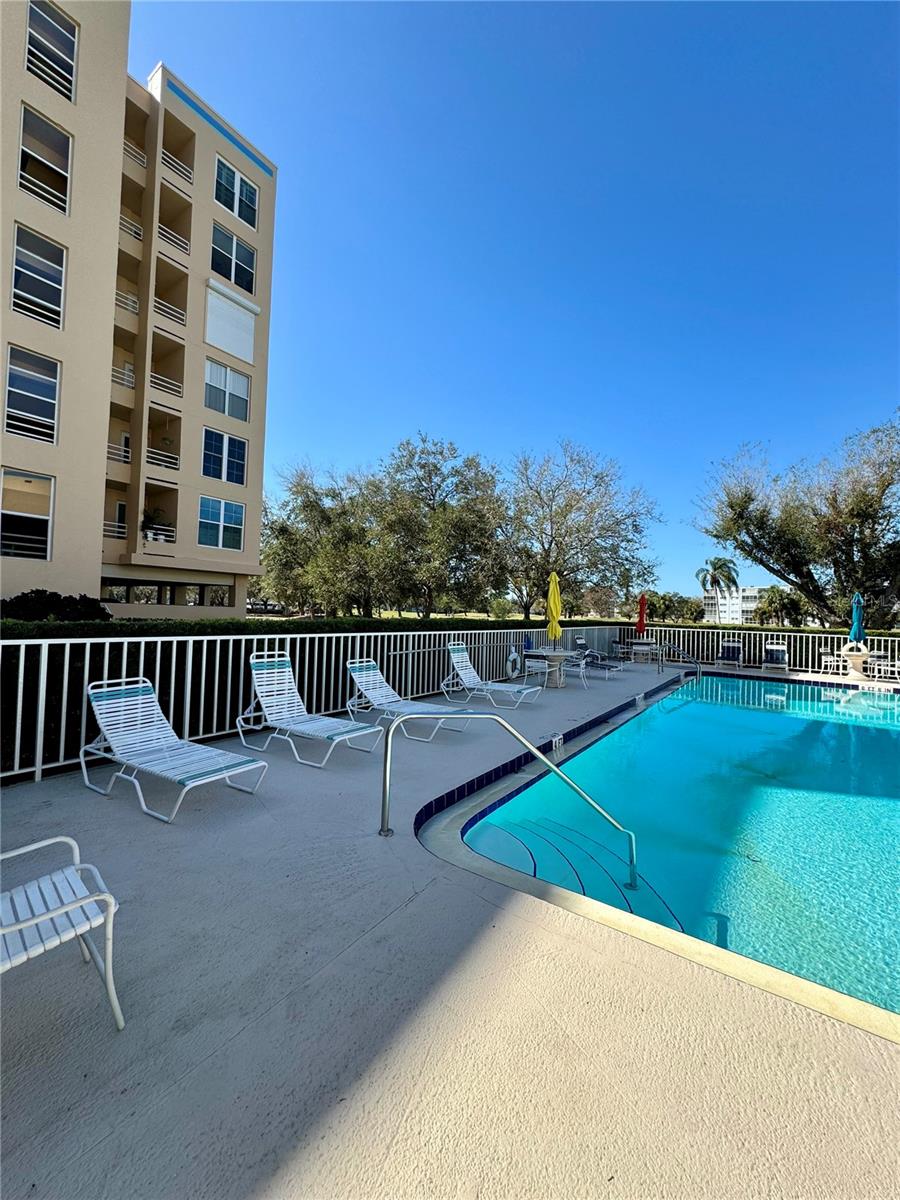 Welcome to the highly coveted Fairways at Pinebrook condominium, offering the quintessential Florida lifestyle! Recently renovated with a modern flair. Step into the inviting kitchen adorned with new cabinets and appliances, abundant storage, and a sunlit breakfast nook. The open-concept living and dining areas flow seamlessly into a screened-in sunroom, offering panoramic views of a tranquil pond and the picturesque 4th fairway of the golf course. The master suite features a spacious walk-in closet and a contemporary walk-in shower, while a second full bathroom and generously sized bedroom, den, or office provide versatility and convenience. The laundry room is equipped with ample storage and brand-new Samsung washer and dryer. This unit boasts beautiful and resilient vinyl plank flooring throughout the living, dining, and bedroom areas, complemented by blinds on all windows. Rare under-building parking offers shade and protection from the elements, with ample guest parking available. A large storage locker in a temperature-controlled room on the same level adds to the convenience.? Last year, the community underwent significant upgrades including a new roof, elevator, and repaved parking lot. Low HOA fees cover internet, cable, water, garbage, and all exterior maintenance, providing hassle-free living. Enjoy unparalleled amenities such as a heated pool adjacent to the unit, and the clubhouse featuring an additional pool, workout room, library, spacious social rooms, craft room, and workshop, as well as tennis and pickleball courts.