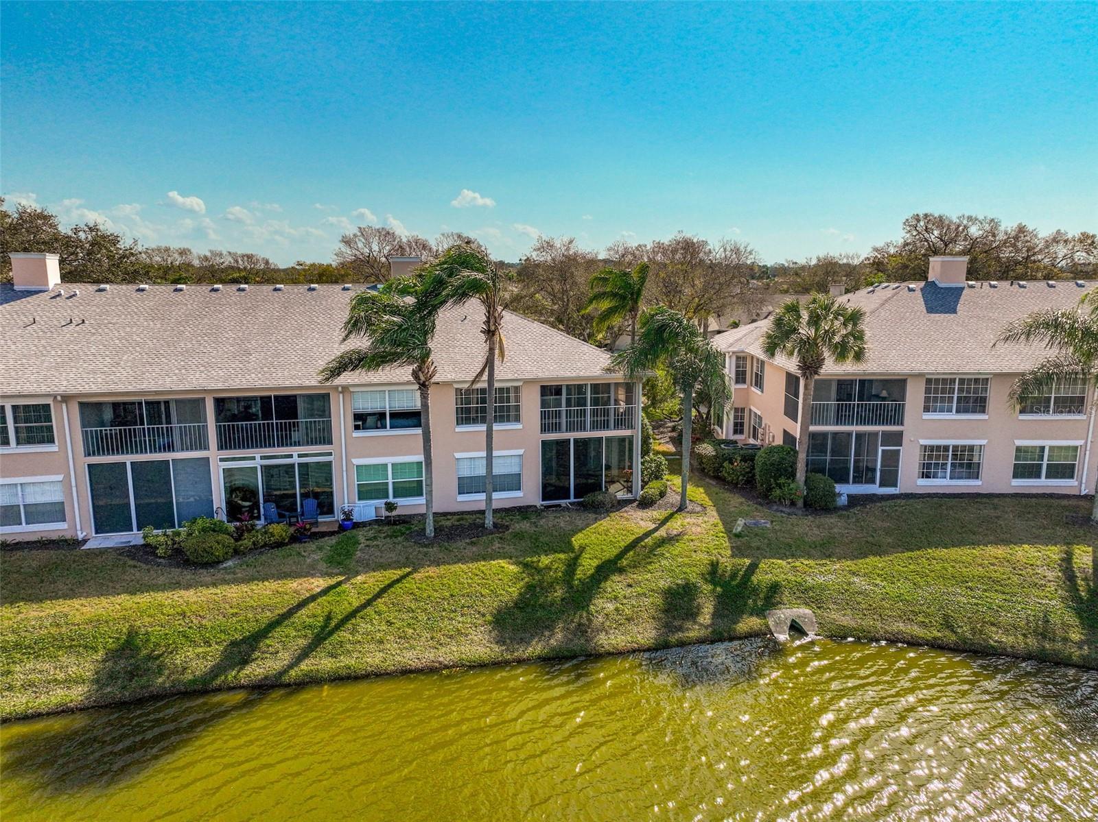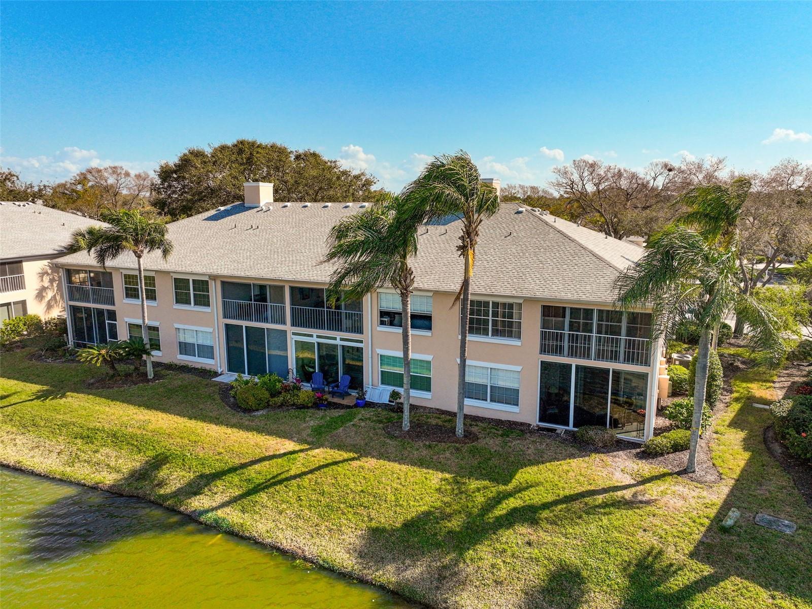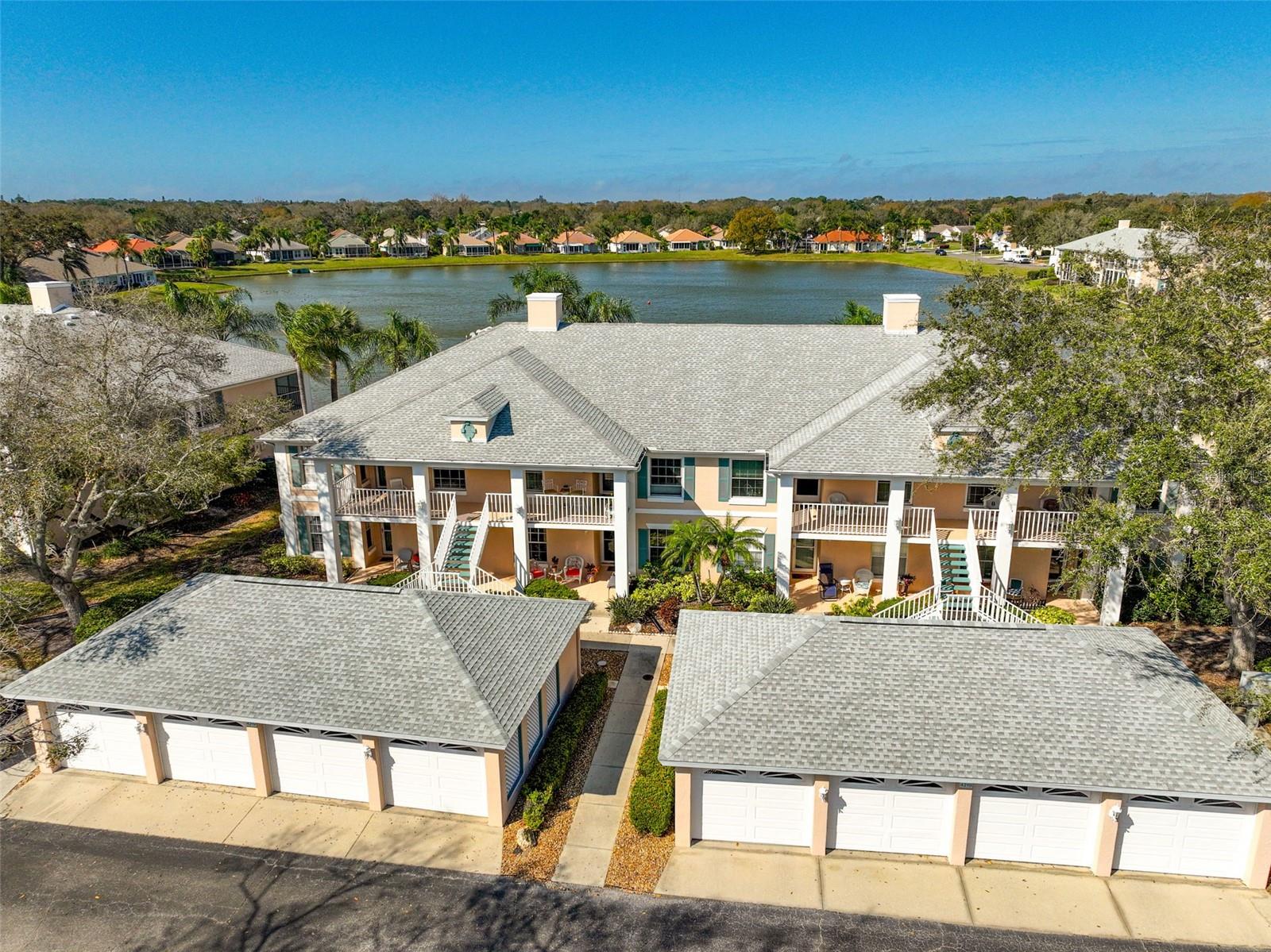 Possible LEASE OPTION or LEASE PURCHASE! LAKEFRONT!!! Enjoy panoramic LAKE views from your own private balcony in this 2BR/2BA second-floor condo, creating a peaceful and relaxing atmosphere. Your tranquil oasis in Fairway Trace at Peridia Golf & Country Club is perfectly situated as an end unit to maximize privacy. There is a primary bedroom with an ensuite bathroom and a second bedroom perfect for guests or a home office. There is an eat-in area for casual dining in the kitchen. Unwind with a good book or enjoy morning coffee on the front porch. Enjoy the luxury of a separate pool reserved solely for Fairway Trace residents. Peridia offers an excutive 18-hole golf course, tennis, pickleball, heated pool, tiki bar, restaurant & bar, bocce ball, pro shop, dances, mahjong, etc... Master Association-$877 Qrtly;Condo Fee-$1465;Annual food/beverage minimum-$450;One Time Application Fees-$200;One Time Capital Reserve-$4,000.