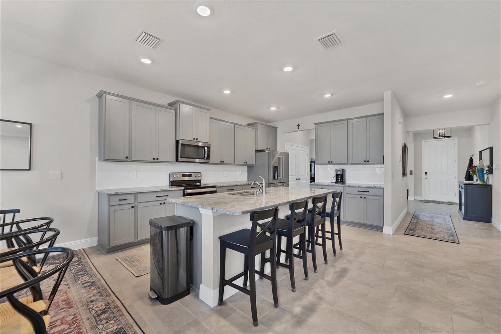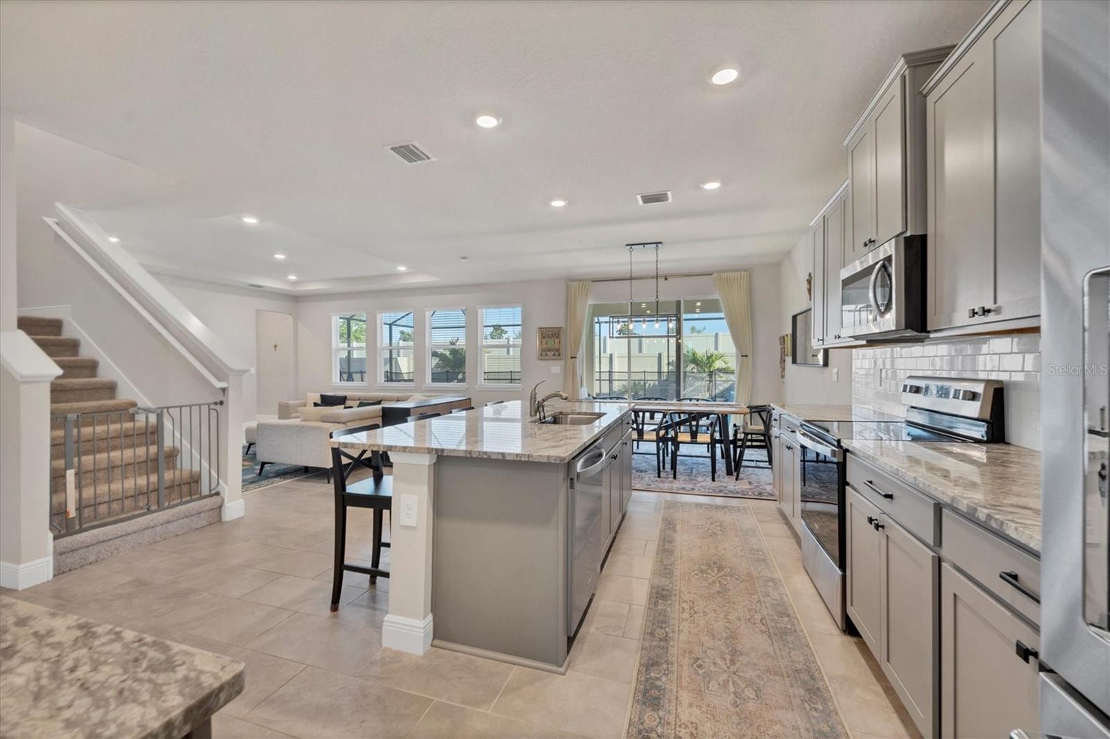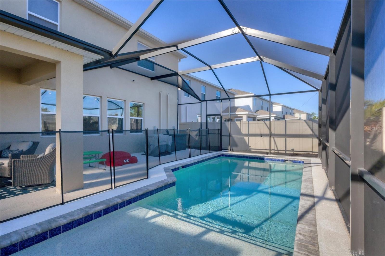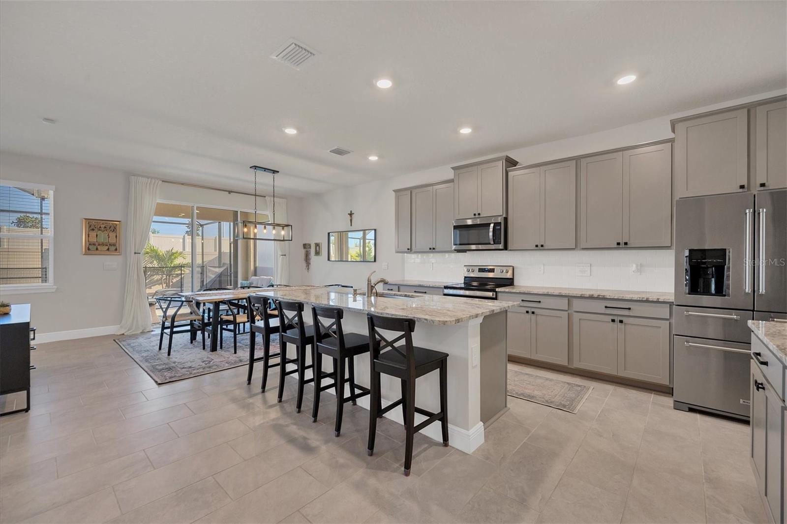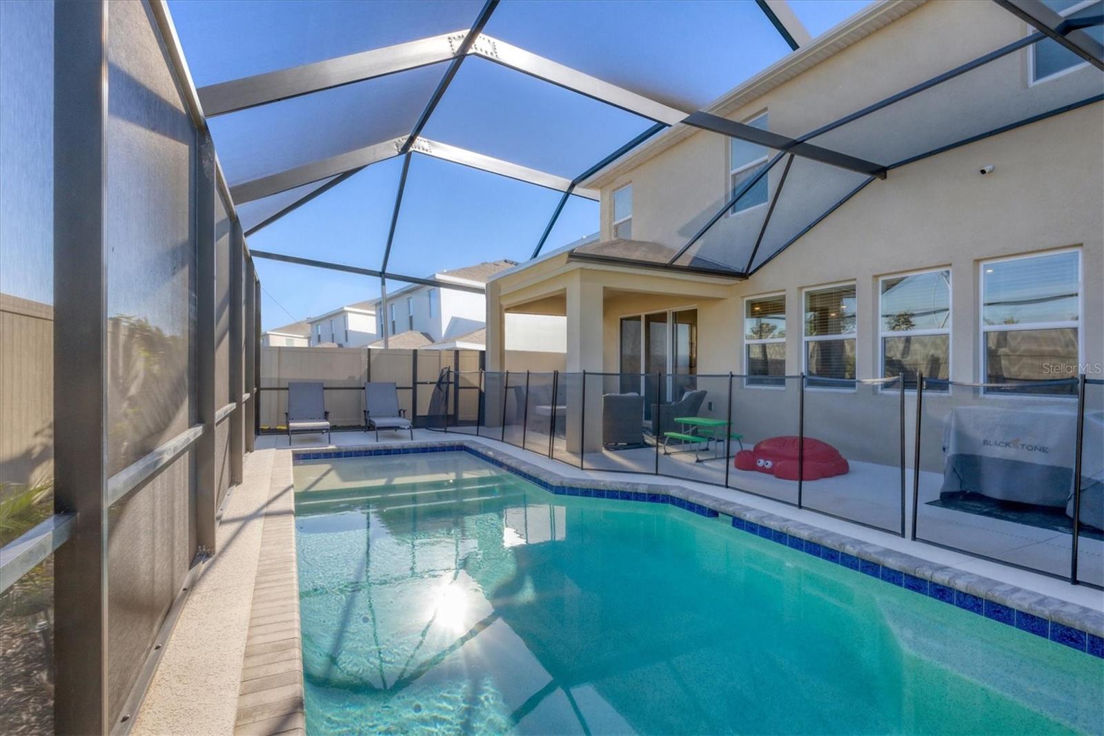 Step into your private oasis pool home in Lakewood Ranch! This is the best valued 5-bedroom home in Lakewood Ranch at $213/sf with a heated private saltwater POOL! Move right into this beautiful 3615 sf 2 story all concrete block TALBOT model with 5 bedrooms PLUS den AND bonus room home with 3 1/2 baths!! This floorplan is no longer offered by the builder in this community! The open concept floor plan features a beautiful kitchen with granite counters, subway tile backsplash, cabinets with pull-outs, a HUGE walk-in pantry and a kitchen island perfect for breakfast or entertaining! The dining area and great room with a 10-foot tray ceiling complete the first-floor area creating a fantastic space for your family and friends! Through the large sliders, you will walk out to your own PRIVATE OASIS featuring a beautiful, heated saltwater pool, covered lanai and fenced in yard with added landscaping! Enjoy the privacy of relaxing by the pool or entertaining friends and family! The first-floor bedroom is ensuite featuring a huge walk-in closet plus a full bath - perfect for your guests or as an in-law suite! The Master suite is on the second level and features his/her walk-in closets plus a beautiful ensuite bathroom with granite counters, walk-in shower, toilet closet and soaking tub! The remaining 3 large bedrooms with walk in closets are on the second floor as well as a HUGE bonus room and upstairs laundry!! The oversized 2 car garage has an epoxy floor and room for storage! A security system is also in place as well as gutters on the home! Solera's low HOA includes lawn care, community pool, and 2 playgrounds and is located across the street from the brand-new Lakewood Ranch community library as well as the new planned community park! And don't forget about the miles of trails for biking/walking in Lakewood Ranch! Close to airports, beaches, UTC mall, restaurants, golf, and shopping! This home offers a HUGE value and is ready for you to move in! You cannot replace this home with all the add-ons at this price!!!!! Come see WHY this home is perfect for your family and guests! Sellers are motivated!!! Investors--- there is NO waiting period to rent upon ownership! This home is still under the builder's warranty!!!!!!
