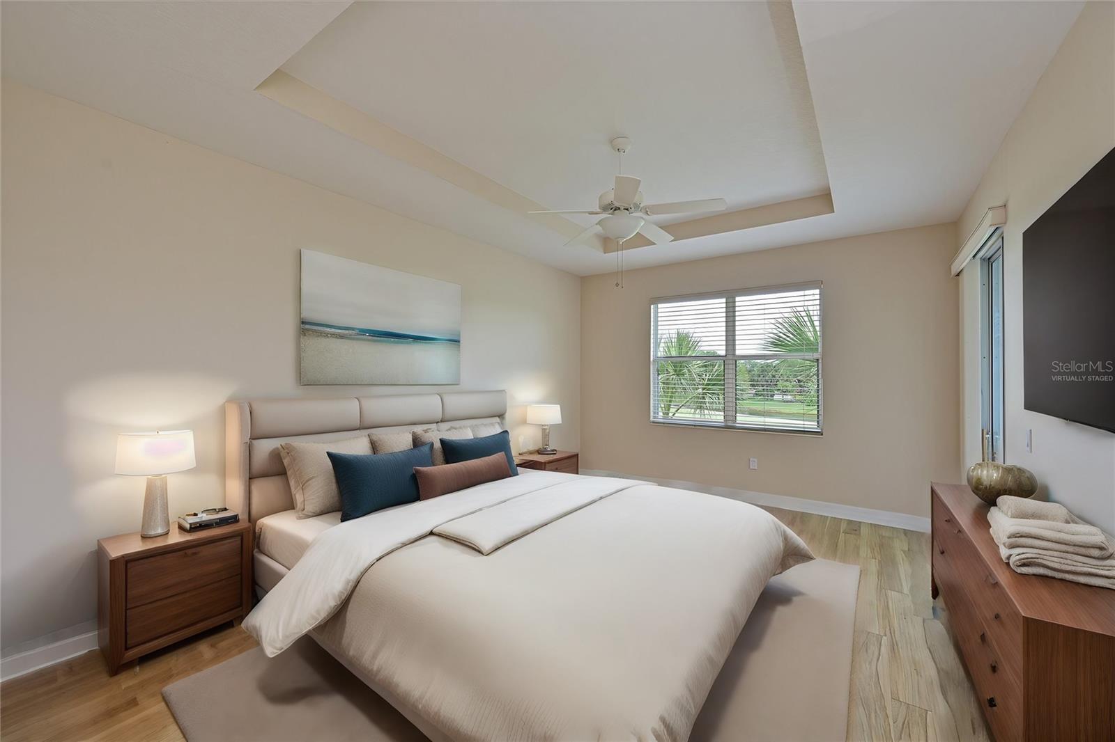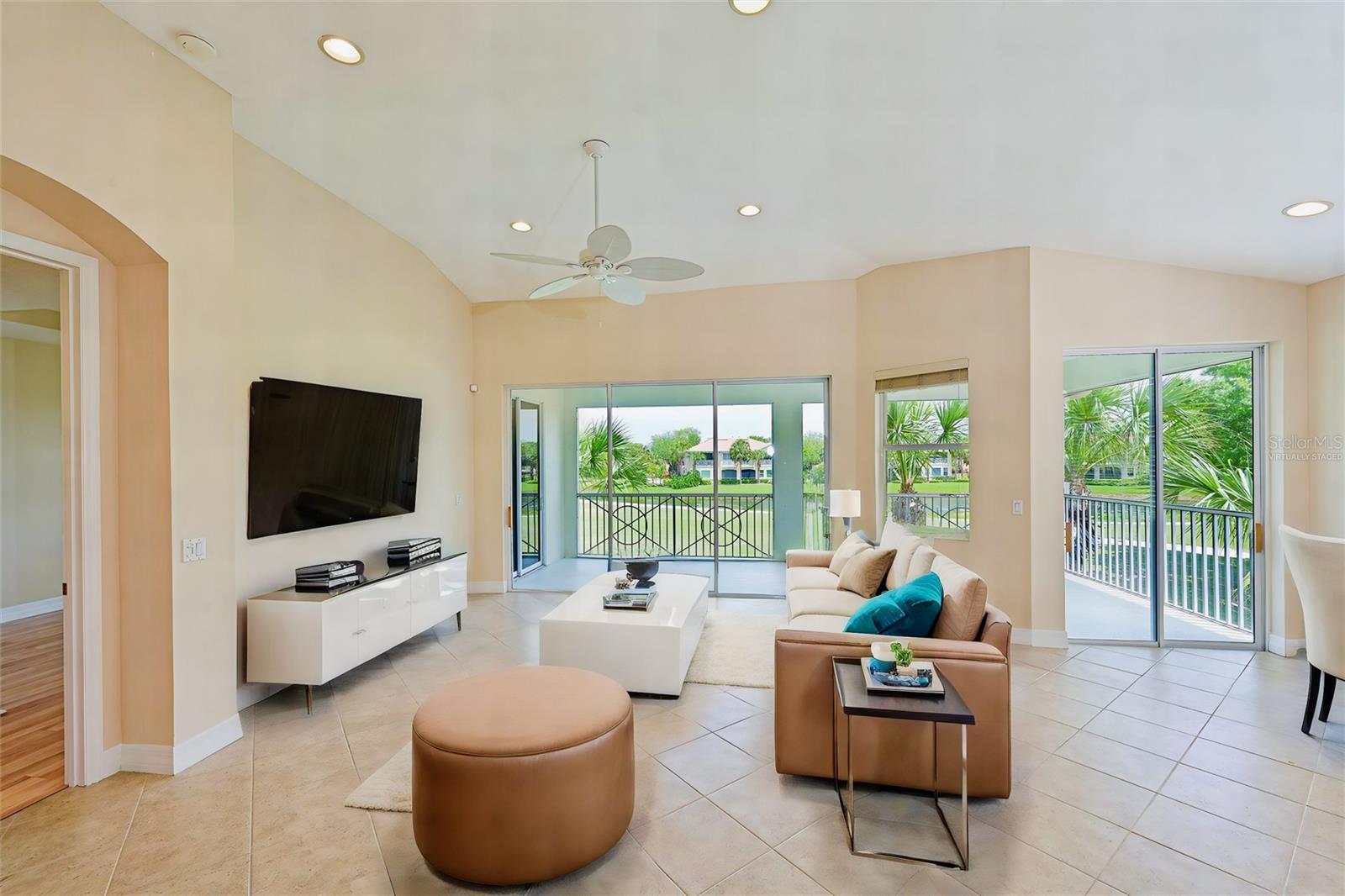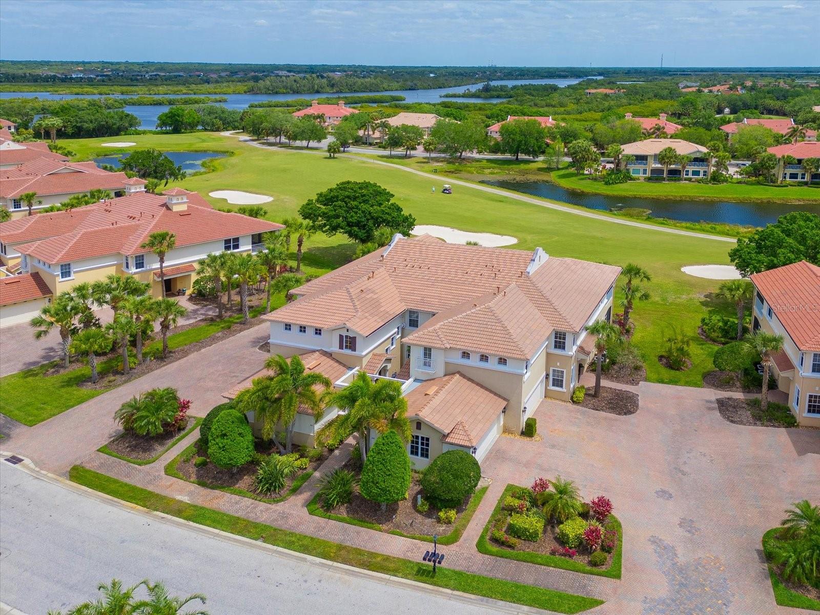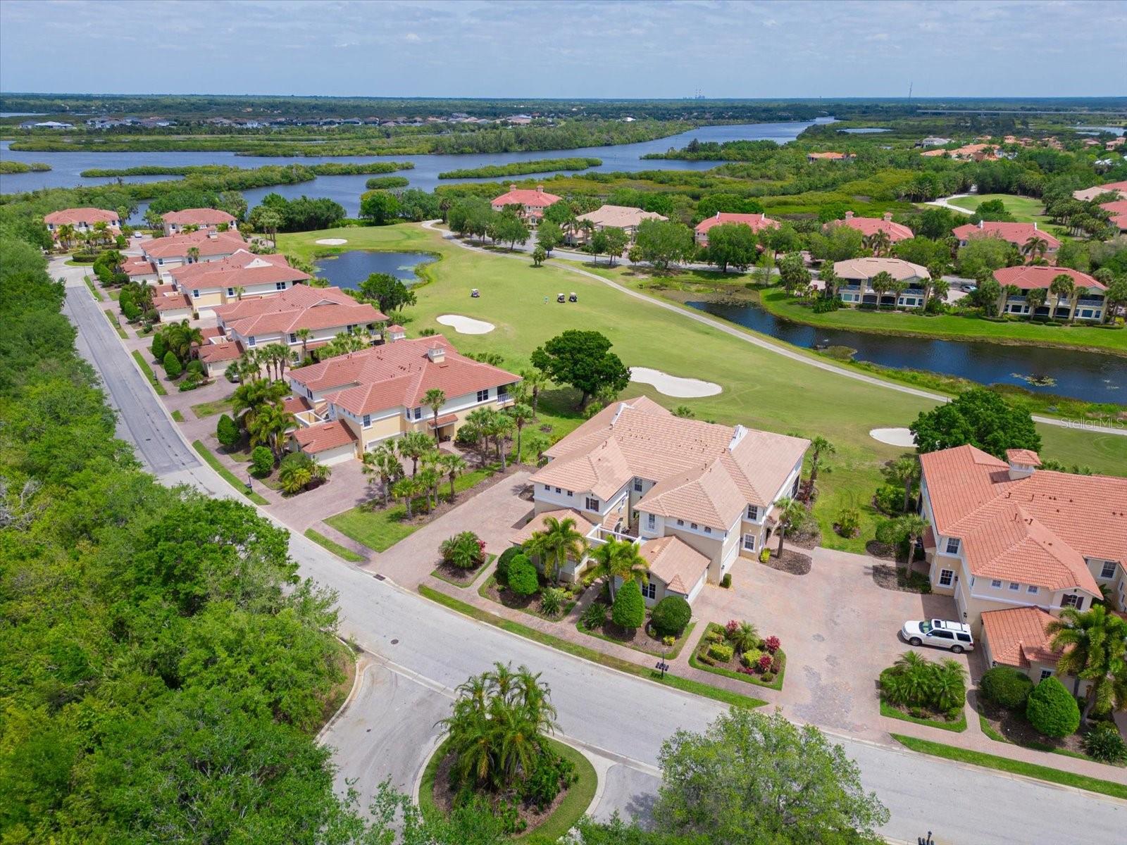 One or more photo(s) has been virtually staged. Live atop the 8th hole at Waterlefe - the areas only golf & marina community. Each morning the rising sun will greet you as you start another epic Waterlefe Day. Take in the panoramic golf course views and the Manatee River behind the 8th green all day as the golfers take on the challenging 2nd shot across the pond fronting the green! This is Florida Golf Course condo living defined! Additional features here - new LVP stairs and den flooring, carpet in the 2 guest bedrooms and quartz countertops in the kitchen accented by light wood cabinets and stainless steel appliances enhancing the light & bright unit. The den/office is set off from the rest of the unit - affording quiet times for office zoom calls or studying from home. More than a neighborhood, Waterlefe Residents have access to many options...centered around the Waterlefe River Club with new updates just completed featuring a Restaurant, Bar, Fitness Center, Meeting Space, Tiki Bar and Jr Olympic Pool - the heartbeat of the neighborhood! Imagine days with friends at daily fitness classes, card games, social functions, book clubs and more - your social calendar is full! Golf Club Membership as well as Marina Slips are available yet optional (the golf clubhouse is undergoing renovation currently and scheduled to re-open in early summer) Phenomenal Cable TV, WIFI and Internet INCLUDED in HOA fees.. Come see the condo in person and you'll know why this will be your new Waterlefe Home - CDD included in taxes amount Room Feature: Linen Closet In Bath (Primary Bedroom).