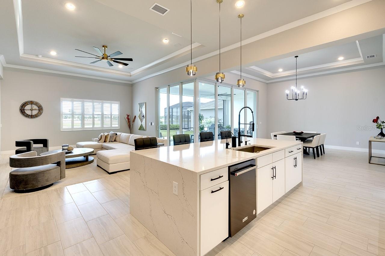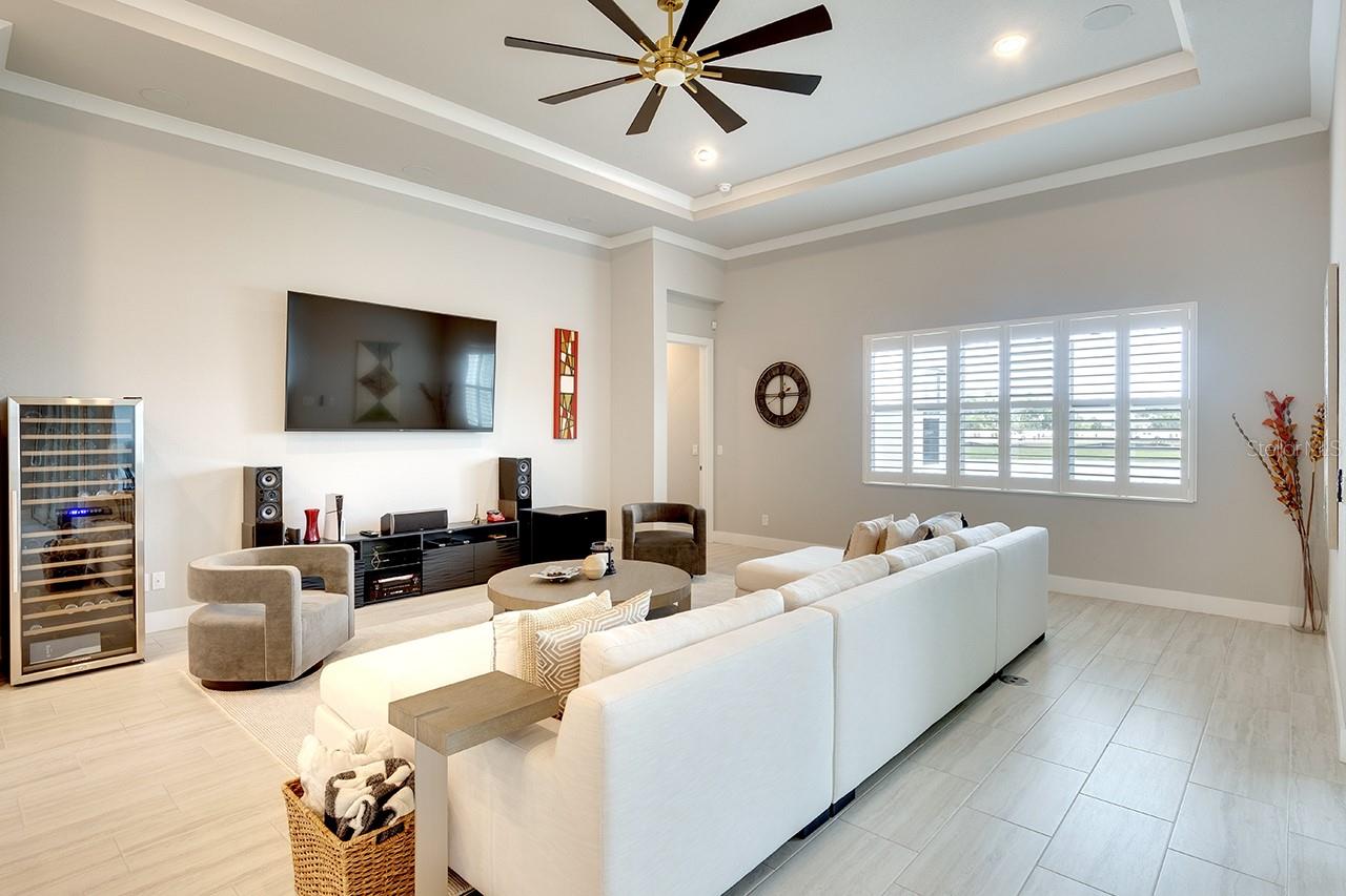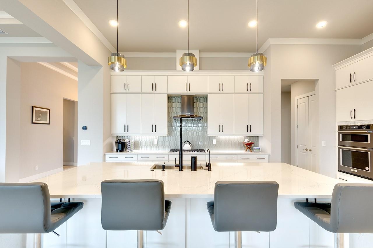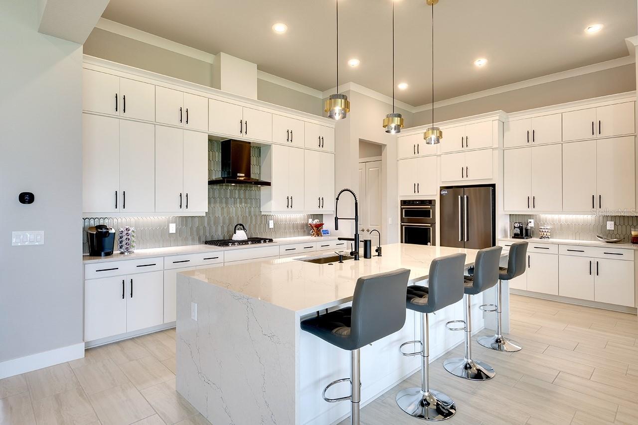 Step into the lap of luxury at the prestigious Isles in Lakewood Ranch, where sophistication meets tranquility. This stunning 4-bedroom, 3.5-bathroom haven sprawls across one of the largest lots in the community, promising an unparalleled blend of spaciousness and elegance. Upon entering, you're greeted by a seamless great room plan, designed for effortless entertaining and relaxation. The gourmet kitchen, a chef's dream come true, boasts quartz countertops, a gas range, and ample storage—all set against the backdrop of picturesque pond views visible through expansive 90-degree sliding glass doors. The heart of the home, the kitchen's large island with waterfall quartz, invites casual dining, homework sessions, or engaging conversations while culinary delights are prepared. Nearby, the separate dining area accommodates gatherings of up to ten guests, ensuring no shortage of space for memorable meals. For those idyllic Florida days, sliding glass doors open onto the large screened lanai, where al-fresco dining becomes a daily indulgence amidst the sights and sounds of nature. The owner's suite is a true sanctuary, boasting an oversized bedroom flooded with natural light, plantation shutters, and a spa-like ensuite bathroom featuring dual vanities, an extra-large shower, and a soaking tub—perfect for unwinding after a long day. Additional highlights include exquisite porcelain tile floors, luxury vinyl plank flooring in the bedrooms, a tankless gas water heater, epoxy-coated garage floors, surround sound speakers, and an in-wall pest control system—elevating the living experience to new heights of convenience and luxury. The Isles community offers resort-like amenities, including a clubhouse with activities for all ages, a heated resort-style pool, various outdoor entertainment courts, a state-of-the-art fitness center, a dog park, and a serene fishing pier—ensuring endless opportunities for relaxation and recreation. Conveniently located near Lakewood Ranch's finest shopping, dining, healthcare facilities, and the breathtaking west coast beaches, this home offers the epitome of luxury living in an unrivaled setting. Don't miss the opportunity to make this your first or second home—a true masterpiece awaits!