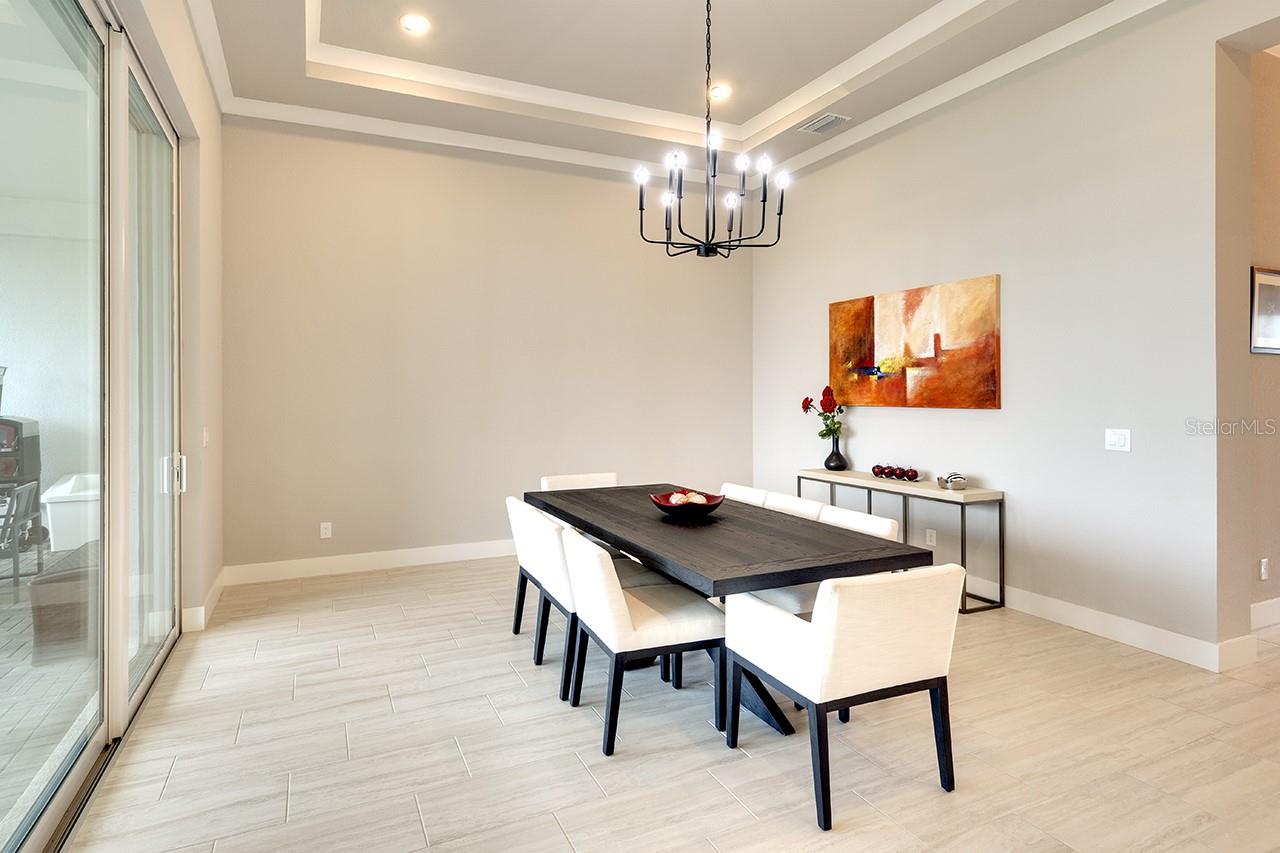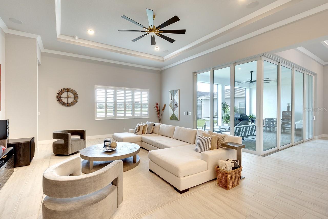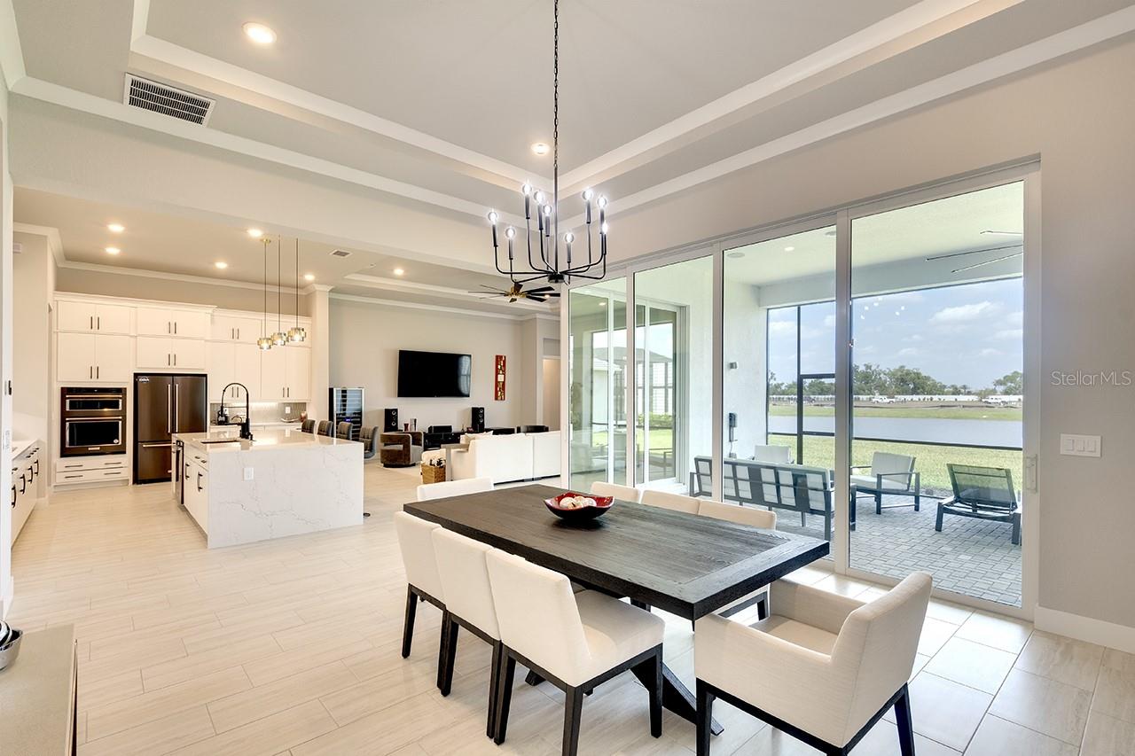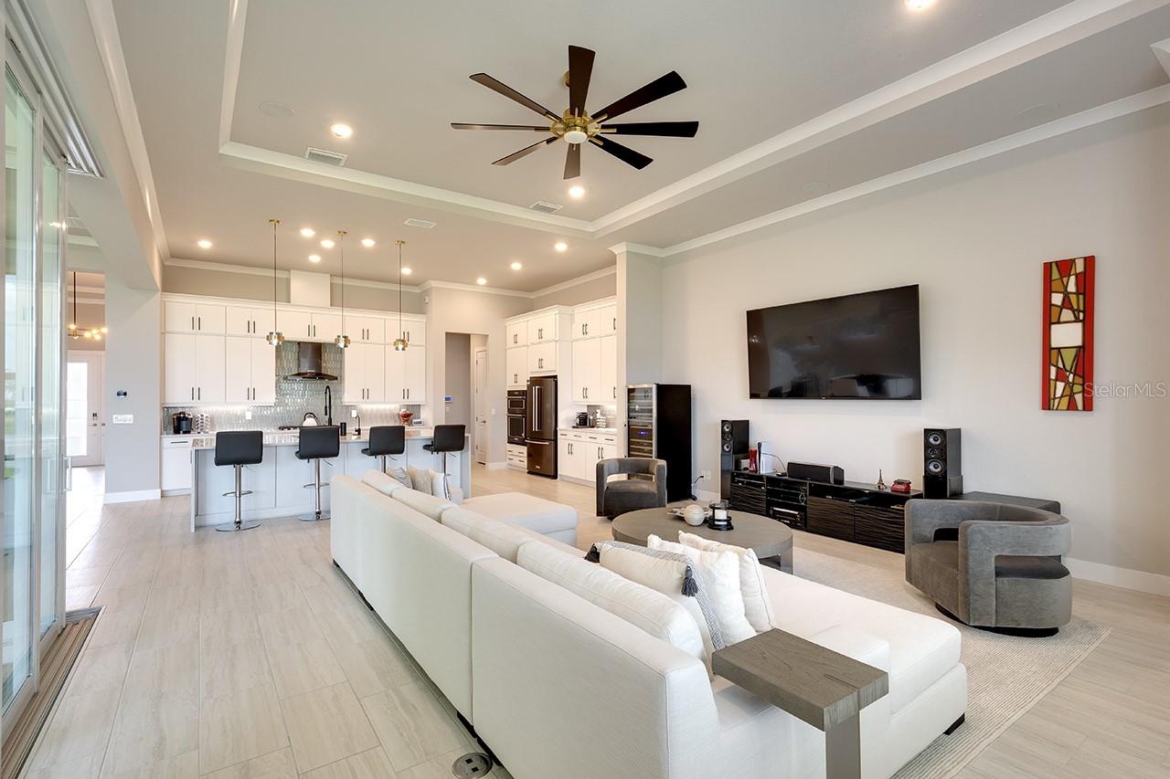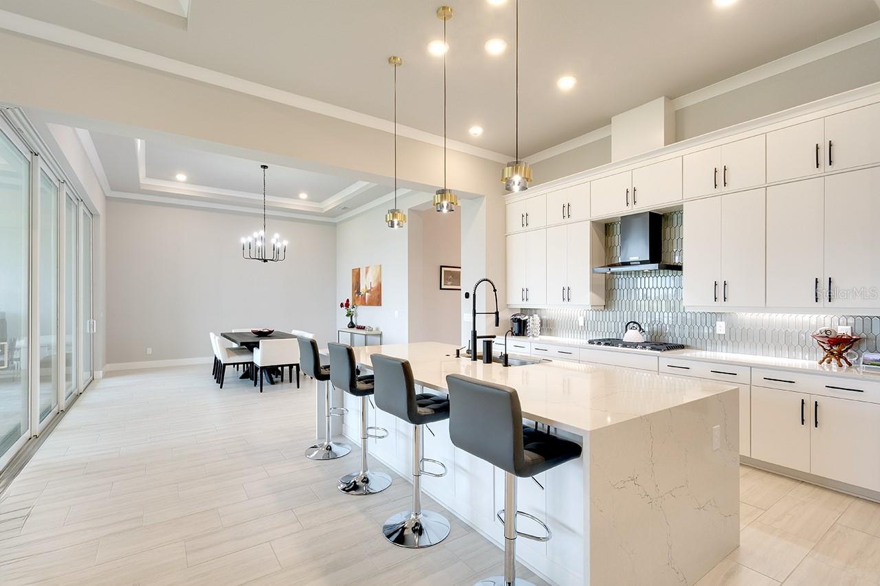 Step into the lap of luxury at the prestigious Isles in Lakewood Ranch, where sophistication meets tranquility. This stunning 4-bedroom, 3.5-bathroom haven sprawls across one of the largest lots in the community, promising an unparalleled blend of spaciousness and elegance. Upon entering, you're greeted by a seamless great room plan, designed for effortless entertaining and relaxation. The gourmet kitchen, a chef's dream come true, boasts quartz countertops, a gas range, and ample storage—all set against the backdrop of picturesque pond views visible through expansive 90-degree sliding glass doors. The heart of the home, the kitchen's large island with waterfall quartz, invites casual dining, homework sessions, or engaging conversations while culinary delights are prepared. Nearby, the separate dining area accommodates gatherings of up to ten guests, ensuring no shortage of space for memorable meals. For those idyllic Florida days, sliding glass doors open onto the large screened lanai, where al-fresco dining becomes a daily indulgence amidst the sights and sounds of nature. The owner's suite is a true sanctuary, boasting an oversized bedroom flooded with natural light, plantation shutters, and a spa-like ensuite bathroom featuring dual vanities, an extra-large shower, and a soaking tub—perfect for unwinding after a long day. Additional highlights include exquisite porcelain tile floors, luxury vinyl plank flooring in the bedrooms, a tankless gas water heater, epoxy-coated garage floors, surround sound speakers, and an in-wall pest control system—elevating the living experience to new heights of convenience and luxury. The Isles community offers resort-like amenities, including a clubhouse with activities for all ages, a heated resort-style pool, various outdoor entertainment courts, a state-of-the-art fitness center, a dog park, and a serene fishing pier—ensuring endless opportunities for relaxation and recreation. Conveniently located near Lakewood Ranch's finest shopping, dining, healthcare facilities, and the breathtaking west coast beaches, this home offers the epitome of luxury living in an unrivaled setting. Don't miss the opportunity to make this your first or second home—a true masterpiece awaits!