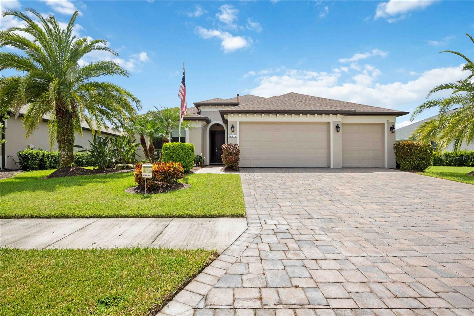 Nestled behind the gates of Greyhawk Landing Community, this spacious, built to last modern Florida beauty within the proximity of Lakewood Ranch is boasting with 3 bedroom, 2 bathroom, with a den, formal dining area, tranquil water view on the largest section of the lake to enjoy all the frequent wildlife is a relaxing Sanctuary and is move in ready. Ideal floor plan with oversized lot, both a side fenced yard with tropical Florida Palms, and the entire backyard with outdoor brick paver sitting area is perfect to enjoy the Florida sunsets while entertaining family and guests. French doors open to the private office/den with vinyl flooring, could easily be a fourth bedroom. Crown molding, double tray ceilings, throughout, creating a luxury, timeless, homey atmosphere. Gourmet Kitchen is equipped with Under Cabinet Lighting, Granite Countertops, Stainless Appliances, Gas stove, Tile backsplash, all bathrooms have Marble Counter Tops. A breakfast sitting area is ideal for those casual meals with a separate sitting area overlooking the lanai and water view. Brick Paver 3 car garage with Epoxy Flooring, an oversized 8-foot opening for all your larger vehicles, Outside Gutters, SOLAR PANELS is energy efficient. Greyhawk Landing is fun for all age groups and interests, dog friendly, nestled along the mesmerizing coast of Bradenton, surrounded by the lush natural beauty, miles of preserved woodlands and pristine lakes for walking and biking. ***Proximity to Lakewood Ranch, St. Pete, Tampa, Sarasota International airports, Wellen Park, Naples, I75, UTC Mall, Restaurants, Theaters, Medical facilities, pristine world-renowned Gulf Beaches and Islands, boating, championship level golf courses, recognized top schools and colleges. ***Community Amenities: LOW HOA $75 annual, 24-Hour Gated Community, Fencing is allowed, Fitness, Gym Facility, Tennis, Pickleball, Basketball Courts, Playgrounds, private Lake with Fishing Pier, Baseball, Soccer Fields, Two-Community Centers with Lagoon-style Pools, Spas and Waterslide. Welcome home to this coveted community in Greyhawk Landing. Schedule a private showing to fully appreciate the features and potential of this desirable residence, catering to a variety of age groups and interests. Start living the Florida lifestyle in Paradise on the Gulf Coast of Florida.