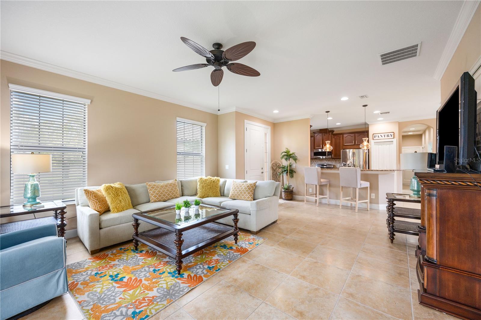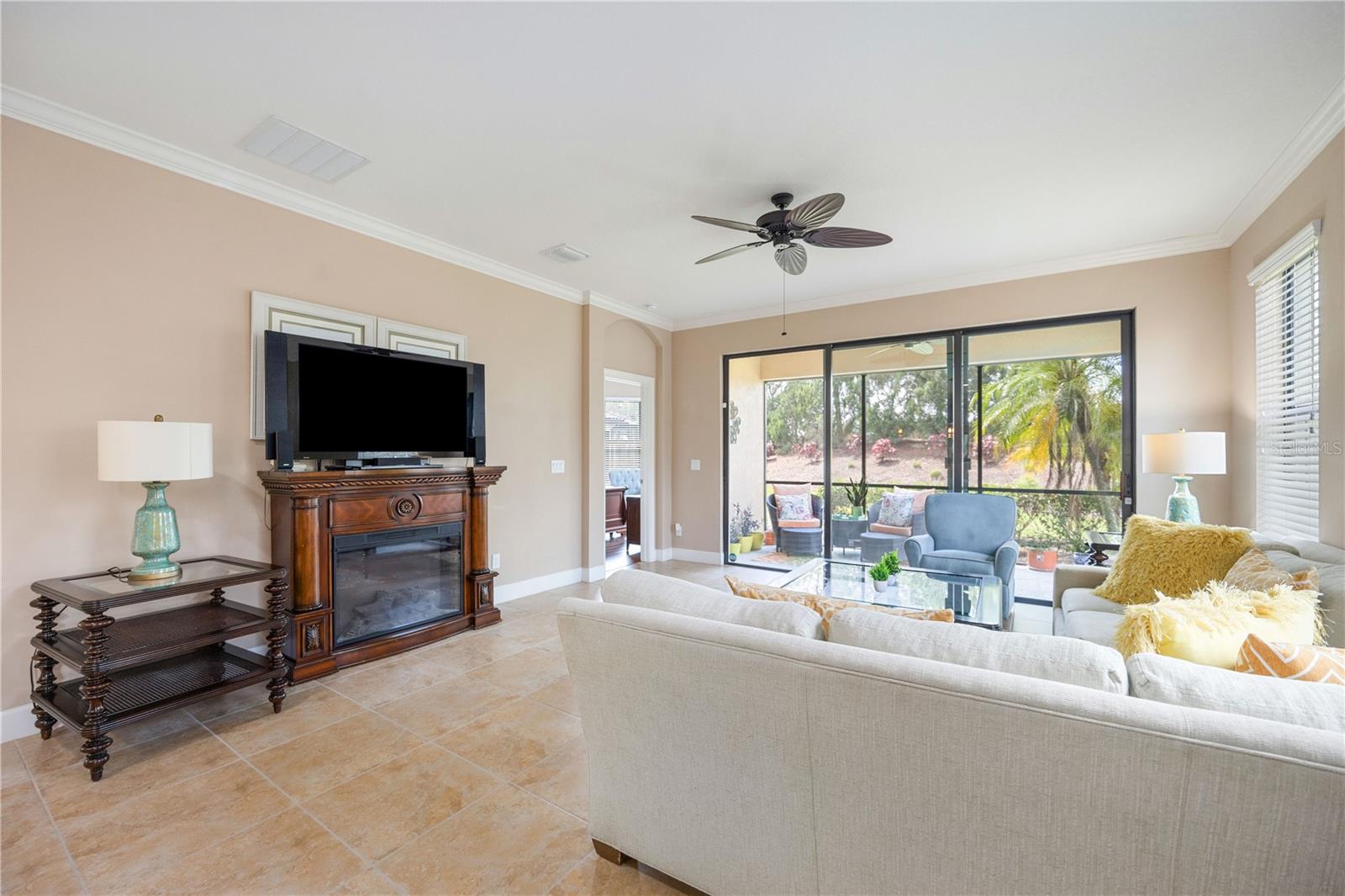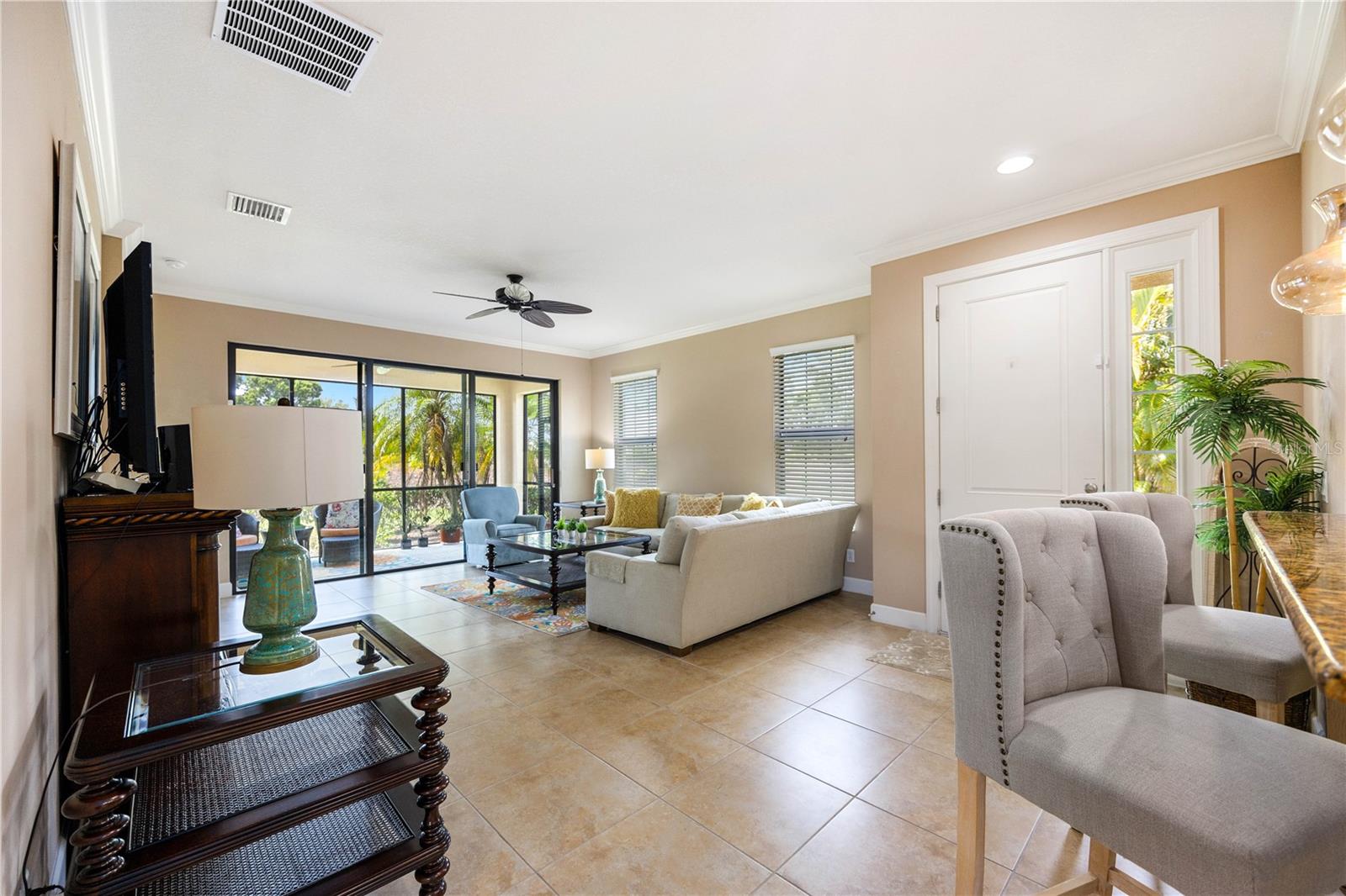 Step into a world where elegance meets practicality in this stunning 2-bedroom home, with a Third Room that's perfect for a den or office. Imagine yourself driving up the long, paved driveway, with space for six cars, and entering a space bathed in natural light, thanks to the open floor plan and durable tile roof. The kitchen is a culinary enthusiast's paradise, boasting stainless steel appliances, a new stove, and luxurious 42-inch solid wood cabinets topped with granite, not to mention a convenient breakfast bar. The home is move-in ready, potentially furnished to make the transition seamless. Breathe easy with an AC system equipped with a germicidal air purifier and savor the benefits of a whole-house water treatment system. Living at Esplanade is an experience of its own, with a championship golf course, fine dining, and the Koquina Sand Spa's personalized wellness treatments. The community doesn't stop there; it offers luxury pools, a variety of social activities, and a full-service spa and salon. For the active spirit, there's no shortage of sports and fitness opportunities, including golf, pickleball, bocce ball, volleyball, and tennis, all set against the backdrop of a picturesque golf course with its own Pro Shop and Driving Range. Nestled near essential services, entertainment, and pristine beaches, and with easy access to I-75, this home is more than a residence—it's a gateway to a life of comfort, health, and convenience. Come and see for yourself the lifestyle that awaits at Esplanade. First time contribution of $5,000 and food beverage yearly $750.00