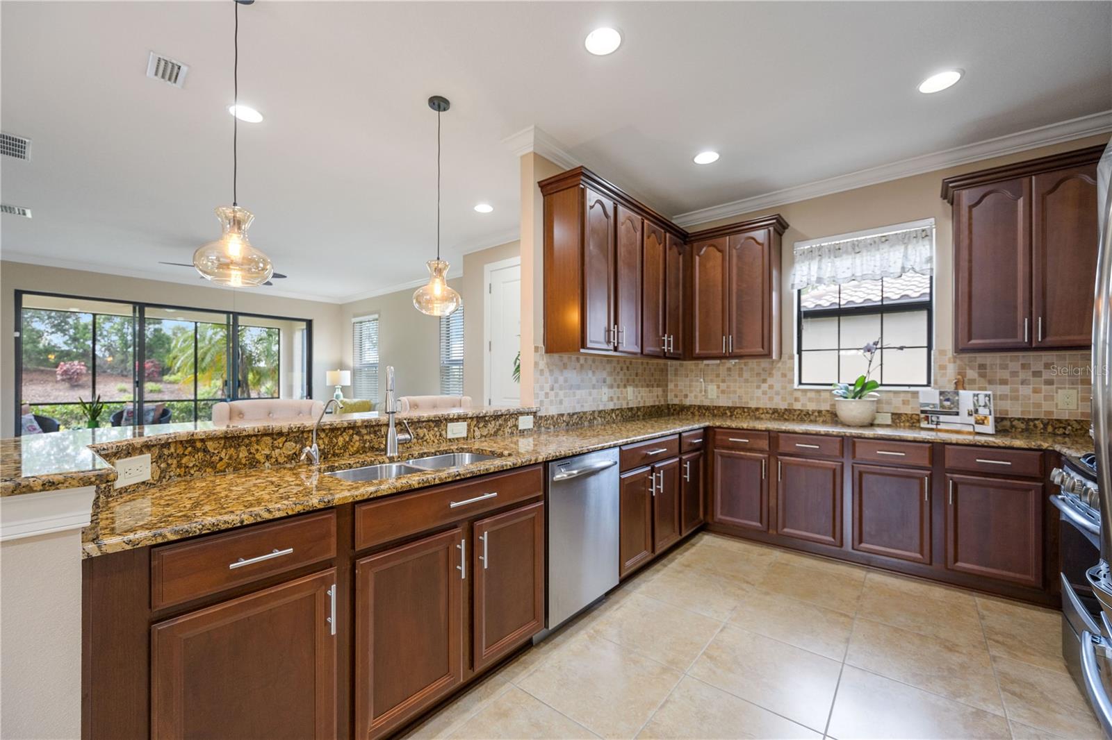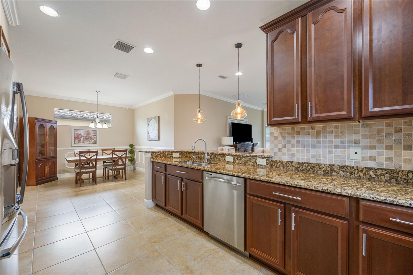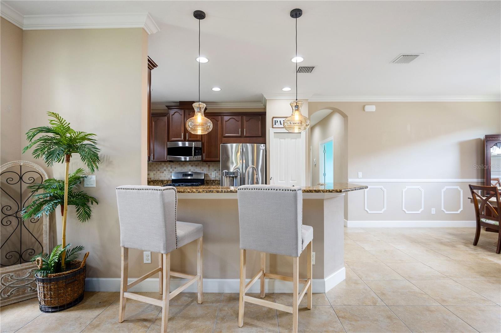 Step into a world where elegance meets practicality in this stunning 2-bedroom home, with a Third Room that's perfect for a den or office. Imagine yourself driving up the long, paved driveway, with space for six cars, and entering a space bathed in natural light, thanks to the open floor plan and durable tile roof. The kitchen is a culinary enthusiast's paradise, boasting stainless steel appliances, a new stove, and luxurious 42-inch solid wood cabinets topped with granite, not to mention a convenient breakfast bar. The home is move-in ready, potentially furnished to make the transition seamless. Breathe easy with an AC system equipped with a germicidal air purifier and savor the benefits of a whole-house water treatment system. Living at Esplanade is an experience of its own, with a championship golf course, fine dining, and the Koquina Sand Spa's personalized wellness treatments. The community doesn't stop there; it offers luxury pools, a variety of social activities, and a full-service spa and salon. For the active spirit, there's no shortage of sports and fitness opportunities, including golf, pickleball, bocce ball, volleyball, and tennis, all set against the backdrop of a picturesque golf course with its own Pro Shop and Driving Range. Nestled near essential services, entertainment, and pristine beaches, and with easy access to I-75, this home is more than a residence—it's a gateway to a life of comfort, health, and convenience. Come and see for yourself the lifestyle that awaits at Esplanade. First time contribution of $5,000 and food beverage yearly $750.00