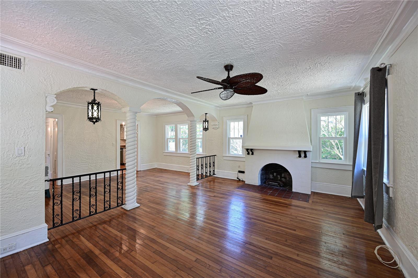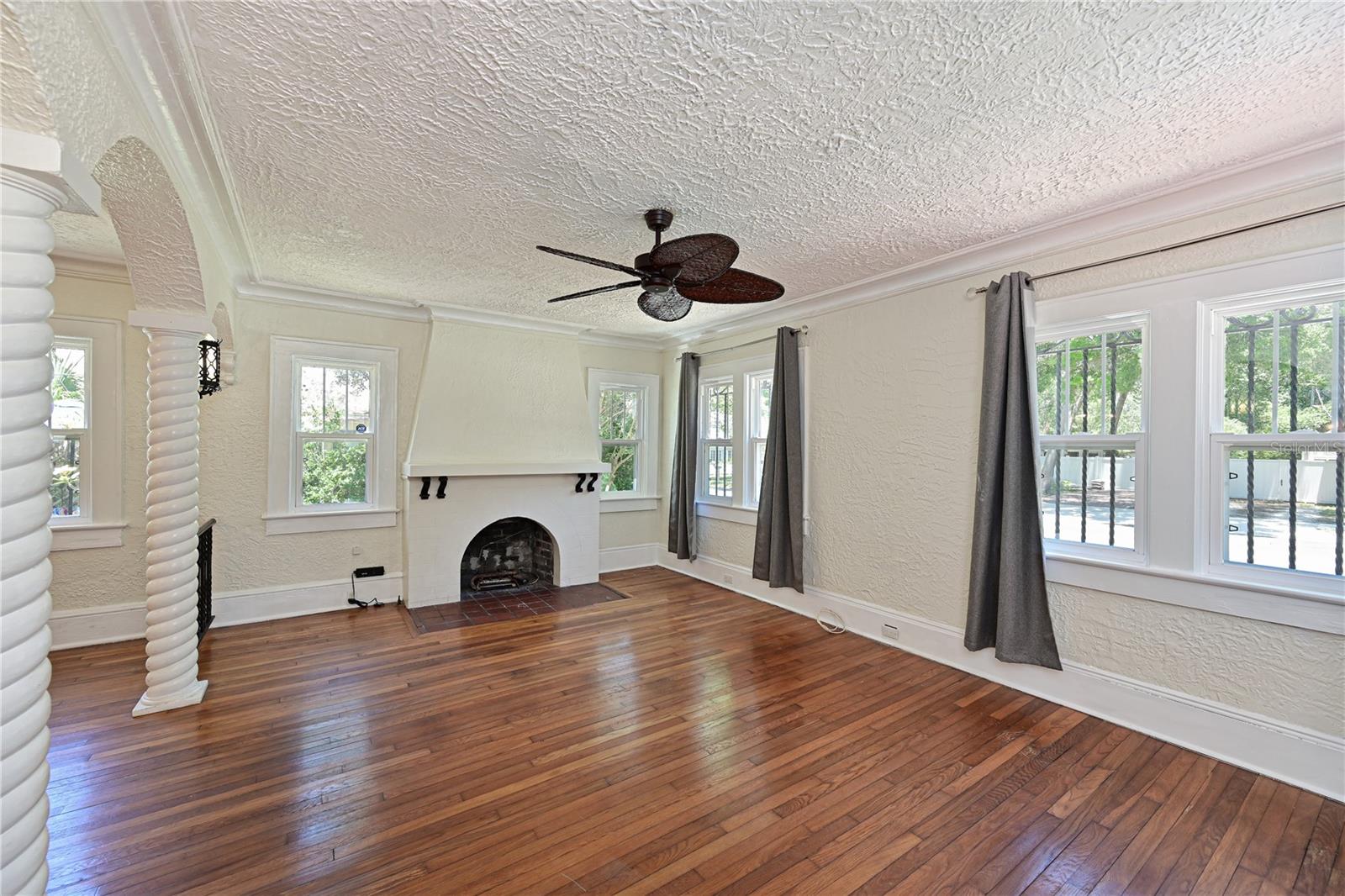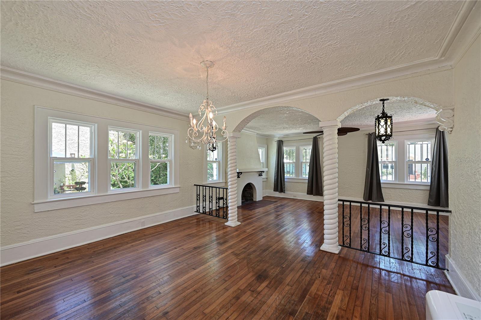 Discover this charming Spanish house built in 1925! With three bedrooms and two bathrooms, this property offers the charm and character you are looking for, while enjoying the modern updates it received in 2012. Enjoy the cozy atmosphere with a fireplace in the living room and relax in the backyard or inner courtyard. As you step through the front door you will appreciate the open living and dining room floorplan with unique details true to the age of the home with archways and rod iron details. Step though the galley kitchen into your private primary suite addition featuring an oversized bedroom with an en-suite bath and walk in closet. French doors from the primary bedroom and mudroom lead to your open deck and courtyard-like backyard setting. Ample parking and a detached one-car garage are located on the side of the home with access through the alleyway making parking convenient. Even though this home is only steps from the Manatee River it does not require flood insurance. Home was just tented 06/2024 as well so you can have peace of mind:) The white sandy beaches of Anna Maria Island are only 8 miles away and the shops and resturants of downtown Bradenton are only 1.5 miles from home. What are you waiting for? This home is waiting its next owner and it should be you!