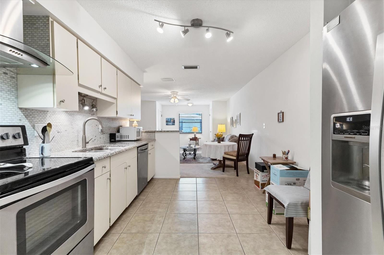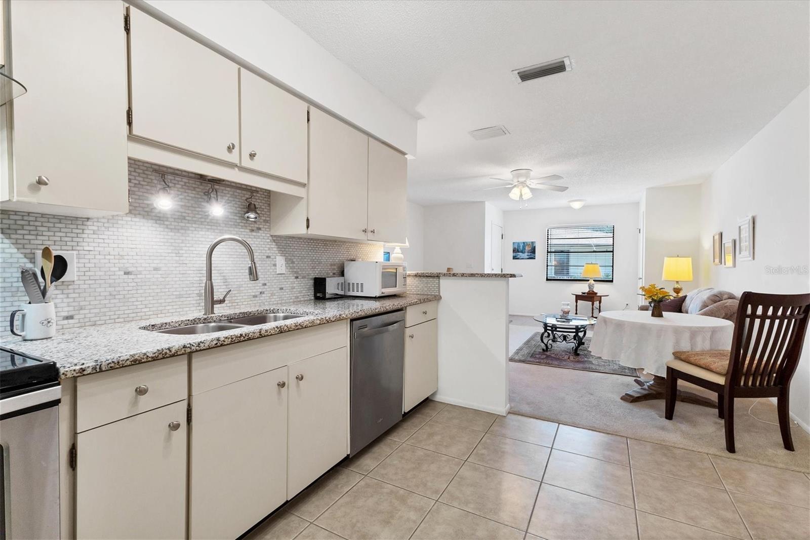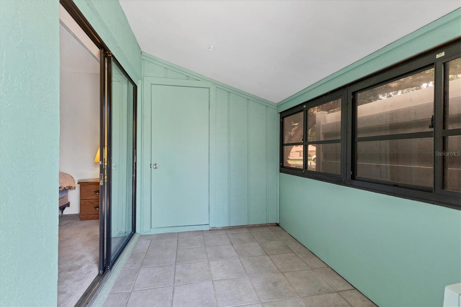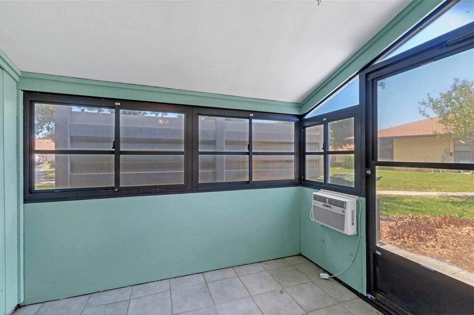 Welcome to Heritage Village West a 55+ community nestled in vibrant West Bradenton, Florida only 5 miles to the beach. This villa is on the inside of the circle in a desirable location in the community, near the pond and green space. This home has irrigation installed and allows the grass to stay beautiful year round. (See realtor remarks) Enter the home through the screened/enclosed lanai with a tile floor, equipped with a ceiling fan and sliding vinyl windows that open to allow a breeze. Some home owners use this space as a dining room and have enclosed it and added AC/duct work. There are sliding glass doors that give an entrance/exit to the guest bedroom or you can enter the home through the front door into the open living room. The kitchen has been updated with granite counter tops, a tile backsplash and newer stainless steel appliances. The kitchen floor is a neutral tile that goes throughout the kitchen, laundry room and both bathrooms. The open floor plan allows a seamless flow from the kitchen, living room and dining area. Off of the kitchen is a private laundry room with full size washer/dryer and built in shelving. There is room in the kitchen for a dining table. The AC is a TRANE and was replaced in 2015. The hot water heater replaced in 2011 and the roof was replaced by the hoa in the last 3-5 years without an assessment. The HOA manages the roof, gutter cleaning, pest control and any other exterior maintenance.The guest bedroom is spacious with a ceiling fan, closet and lots of natural light. The guest bath is across the hallway and has a tile shower with tub. The primary bedroom has a small enclosed lanai with AC and extra storage space. There is an en-suite bathroom. The primary bath has a tile walk in shower with grab bars, glass doors and a single vanity. This home gives that light, bright, warm feeling and is perfect for a second home or a full time Florida residence. It could use some light updating and personal touches. (Flooring, paint, new vanities) but is in good condition and a great location. The most recent updated unit sold for $270k. The community of HVW is a social, tight knit, friendly, well maintained and well managed community in West Bradenton. There are No Assessments and only a $1,000 assessment one time when insurance increased in 2023. Shopping, dining, beaches and more are within a few minutes of this home. Call today to schedule a showing!