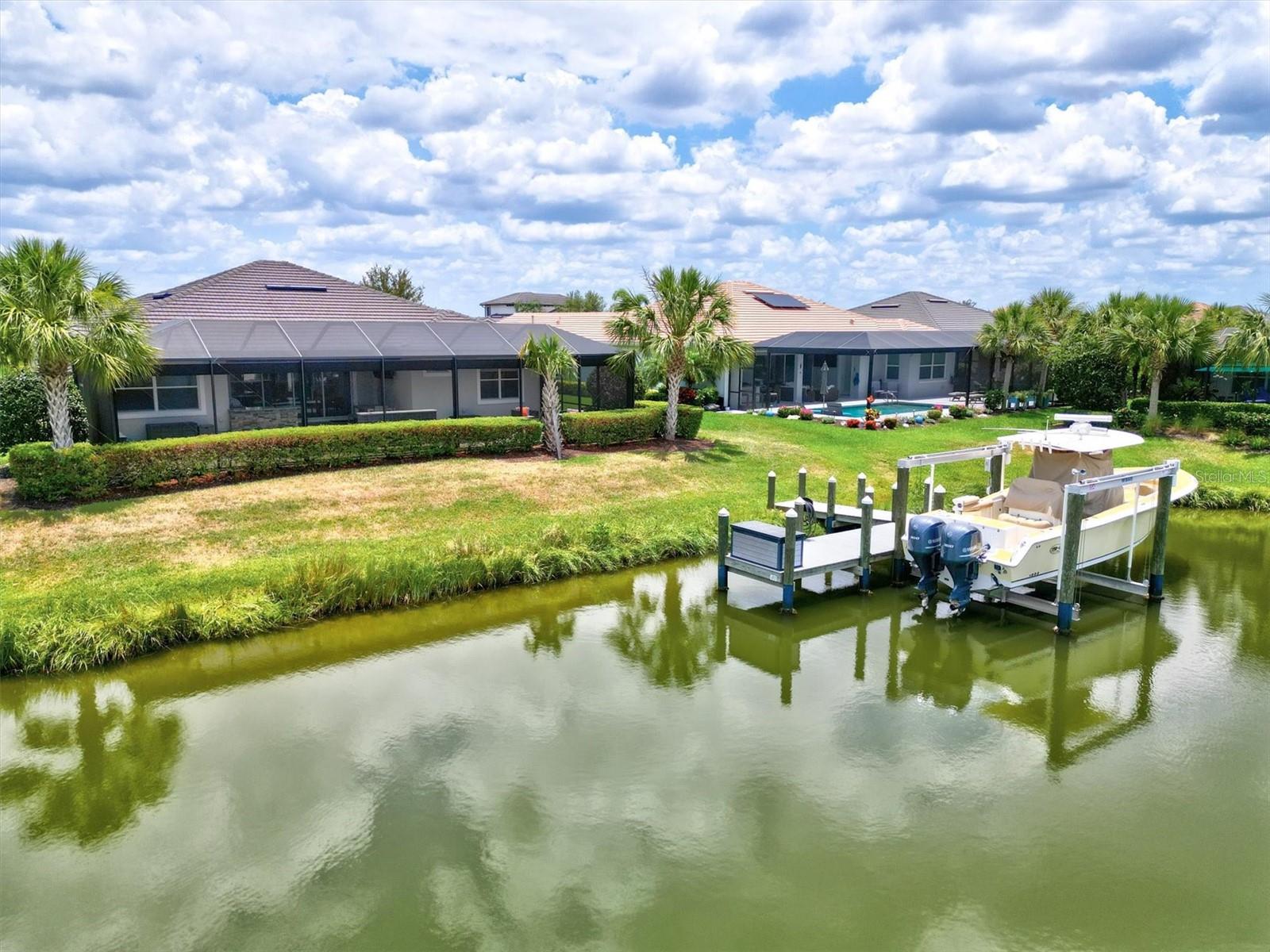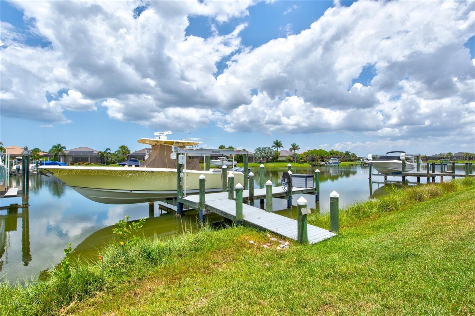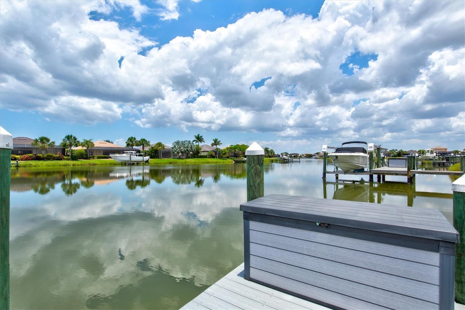 One or more photo(s) has been virtually staged. Displaced From the Hurricanes? We can help! Move in Ready Home! NO FLOOD DAMAGE. High & Dry! Schedule an appointment today! Exquisite Waterfront Boretto Model in Tidewater Preserve. Welcome to your dream home in the resort-style, private, gated community of Tidewater Preserve. This impeccably upgraded 2,661 sq. ft. with 3 Bedroom (possible 4th BR)/3Bath PLUS Den (this is large room and can function as a 4th bedroom as there is a closet) smart home offers an open design, providing the perfect blend of luxury and functionality. It includes the following Key Features: Spacious Layout: The private luxurious primary suite is situated on one side of the home, with guest bedrooms on the other for maximum privacy. A large office/den makes for an ideal home office. Chef's Dream Kitchen: Recently updated with a new Samsung refrigerator (2023), new dishwasher (2024), touchless kitchen faucet, and a $3K LED light/ceiling fan ,the quartz Island is perfect for serving guests. Custom wood shelves walk in pantry, this kitchen is perfect for entertaining. Premium Upgrades: Includes a whole house Kinetco water softening system, Smart Thermostat system, Ring doorbell, and a tankless hot water heater. Freshly painted interior/exterior (2024), professionally cleaned and sealed roof (2024), and HVAC & ducts (2024). Luxurious Finishes: Enjoy professionally cleaned and sealed tile floors, custom closets throughout, renovated bathrooms with frameless glass showers, and surround sound system inside & out. Outdoor Oasis: Set on 110 ft of waterfront, bring your boat to dock on the 12K lift and finished dock. Enjoy the oversized resort-style 6 ft pool with a new rapid heater (2023), water fire wall feature, and LED lighting in pool, no seeum screens, new outdoor kitchen, complete with accented LED lights, gas firepit, and smart privacy screens and Pool Bath for added convenience Additional Amenities: Hurricane Shutters, Holiday lighting package, extended driveway, 3-car garage with finished floors, retractable auto awning, and new no-seem screens. After a day exploring the local islands, relax in your private backyard oasis, grill your "catch of the day," and end the evening with a glass of wine by the gas firepit. This meticulously maintained home truly spares no expense in offering the ultimate luxury living experience. Ownership at Tidewater Preserve offers maintenance free living, gated & secured. Canoe/kayak w/access to Manatee River & Gulf of Mexico. There is a full time lifestyle director, River Lodge w/fitness center, community room, resort style heated pool, 2 additional pools in the community. Stroll the River trail and take your four-legged friend to the dog park or your little ones to the playground, 3 tennis courts. NO CCD fees and modest HOA fees. Best of all Tidewater is located mins to I-75, major airports, shopping, restaurants & World Class Beaches. Don't miss out on this unique opportunity to own a piece of paradise in Tidewater Preserve. This waterfront paradise offers more than just a home, it offers a winning combination of lifestyle & location! Schedule your private tour today.