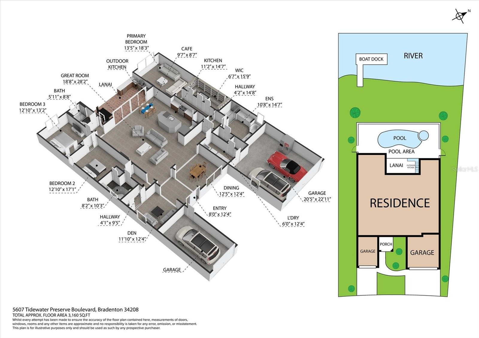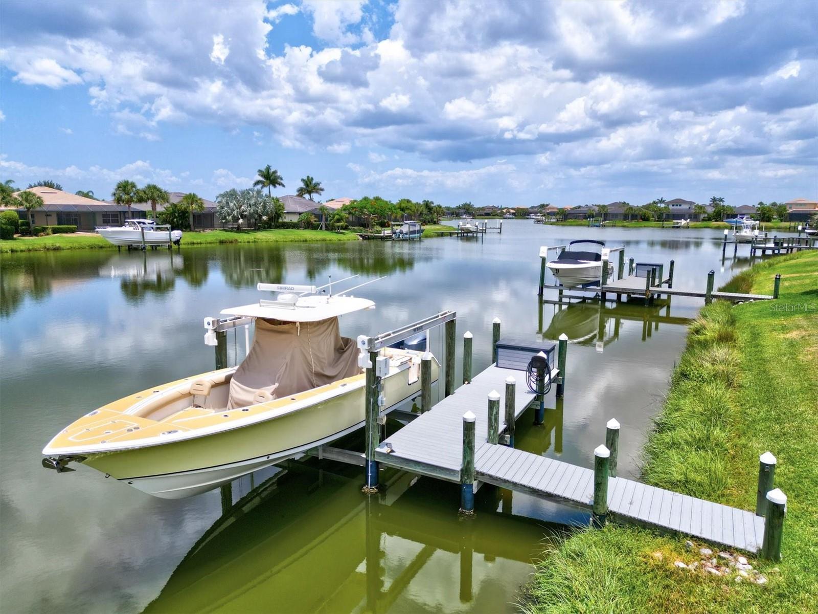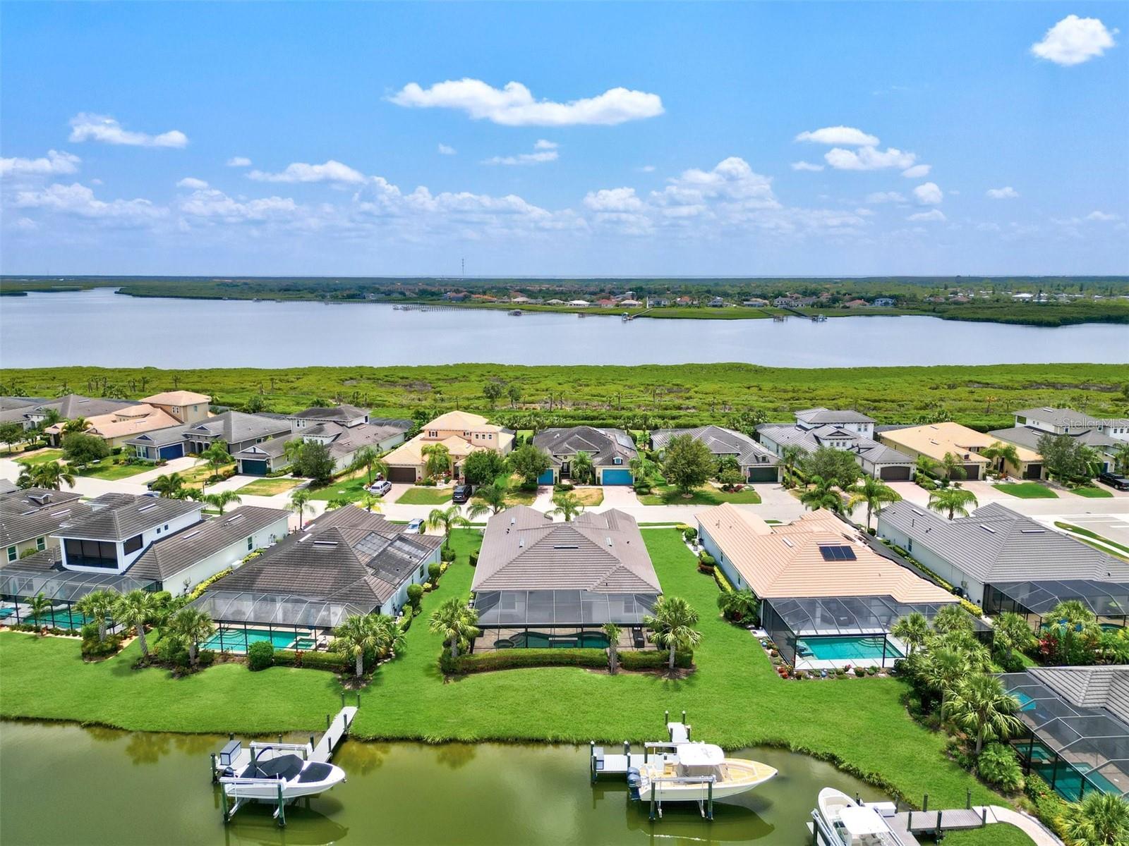 One or more photo(s) has been virtually staged. Displaced From the Hurricanes? We can help! Move in Ready Home! NO FLOOD DAMAGE. High & Dry! Schedule an appointment today! Exquisite Waterfront Boretto Model in Tidewater Preserve. Welcome to your dream home in the resort-style, private, gated community of Tidewater Preserve. This impeccably upgraded 2,661 sq. ft. with 3 Bedroom (possible 4th BR)/3Bath PLUS Den (this is large room and can function as a 4th bedroom as there is a closet) smart home offers an open design, providing the perfect blend of luxury and functionality. It includes the following Key Features: Spacious Layout: The private luxurious primary suite is situated on one side of the home, with guest bedrooms on the other for maximum privacy. A large office/den makes for an ideal home office. Chef's Dream Kitchen: Recently updated with a new Samsung refrigerator (2023), new dishwasher (2024), touchless kitchen faucet, and a $3K LED light/ceiling fan ,the quartz Island is perfect for serving guests. Custom wood shelves walk in pantry, this kitchen is perfect for entertaining. Premium Upgrades: Includes a whole house Kinetco water softening system, Smart Thermostat system, Ring doorbell, and a tankless hot water heater. Freshly painted interior/exterior (2024), professionally cleaned and sealed roof (2024), and HVAC & ducts (2024). Luxurious Finishes: Enjoy professionally cleaned and sealed tile floors, custom closets throughout, renovated bathrooms with frameless glass showers, and surround sound system inside & out. Outdoor Oasis: Set on 110 ft of waterfront, bring your boat to dock on the 12K lift and finished dock. Enjoy the oversized resort-style 6 ft pool with a new rapid heater (2023), water fire wall feature, and LED lighting in pool, no seeum screens, new outdoor kitchen, complete with accented LED lights, gas firepit, and smart privacy screens and Pool Bath for added convenience Additional Amenities: Hurricane Shutters, Holiday lighting package, extended driveway, 3-car garage with finished floors, retractable auto awning, and new no-seem screens. After a day exploring the local islands, relax in your private backyard oasis, grill your "catch of the day," and end the evening with a glass of wine by the gas firepit. This meticulously maintained home truly spares no expense in offering the ultimate luxury living experience. Ownership at Tidewater Preserve offers maintenance free living, gated & secured. Canoe/kayak w/access to Manatee River & Gulf of Mexico. There is a full time lifestyle director, River Lodge w/fitness center, community room, resort style heated pool, 2 additional pools in the community. Stroll the River trail and take your four-legged friend to the dog park or your little ones to the playground, 3 tennis courts. NO CCD fees and modest HOA fees. Best of all Tidewater is located mins to I-75, major airports, shopping, restaurants & World Class Beaches. Don't miss out on this unique opportunity to own a piece of paradise in Tidewater Preserve. This waterfront paradise offers more than just a home, it offers a winning combination of lifestyle & location! Schedule your private tour today.