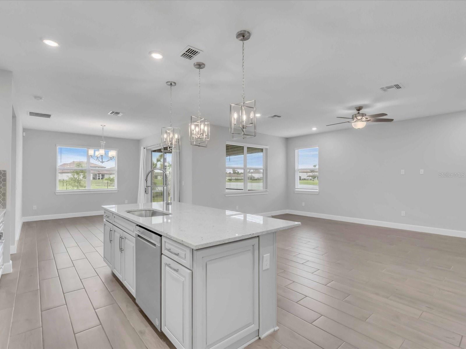 One or more photo(s) has been virtually staged. ** Motivated Seller** !! New Improved price! -- Only 2 years old, like a NEW HOME! Located in the popular Lakewood Ranch Savanna, a gated Community with a clubhouse, community pool, and fitness center. Great Lakewood Ranch School District! Tile roof, paved driveway, upgraded kitchen cabinets with soft close cabinets and drawers. Screened-in Lakeview Lanai. No carpet for the whole house! The main area and all bathrooms come with wood-looking tile flooring, and all bedrooms and closets have been upgraded to Luxury Vinyl Flooring. Great floor plan with 4 bedrooms and 3 full bathrooms with a comfortable large great room space! Open floor plan, a large island with a beautiful backsplash! Gas stove and gas tankless water heater. Kitchen cabinet with built-in cabinet organizing pullout shelvings. Large primary walk-in closet for your large wardrobe collections! Great community amenities include a resort-style pool, a fitness center, a clubhouse for parties and events, a basketball court, a dog park, sidewalks around the community, and so on. Easy access to all shopping, dining, medical services, shopping, the UTC mall, Costco, the new waterside place dining, and entertainment, plus the different famous beaches that are all about 30 minutes away!