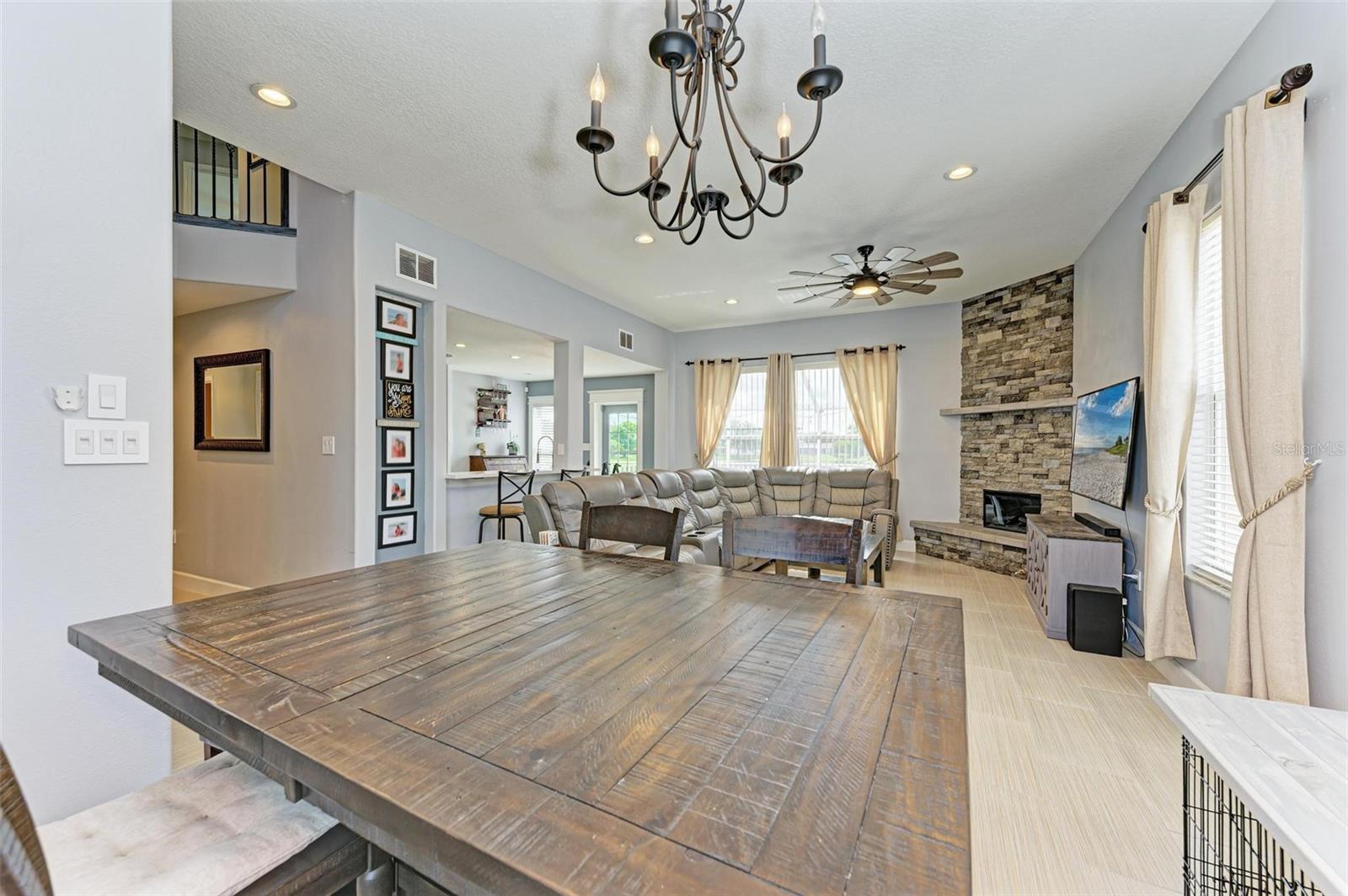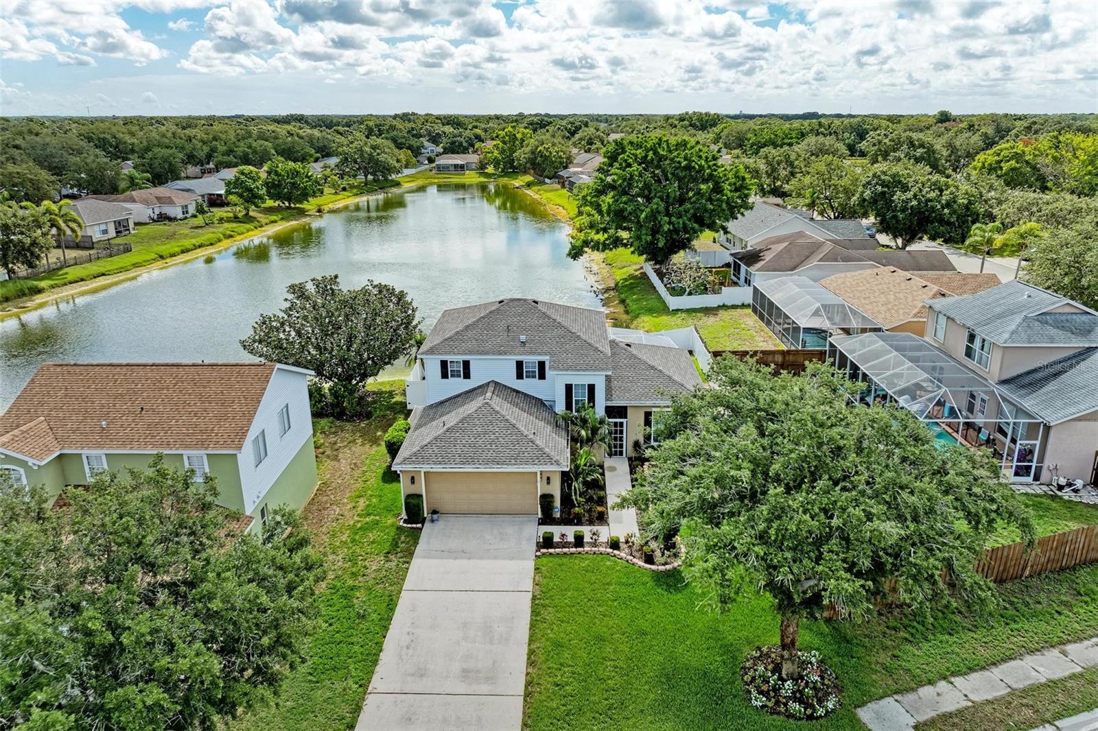 PRICED TO SELL & MOVE-IN READY on this stunning Lakeview home in a PRIME LOCATION of Gates Creek! Why wait to build or have the same "cookie cutter" home as your neighbors with high fees? This 4bed/3bath pool home is ready for its new owners and has so much to offer! From the moment you pull up, you will love the beautiful curb appeal with oversized lot & mature tropical landscaping, an extended driveway for extra guest parking, and the evening lighting ambiance will capture you. As you enter the foyer & family room you will see the floor to ceiling brick electric fireplace, offering a great focal point with high open ceilings for great natural light, along with 5 1/4" baseboard trim. The sleek modern kitchen offers stainless appliances, a Samsung smart refrigerator w/ LED & Wi-Fi, perfect for creating grocery lists & reminders, beautiful custom modern cabinetry, new Quartz countertops w/ breakfast bar, and overlooks the living & dining room. The open floorpan is perfect for entertaining and serving guests. Off the kitchen walk outside to the newer (2016) custom designed pool with PENTAIR Lighting System, new pool pump motor (2024), and a granite pool table to gather around & cool off during the summer months. The large screened lanai offers great space, along with the in-ground french drain firepit for easy cleanup and overlooks the peaceful Lake. The spacious Primary Retreat is on the main level, perfect for unwinding after a long day and overlooks the pool/lake, along with a walk-in closet and updated ensuite master bath w/ walk-in shower. All three baths in the house have been completely remodeled with tile, cabinetry, new toilets and fixtures. Heading up to the second level you will see the beautiful wood and metal rod staircase, which is open to the entryway & living room. The modern style continues with a gorgeous mirror framed wall and wainscotting for great appeal. All three bedrooms are upstairs, which gives great separation from the master downstairs, along with another updated bath and beautiful luxury vinyl flooring. This solid home has a newer roof, and all windows upstairs have been updated and are impact/hurricane grade to help you sleep more peacefully at night. The Seller has spared no expense inside and out, and the house has a 240V and is ELECTRIC CAR READY! Improvements & updates also include a new AC blower (2022), water heater (2024), updated irrigation system (2024), newer roof (2020), hurricane impact windows upstairs (2019), LED lighting throughout, new garage door springs, new exterior shutters, pavers, and a rebuilt back flow all updated in 2024. What more could you ask for? The Gates Creek community offers a park & playground area, bass fishing in the lakes, safe & easy for walking your dog(s), and the best part is it's ONLY $59mo in HOA Fees...WOW! Prime location next to LWR and all it has to offer from its downtown shops/restaurants, events, several close parks & trails including Ft. Hammer Park, the UMR Sports Complex, which are just up the street, along with great schools! Sarasota/Bradenton airport is 25mins away, and Interstate I-75 (4mi.) for easy commuting to St.Pete/Tampa (North), or Sarasota (South). Our beautiful powder sandy beaches of Anna Maria are just under 30mins. making this location a PERFECT CHOICE! Don't let this BEAUTY pass you by so come get your Florida Paradise!!!