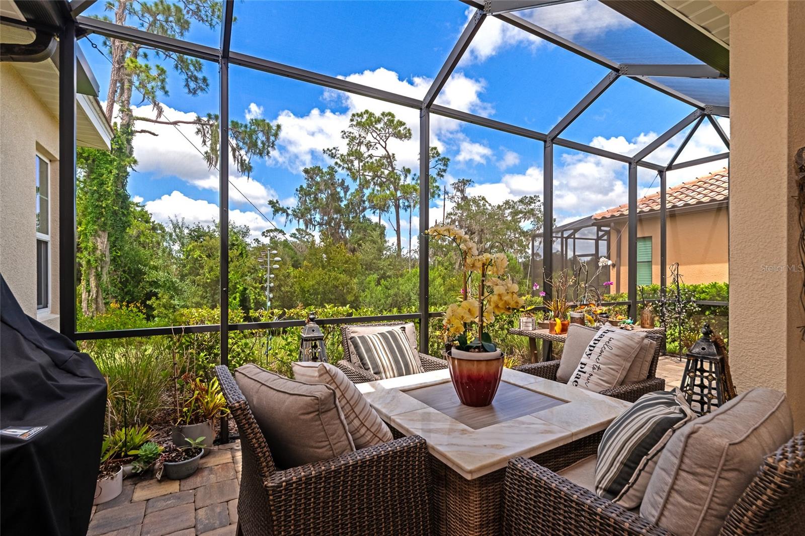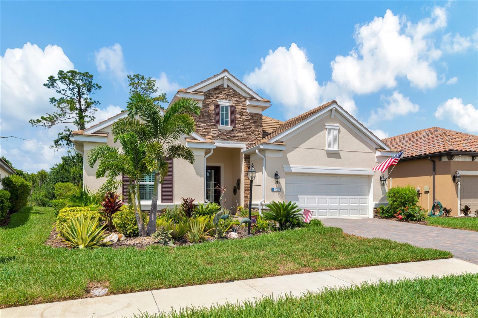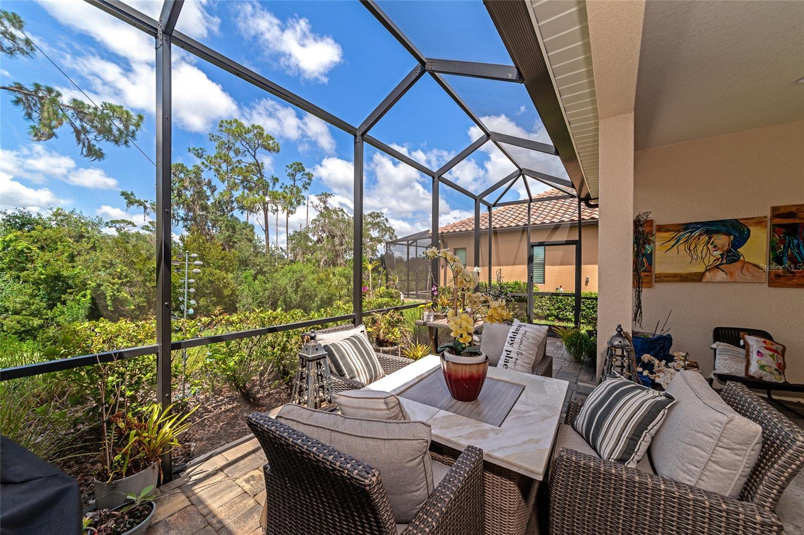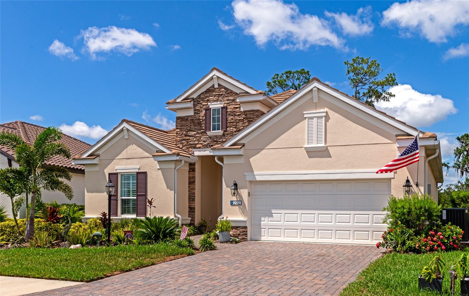 Just reduced! Are you on the lookout for a stunning, move-in-ready home? Look no further than this gem in the Indigo neighborhood of Lakewood Ranch. Built by Neal Communities, this home is packed with upgrades that will check off all your boxes on your wish list.. The home is elegant, clean, and has a contemporary esthetic that has a timeless feel. As soon as you step inside, you’ll notice the beautiful tile floors that run throughout the entire home. For added peace of mind during stormy weather, the house is equipped with a 24kwh Generac backup generator will run the entire house. and impact windows throughout means no dealing with trying to install shutters. The open great room layout is a hit, flowing seamlessly into the luxurious gourmet kitchen. Here, you'll find quartz countertops, elegant wood cabinets, with contrasting cabinets and premium stainless steel appliances wall oven, and gas cooktop – a perfect setup for home chef. The large center island will be the center of activity for your family and friends. The built in fireplace adds to the ambiance, and gives the space a nice highlight. 2 guest rooms share a full bathroom, and there is also an additional 1/2 bath for your guests The master suite is a true retreat, featuring two spacious walk-in closets, a bathroom with dual vanities, and a large walk-in shower. Crown molding adds a touch of elegance throughout the home. Need a workspace or a cozy reading nook? The handy den with French doors crown molding, and wood floors has you covered. Step outside to the screened lanai, an ideal spot for an afternoon BBQ. There's plenty of room to add a pool if you wish, but you might just prefer the fantastic community amenities. Indigo offers a great pool, spa, clubhouse, and gym, all with low HOA fees. The gated entrance and reclaimed water for irrigation add to the appeal. Curious to see more? Put this on your short list for in person visit or check out the 3D virtual tour – it’s almost like being there in person!