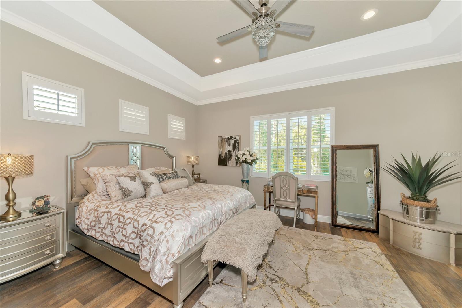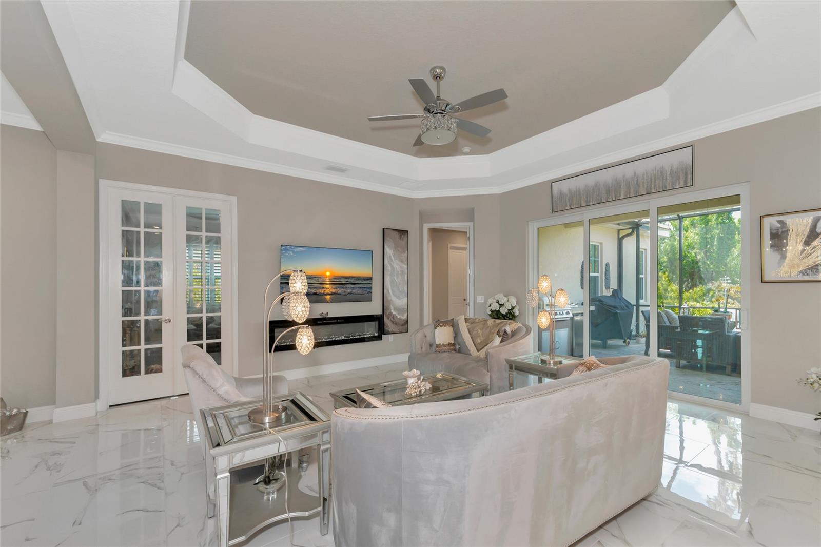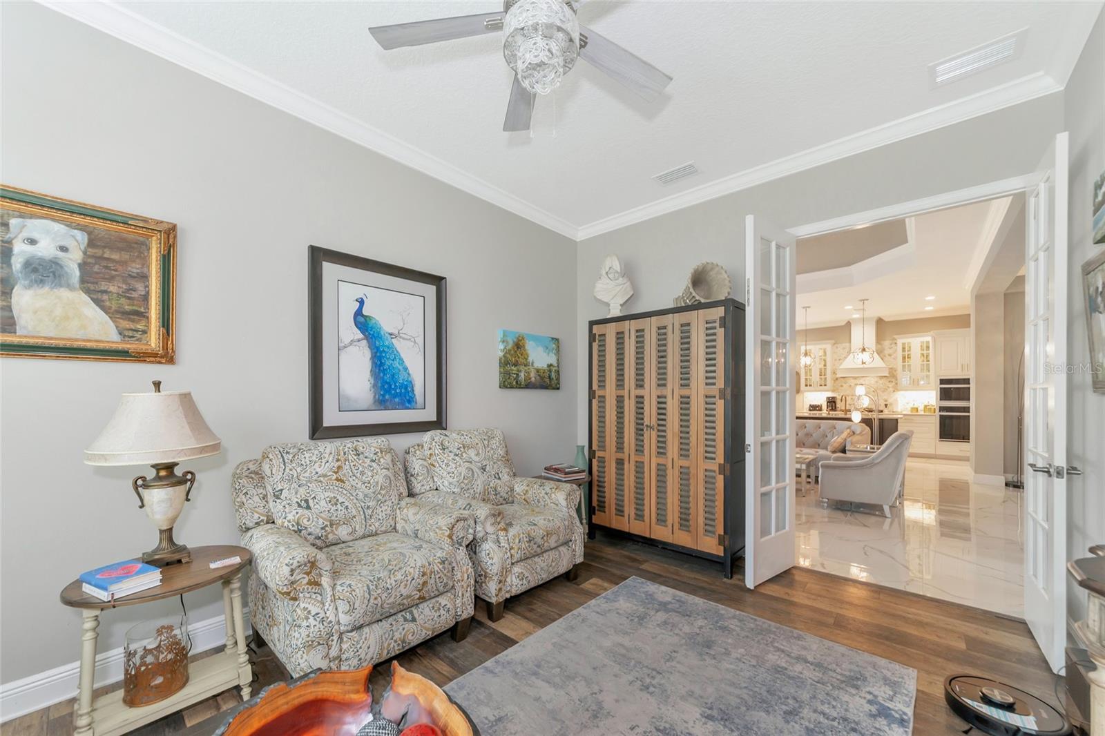 Just reduced! Are you on the lookout for a stunning, move-in-ready home? Look no further than this gem in the Indigo neighborhood of Lakewood Ranch. Built by Neal Communities, this home is packed with upgrades that will check off all your boxes on your wish list.. The home is elegant, clean, and has a contemporary esthetic that has a timeless feel. As soon as you step inside, you’ll notice the beautiful tile floors that run throughout the entire home. For added peace of mind during stormy weather, the house is equipped with a 24kwh Generac backup generator will run the entire house. and impact windows throughout means no dealing with trying to install shutters. The open great room layout is a hit, flowing seamlessly into the luxurious gourmet kitchen. Here, you'll find quartz countertops, elegant wood cabinets, with contrasting cabinets and premium stainless steel appliances wall oven, and gas cooktop – a perfect setup for home chef. The large center island will be the center of activity for your family and friends. The built in fireplace adds to the ambiance, and gives the space a nice highlight. 2 guest rooms share a full bathroom, and there is also an additional 1/2 bath for your guests The master suite is a true retreat, featuring two spacious walk-in closets, a bathroom with dual vanities, and a large walk-in shower. Crown molding adds a touch of elegance throughout the home. Need a workspace or a cozy reading nook? The handy den with French doors crown molding, and wood floors has you covered. Step outside to the screened lanai, an ideal spot for an afternoon BBQ. There's plenty of room to add a pool if you wish, but you might just prefer the fantastic community amenities. Indigo offers a great pool, spa, clubhouse, and gym, all with low HOA fees. The gated entrance and reclaimed water for irrigation add to the appeal. Curious to see more? Put this on your short list for in person visit or check out the 3D virtual tour – it’s almost like being there in person!