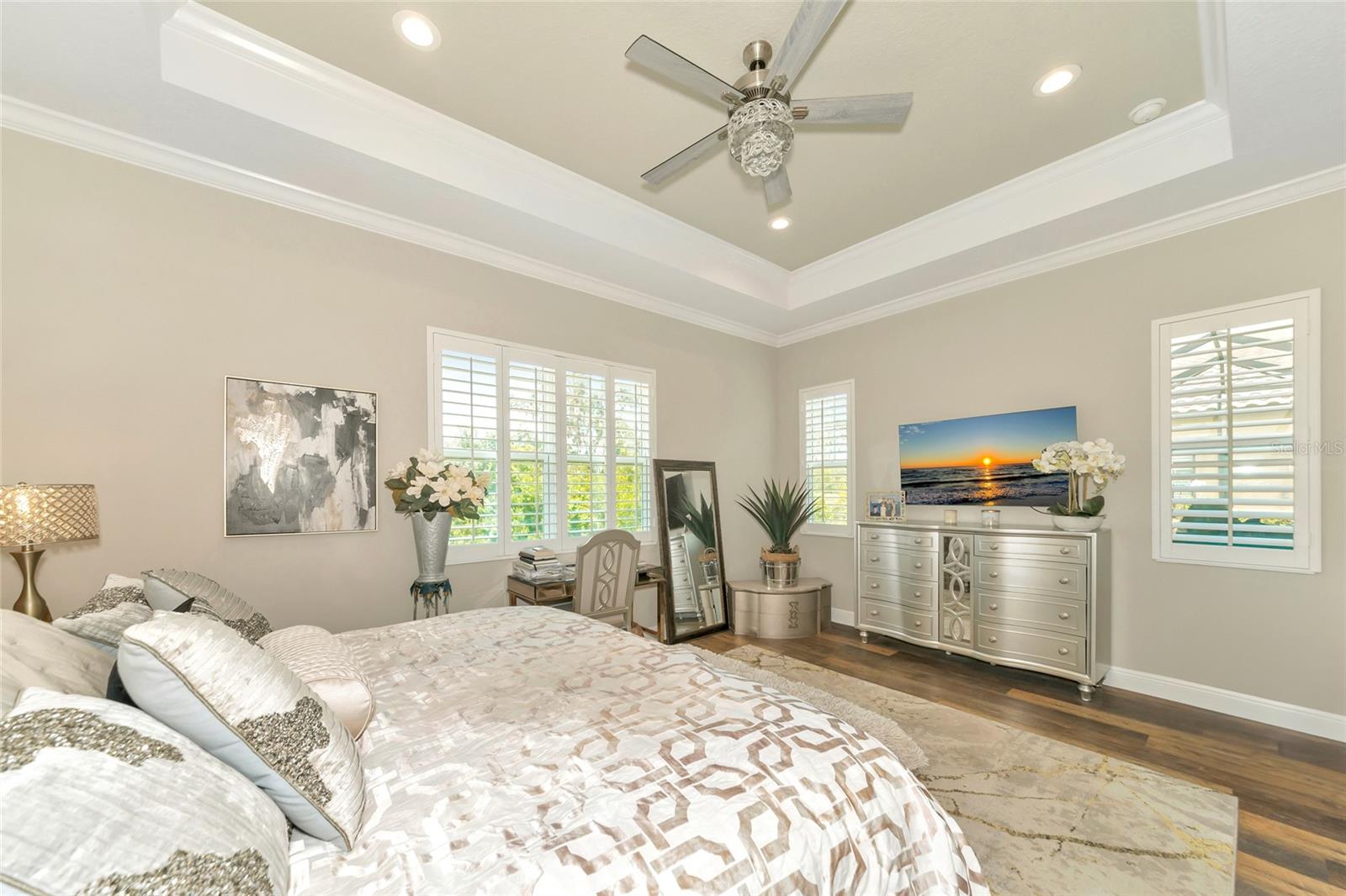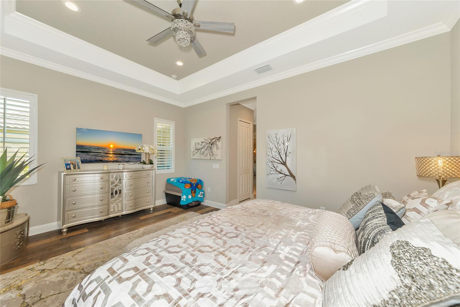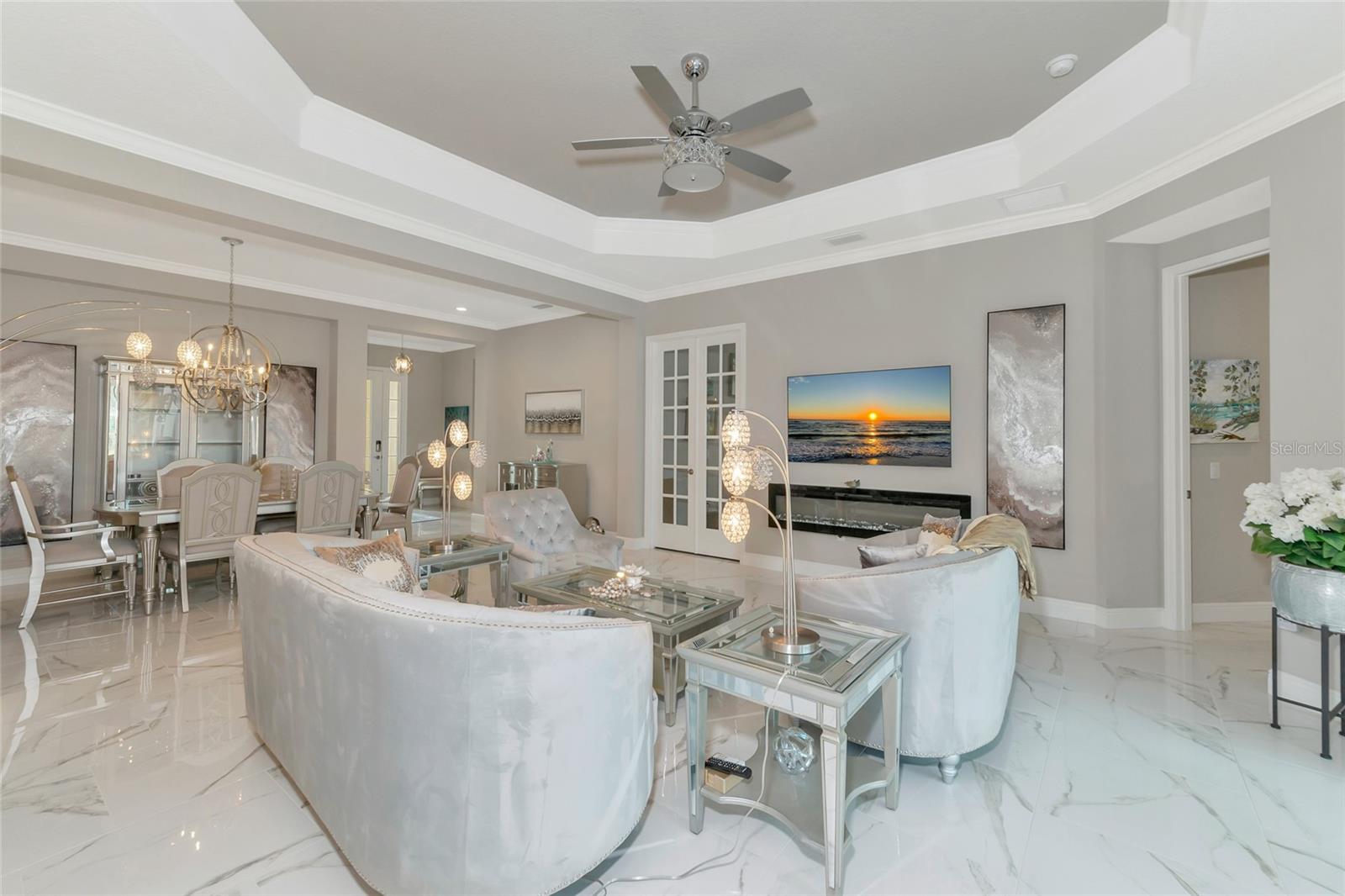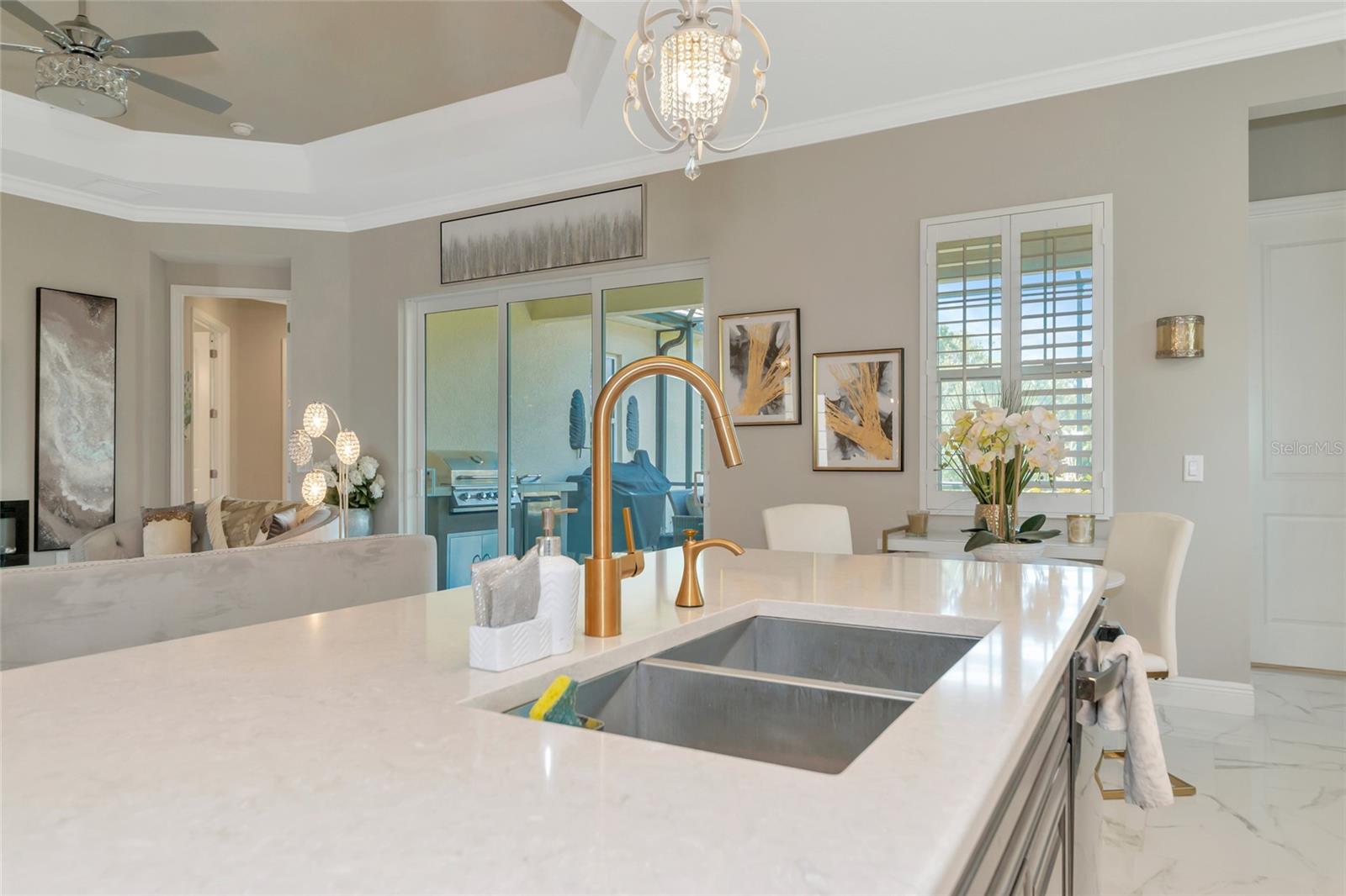 Just reduced! Are you on the lookout for a stunning, move-in-ready home? Look no further than this gem in the Indigo neighborhood of Lakewood Ranch. Built by Neal Communities, this home is packed with upgrades that will check off all your boxes on your wish list.. The home is elegant, clean, and has a contemporary esthetic that has a timeless feel. As soon as you step inside, you’ll notice the beautiful tile floors that run throughout the entire home. For added peace of mind during stormy weather, the house is equipped with a 24kwh Generac backup generator will run the entire house. and impact windows throughout means no dealing with trying to install shutters. The open great room layout is a hit, flowing seamlessly into the luxurious gourmet kitchen. Here, you'll find quartz countertops, elegant wood cabinets, with contrasting cabinets and premium stainless steel appliances wall oven, and gas cooktop – a perfect setup for home chef. The large center island will be the center of activity for your family and friends. The built in fireplace adds to the ambiance, and gives the space a nice highlight. 2 guest rooms share a full bathroom, and there is also an additional 1/2 bath for your guests The master suite is a true retreat, featuring two spacious walk-in closets, a bathroom with dual vanities, and a large walk-in shower. Crown molding adds a touch of elegance throughout the home. Need a workspace or a cozy reading nook? The handy den with French doors crown molding, and wood floors has you covered. Step outside to the screened lanai, an ideal spot for an afternoon BBQ. There's plenty of room to add a pool if you wish, but you might just prefer the fantastic community amenities. Indigo offers a great pool, spa, clubhouse, and gym, all with low HOA fees. The gated entrance and reclaimed water for irrigation add to the appeal. Curious to see more? Put this on your short list for in person visit or check out the 3D virtual tour – it’s almost like being there in person!