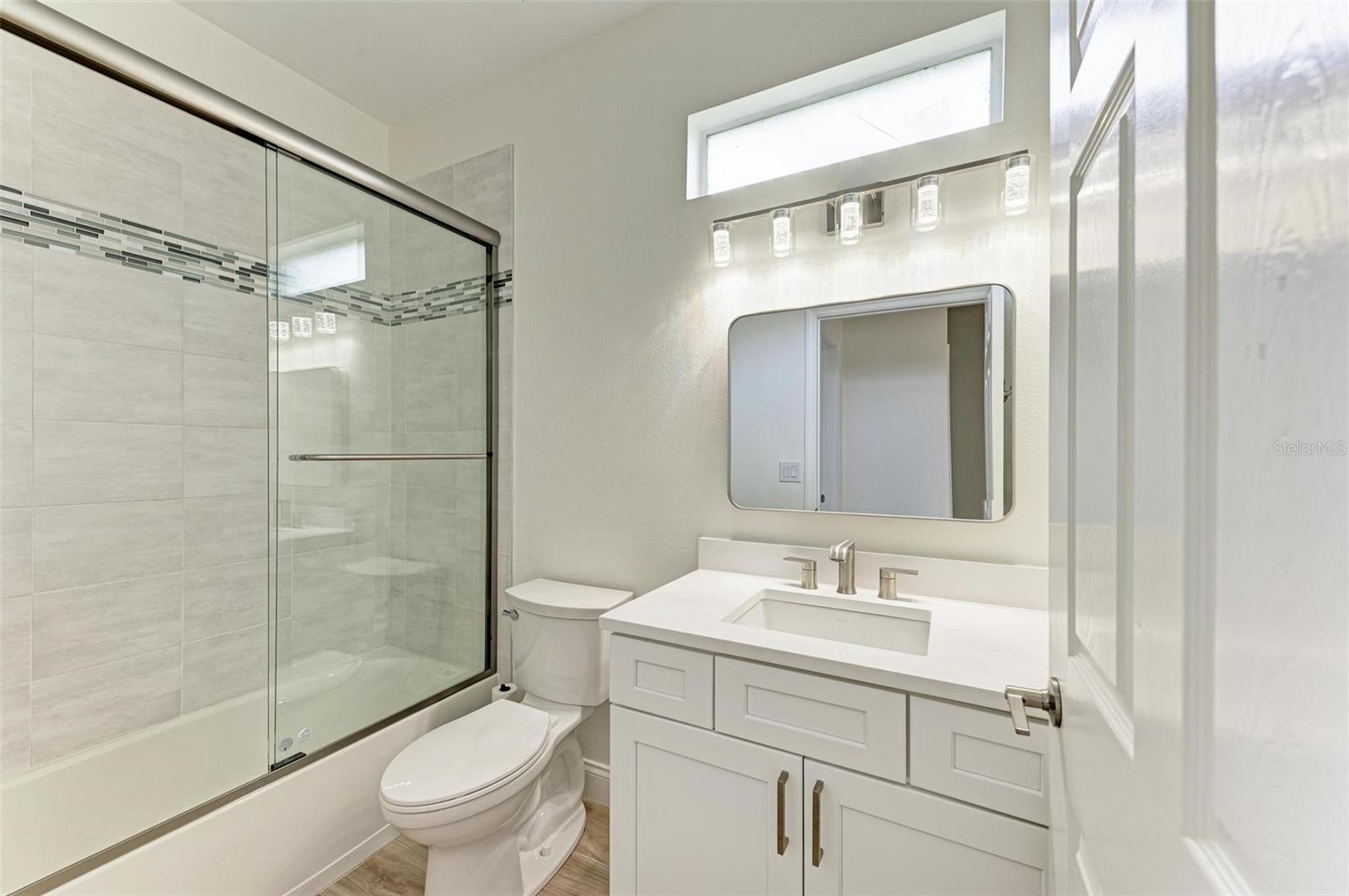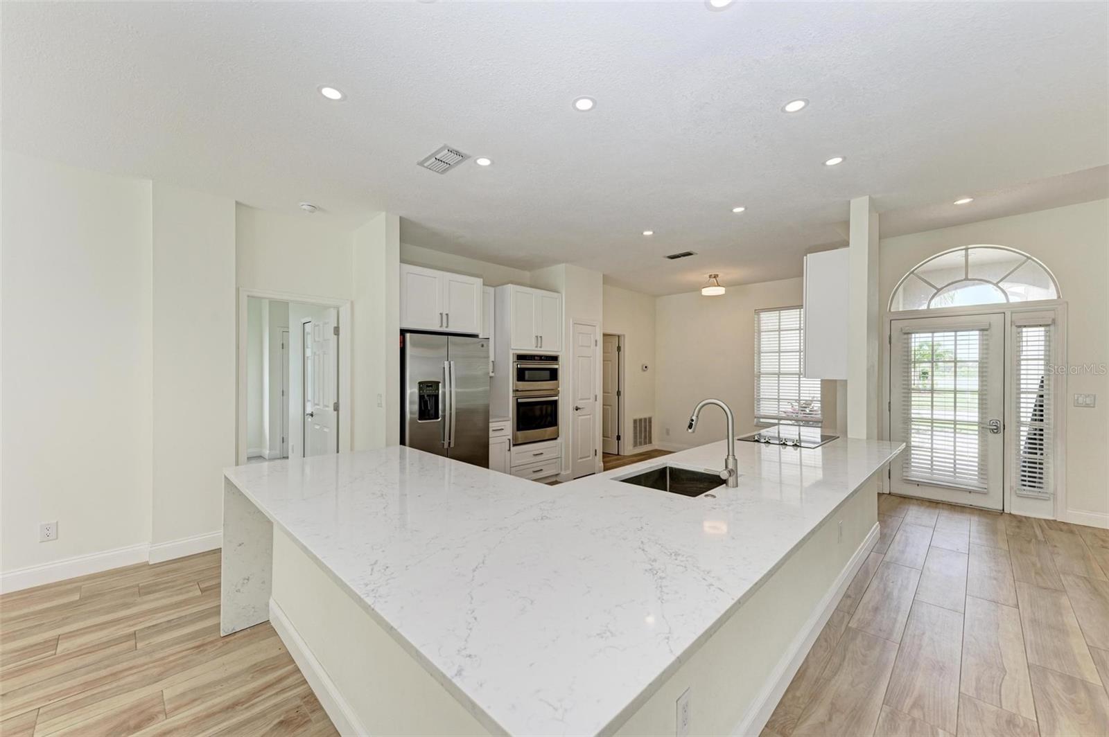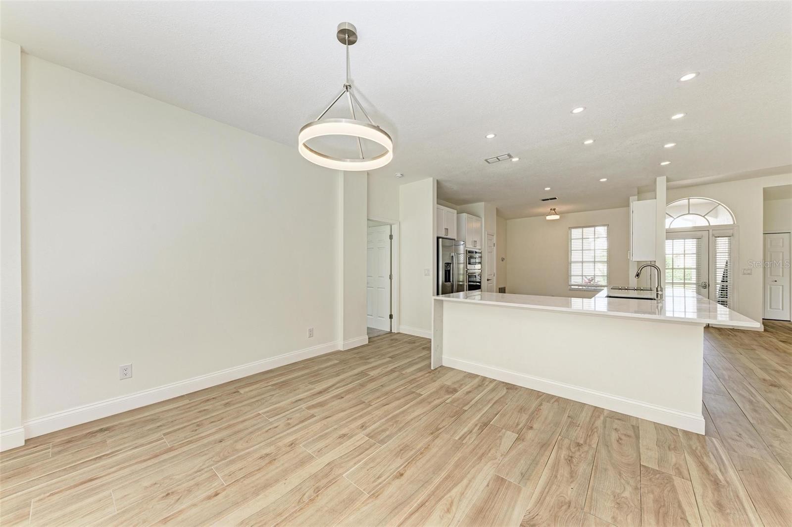 One or more photo(s) has been virtually staged. This stunning 3 bedroom / 2 bathroom home is in the heart of West Bradenton, walking distance to the front entrance of IMG Academy, and in the beautiful and peaceful Glenn Lakes community. As you enter the home you are greeted with a fully renovated open concept kitchen, brand new wood-grain tile flooring, all new shaker cabinets, quartz countertops, and very tasteful touches throughout. There is a formal dining area, a screened-in lanai, and the kitchen also has a breakfast nook. The master bedroom is very large, spacious and private as it has its own wing of the house with an en suite bathroom and walk-in closet. The other two bedrooms are on the other side of the house with a shared bathroom. The backyard is enclosed with durable vinyl fencing, adding to the peaceful and serene setting that includes full privacy. The yard is very large with room to add a pool. The roof was replaced in 2023 and the AC was installed in 2016 (Air Handler also includes UV light system for clean air throughout home). The best part of this home is the location: you a minutes from shopping and restaurants, walking distance to IMG Academy, and a short drive to some of the most beautiful beaches in Florida, including Anna Maria Island, Longboat Key and Bradenton Beach. Add in a low quarterly HOA, low taxes, and no flood insurance requirement - and you have the perfect home in the best location in West Bradenton, ready for its new owner!! Previous owner met with an amazing pool contractor in the Bradenton area and had some beautiful pool renderings made. Please see all pool rendering photos attached to listing for exact pool you could have in your backyard!