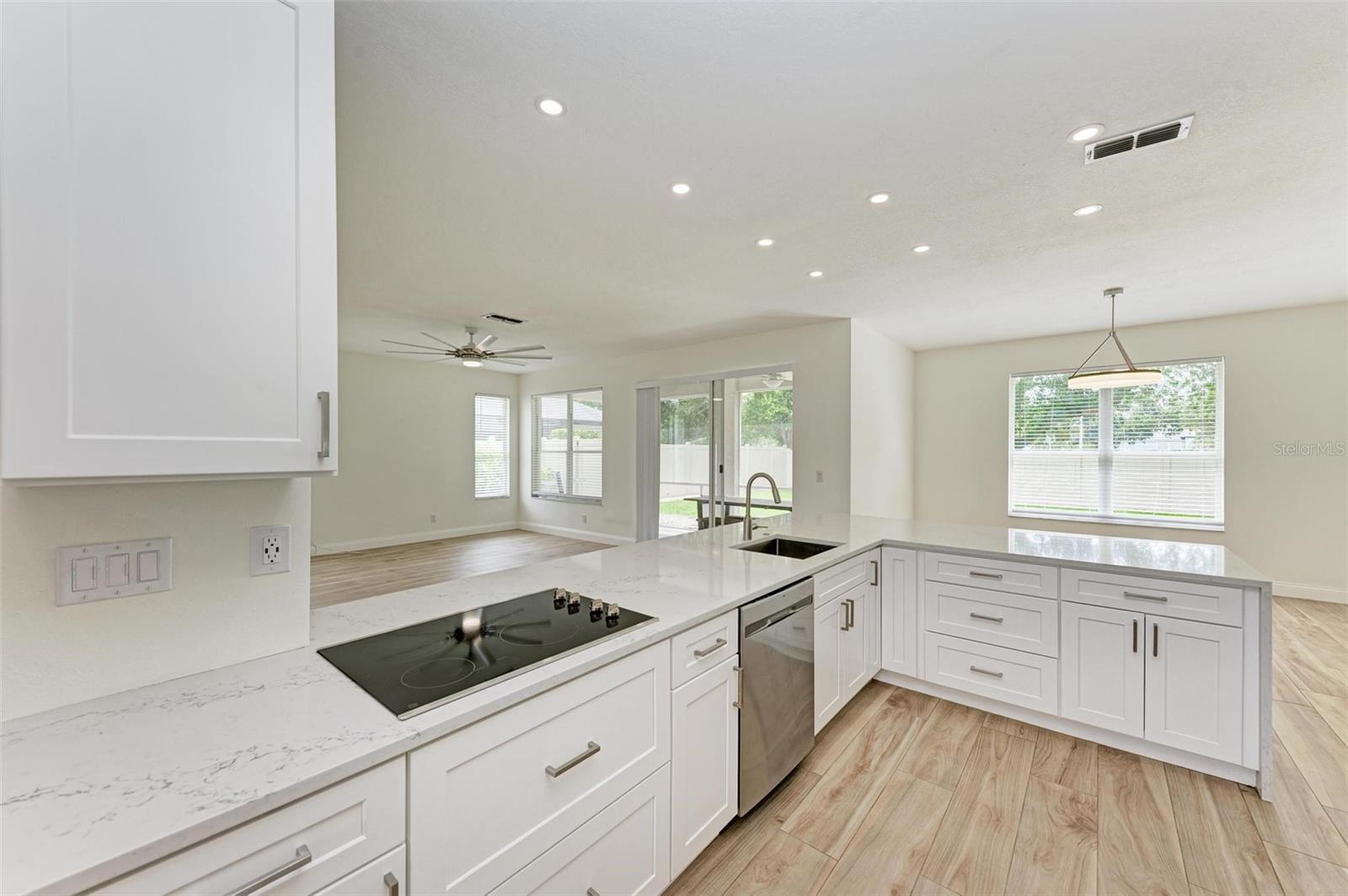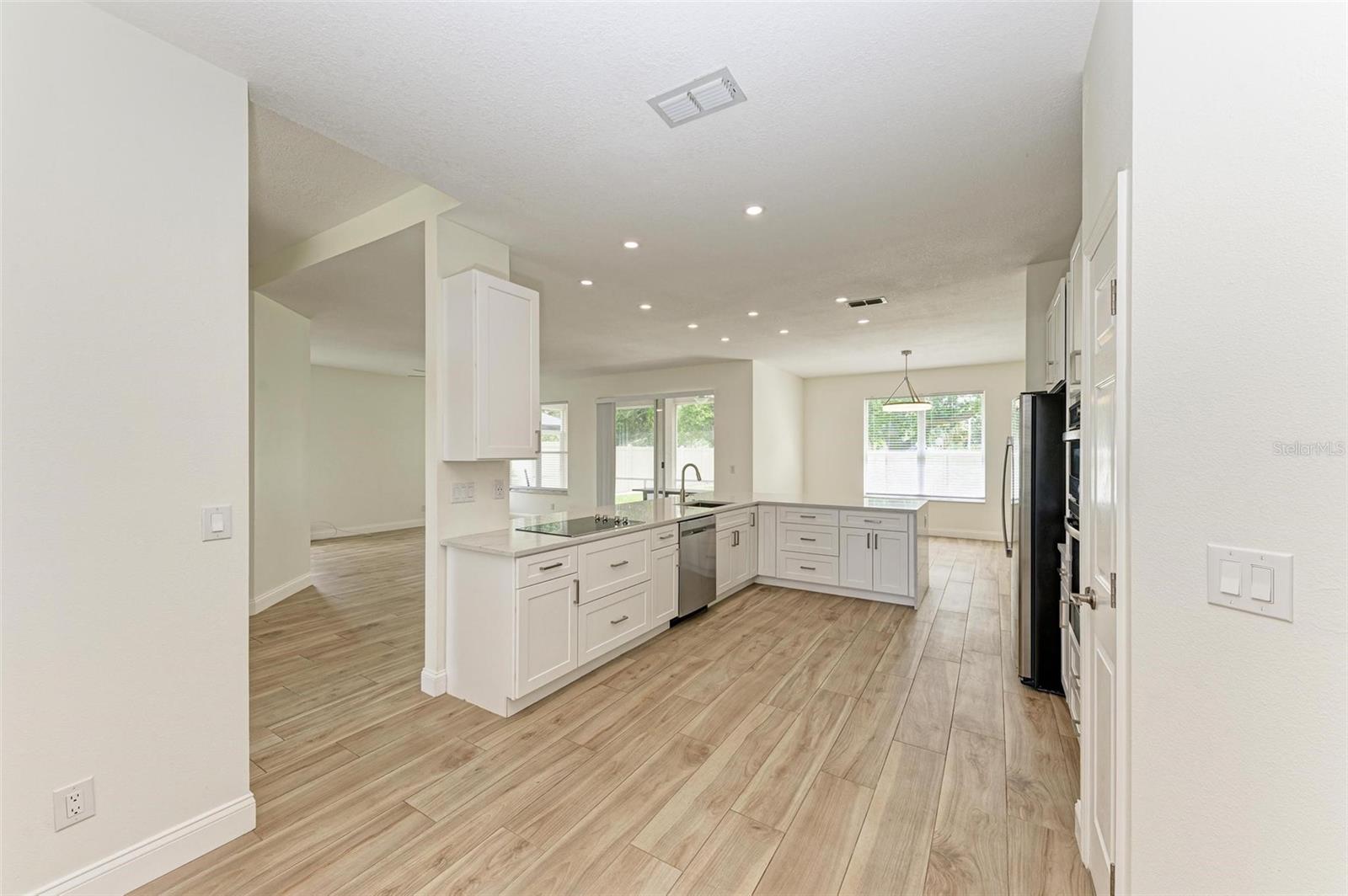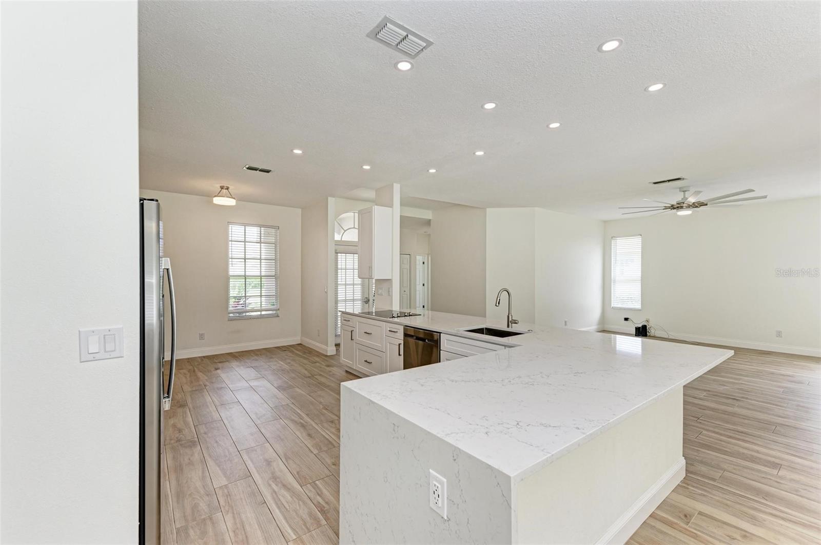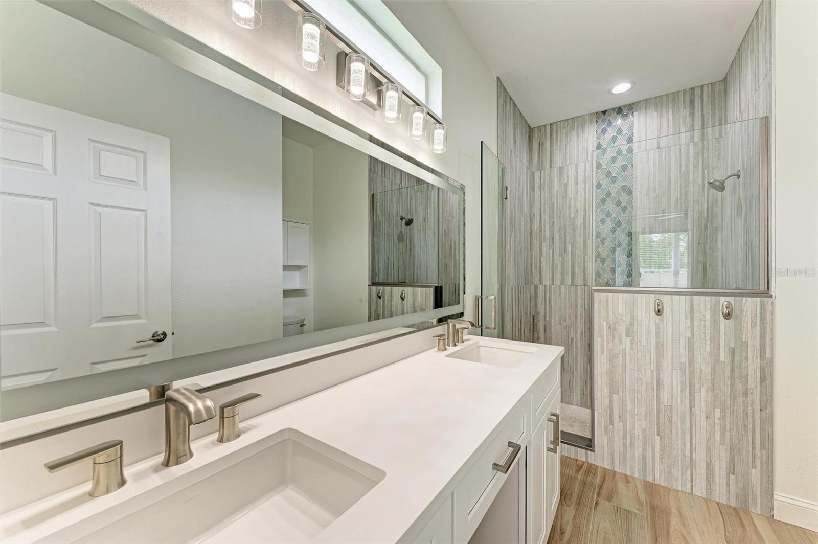 One or more photo(s) has been virtually staged. This stunning 3 bedroom / 2 bathroom home is in the heart of West Bradenton, walking distance to the front entrance of IMG Academy, and in the beautiful and peaceful Glenn Lakes community. As you enter the home you are greeted with a fully renovated open concept kitchen, brand new wood-grain tile flooring, all new shaker cabinets, quartz countertops, and very tasteful touches throughout. There is a formal dining area, a screened-in lanai, and the kitchen also has a breakfast nook. The master bedroom is very large, spacious and private as it has its own wing of the house with an en suite bathroom and walk-in closet. The other two bedrooms are on the other side of the house with a shared bathroom. The backyard is enclosed with durable vinyl fencing, adding to the peaceful and serene setting that includes full privacy. The yard is very large with room to add a pool. The roof was replaced in 2023 and the AC was installed in 2016 (Air Handler also includes UV light system for clean air throughout home). The best part of this home is the location: you a minutes from shopping and restaurants, walking distance to IMG Academy, and a short drive to some of the most beautiful beaches in Florida, including Anna Maria Island, Longboat Key and Bradenton Beach. Add in a low quarterly HOA, low taxes, and no flood insurance requirement - and you have the perfect home in the best location in West Bradenton, ready for its new owner!! Previous owner met with an amazing pool contractor in the Bradenton area and had some beautiful pool renderings made. Please see all pool rendering photos attached to listing for exact pool you could have in your backyard!