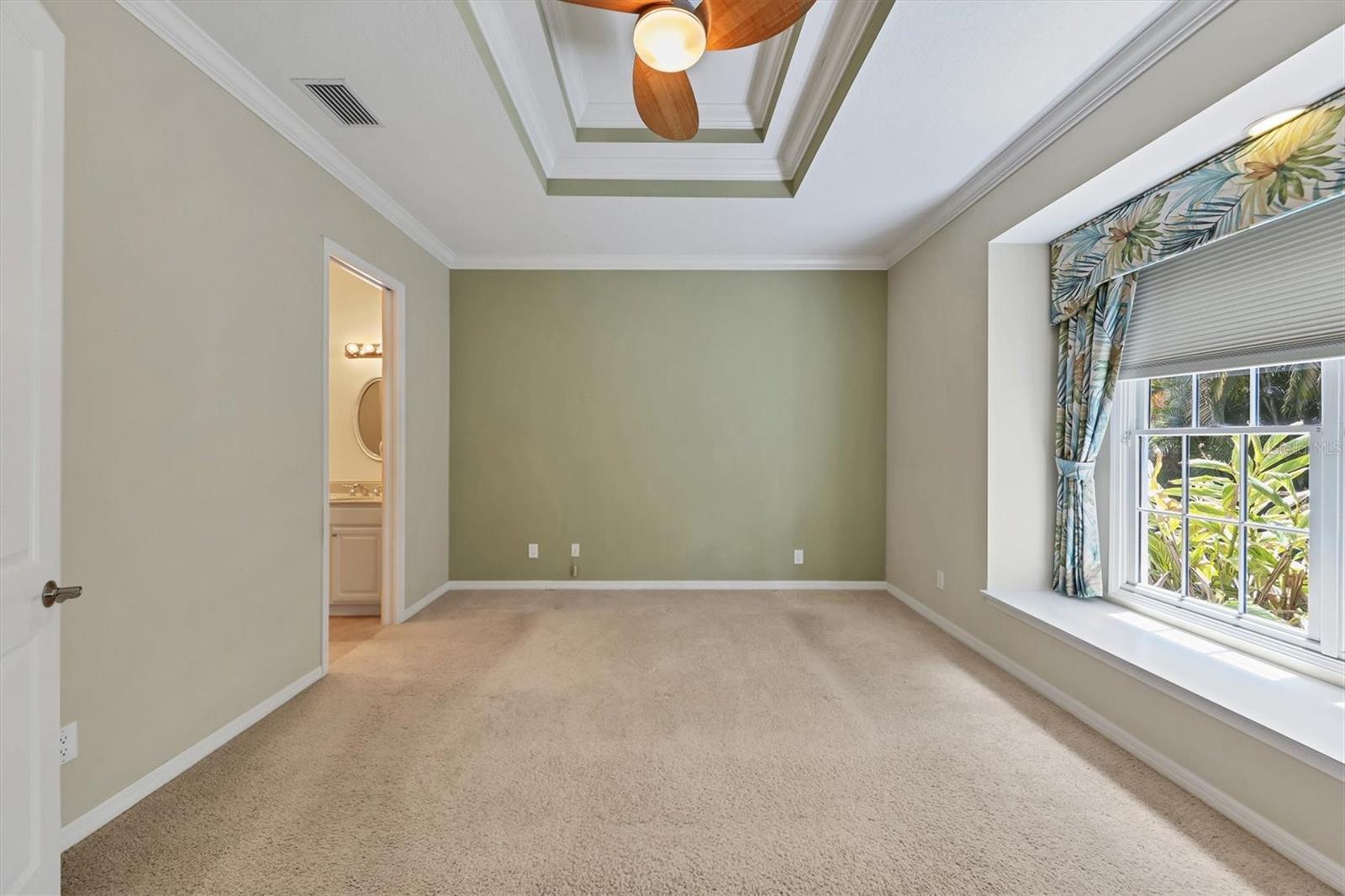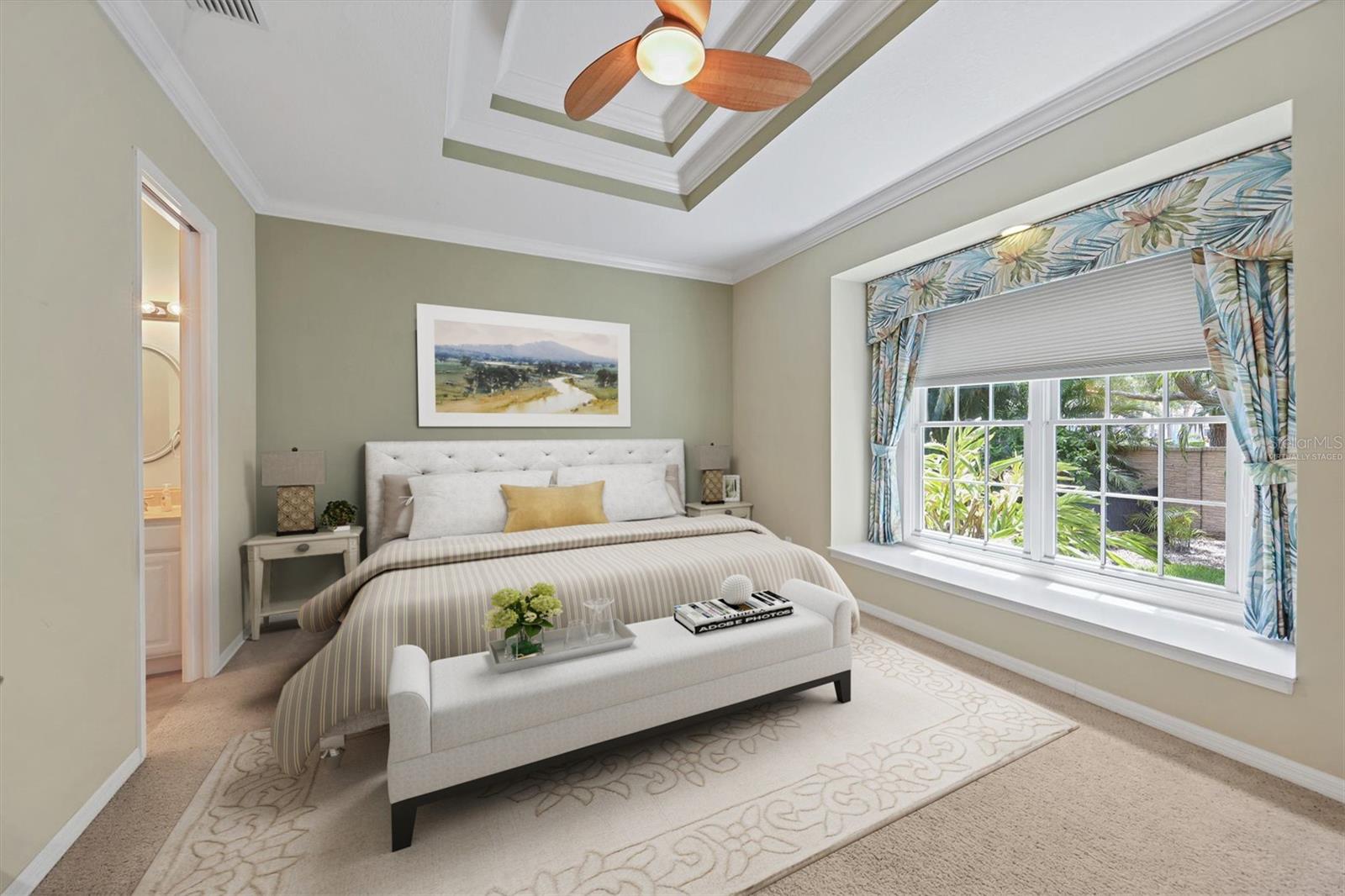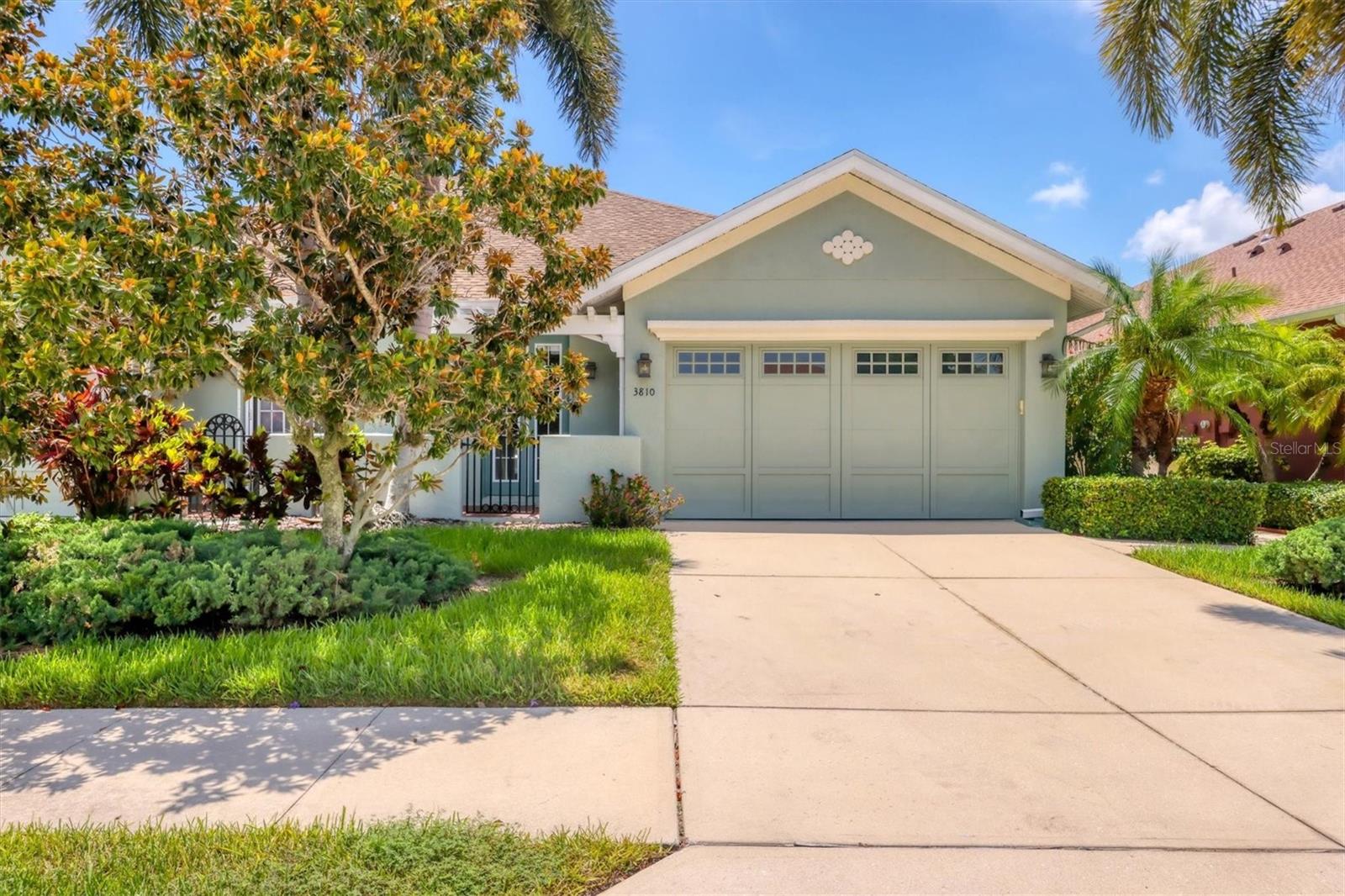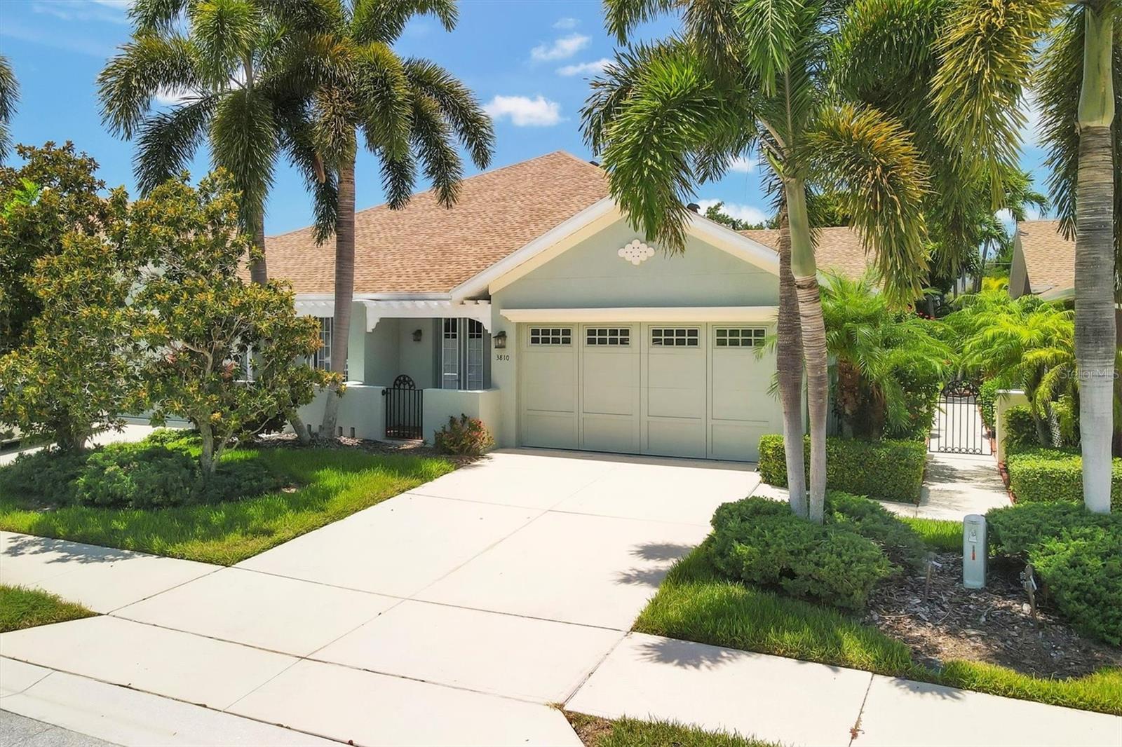 Introducing an exceptional villa that features 3 bedrooms, 2 bathrooms, plus a den, and under 5 miles to the award winning beaches of Anna Maria Island. With ROOF replaced March of 2024 and HVAC replaced in 2019 you will rest easy knowing big ticket replacements are already taken care of! Step inside to the open floor plan accentuated by 10-foot, double tray, and coffered ceilings throughout giving an elevated touch. The split floor plan makes it easy and convenient to enjoy having guests over while still maintaining your privacy. Walking into the primary bedroom you're greeted with an expansive bedroom and a cozy window nook that gives plenty of natural light. The primary bathroom offers a double sink vanity, walk-in-tiled shower, a closed off toilet with bidet, and spacious walk in closet. The bedrooms also feature California closets for all of your storage needs. The kitchen features custom wood cabinetry, pull-out drawers, stainless steel appliances, built-in wine rack, and walk-in pantry. On the guest side of the home you will find the additional 3 bedrooms and bathroom, the laundry room, and 2-car garage. One of the bedrooms is fitted for an office where you will find a full sized desk, upper cabinets, and a Murphy bed for maximum efficiency. The laundry room has the convenience you'll enjoy with upper cabinets and a hidden pull-down ironing board. Palma Sola Trace offers great amenities, the heated community pool is just a short walk away, in addition to a large clubhouse and a full gym. With this home located under 5 miles to Anna Maria Island this gives you easy access to the sugary sand beaches, fine dinning, and a true vacationing experience just a bike ride away.