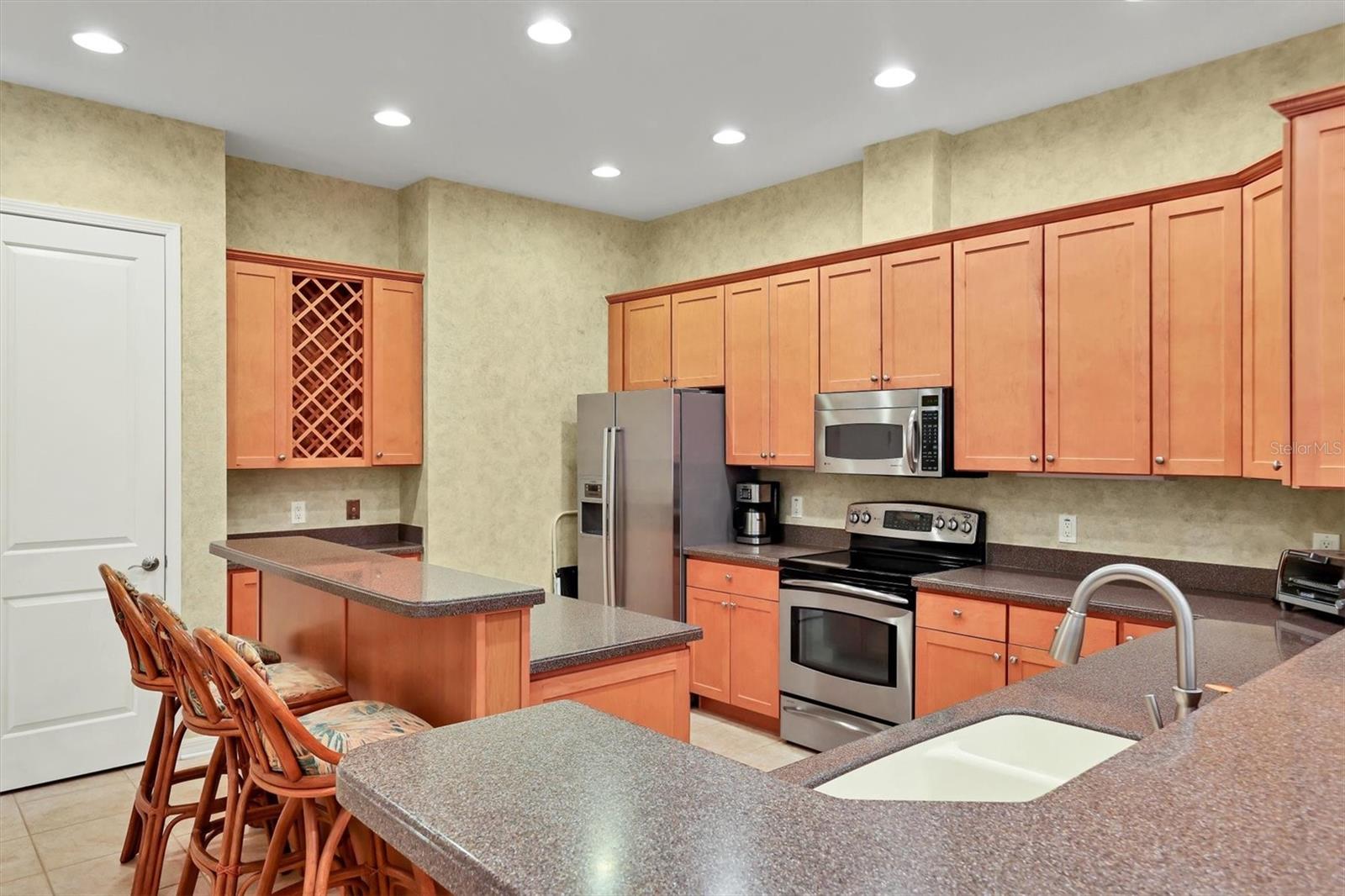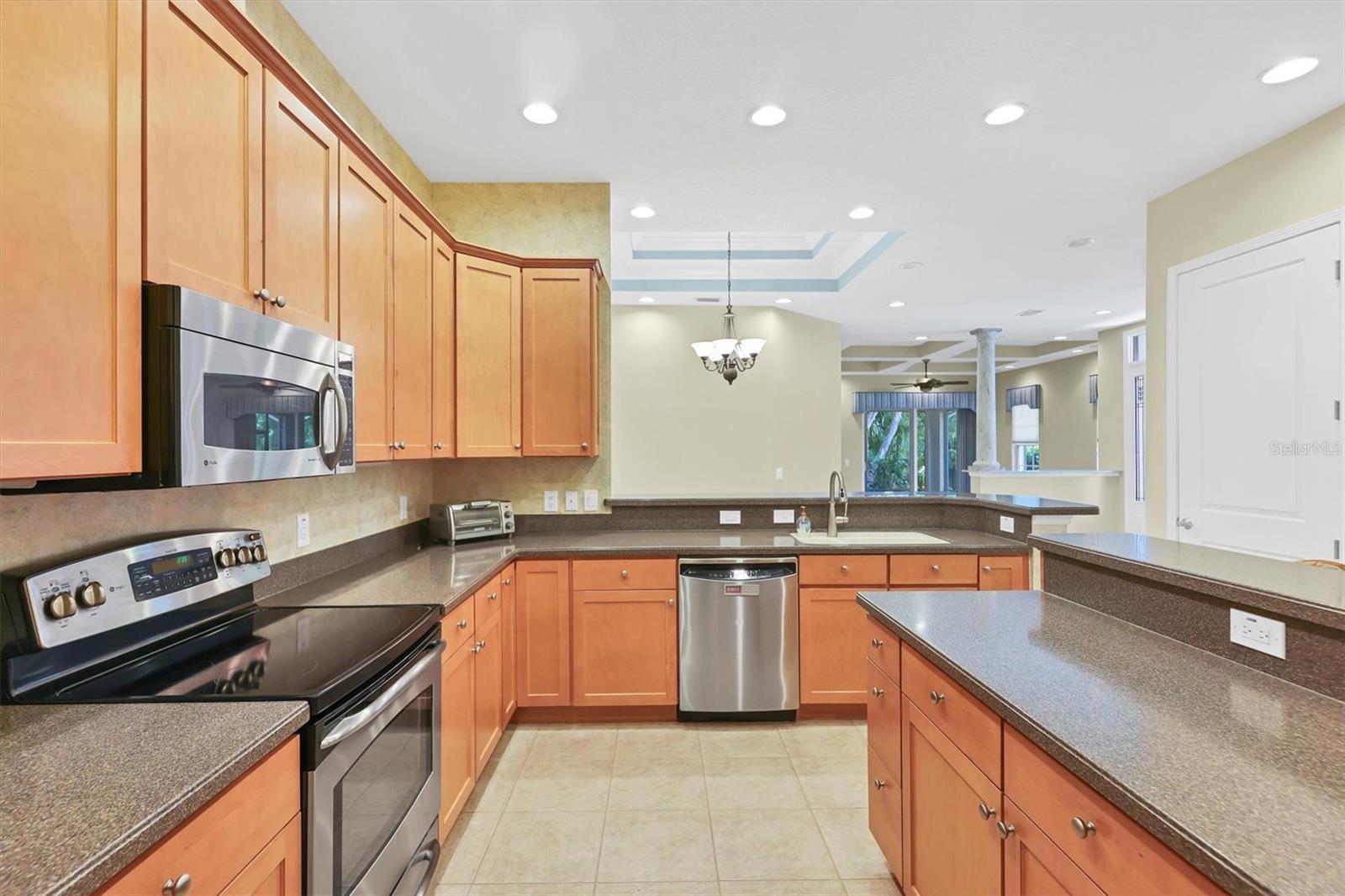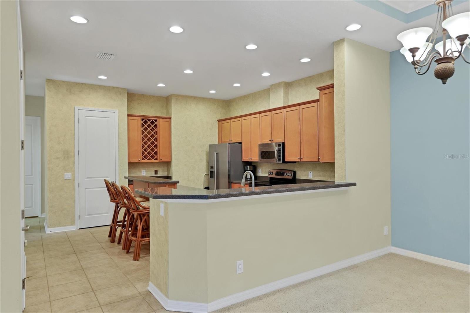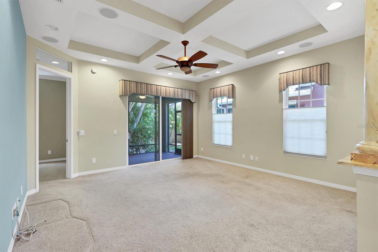 Introducing an exceptional villa that features 3 bedrooms, 2 bathrooms, plus a den, and under 5 miles to the award winning beaches of Anna Maria Island. With ROOF replaced March of 2024 and HVAC replaced in 2019 you will rest easy knowing big ticket replacements are already taken care of! Step inside to the open floor plan accentuated by 10-foot, double tray, and coffered ceilings throughout giving an elevated touch. The split floor plan makes it easy and convenient to enjoy having guests over while still maintaining your privacy. Walking into the primary bedroom you're greeted with an expansive bedroom and a cozy window nook that gives plenty of natural light. The primary bathroom offers a double sink vanity, walk-in-tiled shower, a closed off toilet with bidet, and spacious walk in closet. The bedrooms also feature California closets for all of your storage needs. The kitchen features custom wood cabinetry, pull-out drawers, stainless steel appliances, built-in wine rack, and walk-in pantry. On the guest side of the home you will find the additional 3 bedrooms and bathroom, the laundry room, and 2-car garage. One of the bedrooms is fitted for an office where you will find a full sized desk, upper cabinets, and a Murphy bed for maximum efficiency. The laundry room has the convenience you'll enjoy with upper cabinets and a hidden pull-down ironing board. Palma Sola Trace offers great amenities, the heated community pool is just a short walk away, in addition to a large clubhouse and a full gym. With this home located under 5 miles to Anna Maria Island this gives you easy access to the sugary sand beaches, fine dinning, and a true vacationing experience just a bike ride away.