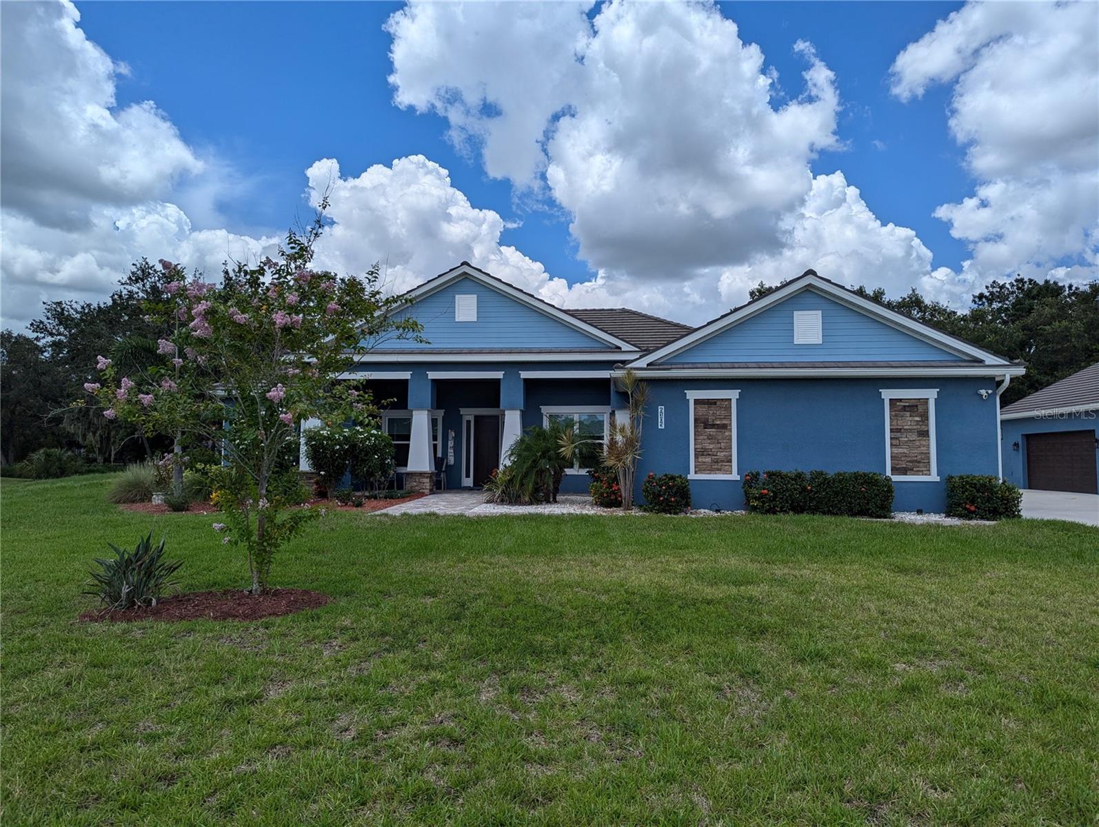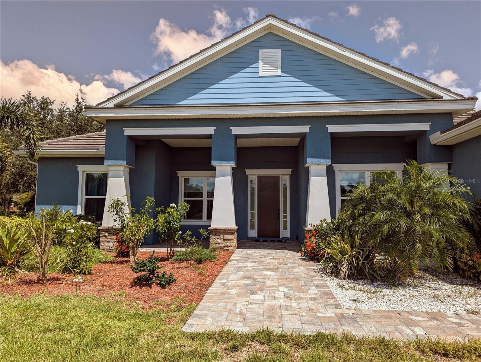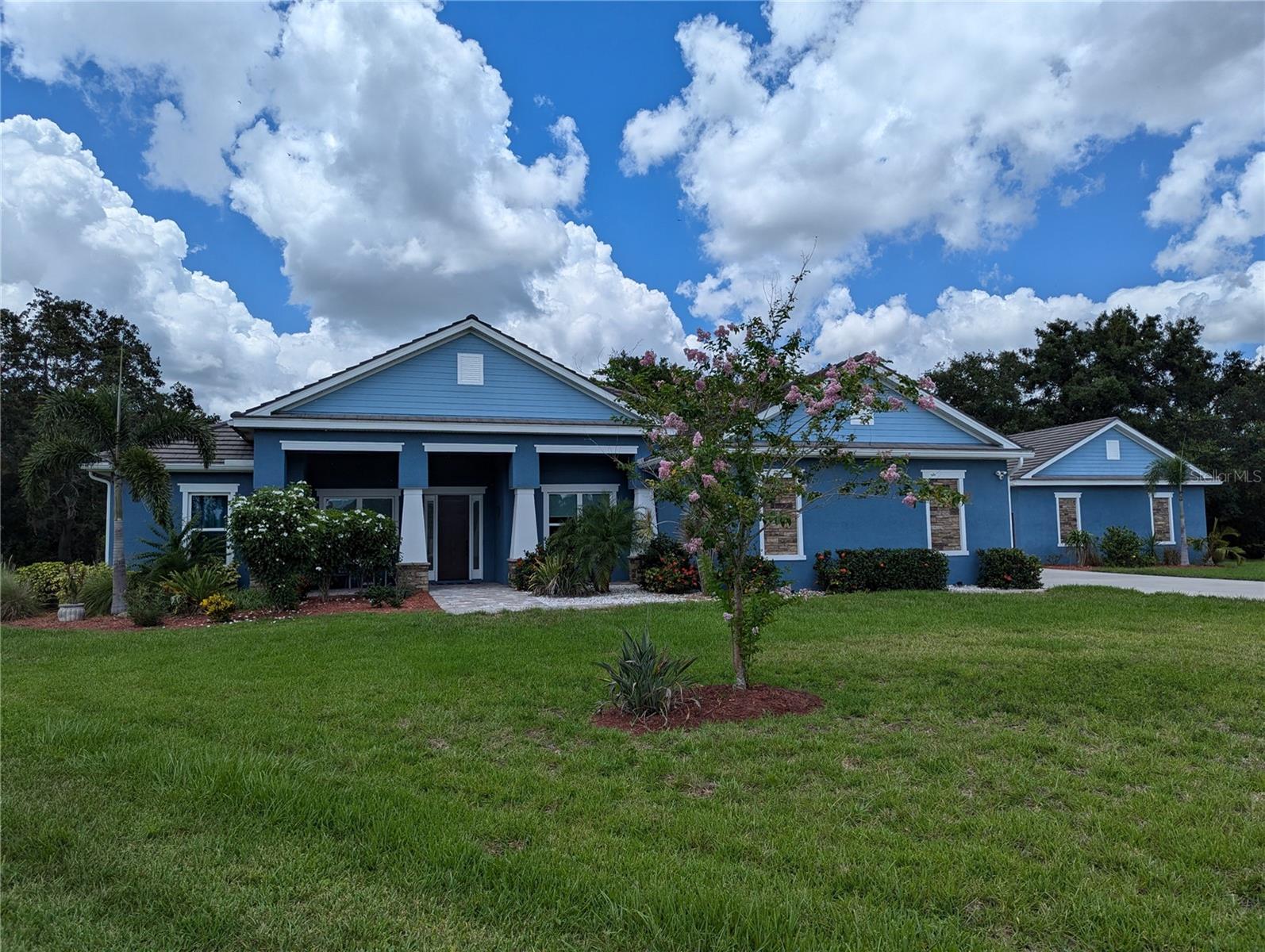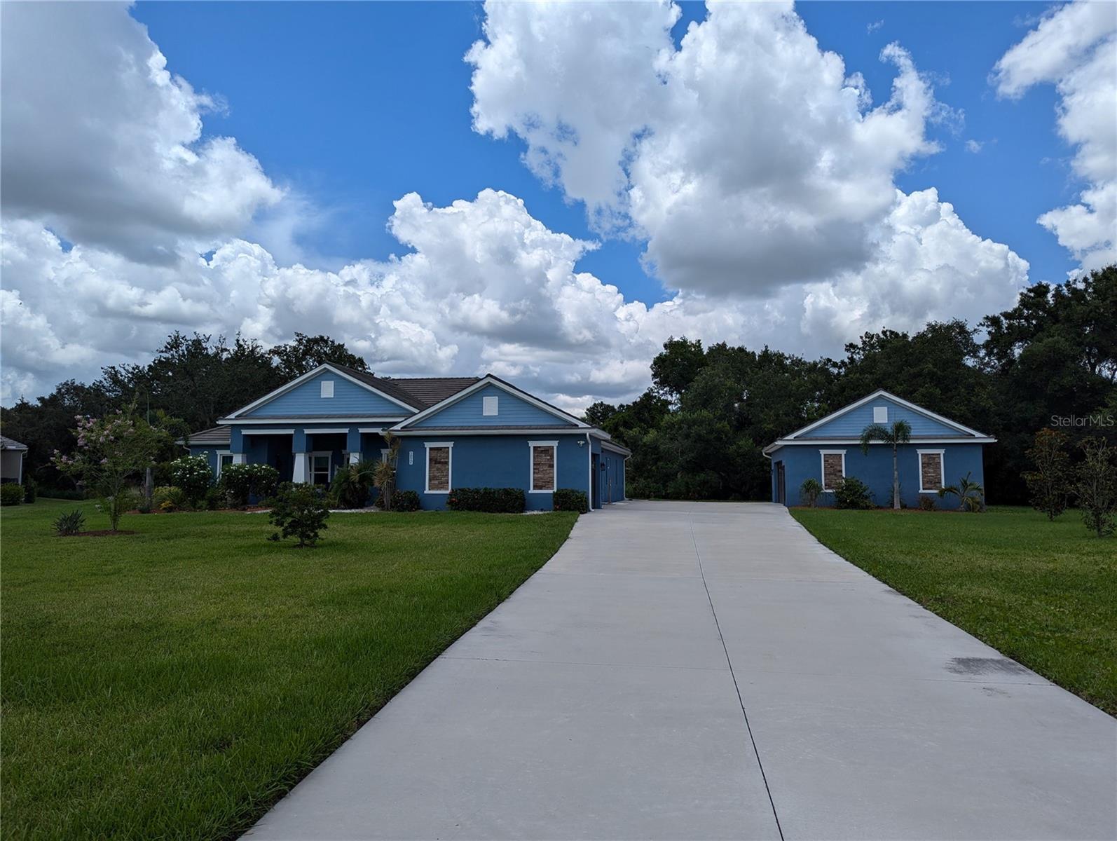 Car and Boat Enthusiasts - MOVE-IN Ready. This 4 bedroom, 3 bath custom home with a 3 car attached garage and an extra 30 x 30 detached garage and open floor plan is situated on a 1-acre cul-de-sac lot in the private gated community of Cypress Creek Estates. Detached garage is finished with sprayed insulation and a 12’ coved ceiling. Plenty of privacy and space built just over 3 years ago with 10-YEAR FLORIDA HOME WARRANTY. Kitchen backsplash and outdoor kitchen area ready for you to select and finish. House and sprinkler system is on a well and septic. NO WATER BILL and Low HOA. Lots of storage and upgrades: Tiled/concrete roof, sprayed Icynene attic insulation, insulated sprayed walls, Hurricane Impact Windows and doors, Granite countertops throughout the home, guest suite with private bathroom, large walk-in pantry with woodgrain shelving, extra large laundry room with storage and sink area. Master Bath has a walk-in shower with oversized double sink and 2 master walk-in closets, crown molding throughout living/kitchen/dining and Master Bedroom, speaker system in the living room, pest control system inside walls, long driveway for extra cars and guest parking, custom screened pool with pebble-tec / seated area/turtle in-lays in steps, paved patio area and front porch and sidewalk, LED lighting, tall countertops throughout, sliding glass doors that retract for open space. Sprinkler system throughout property with Beautiful oak tree in the backyard for a swing. Outdoor security lights, holiday lighting accessibility, Ring security camera ready for driveway. Extra garage frig is included. Close to local beaches with great schools and lots of shopping nearby. Close to I-75, Tampa and Sarasota airports, two boat ramps, and downtown Bradenton and Lakewood Ranch.