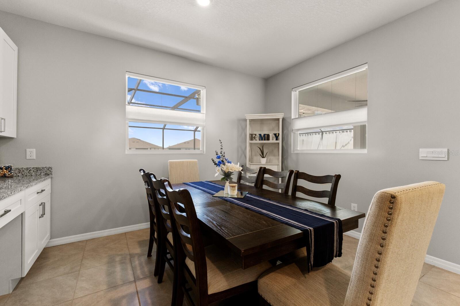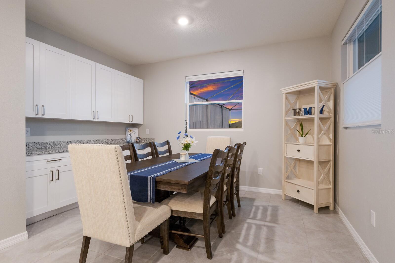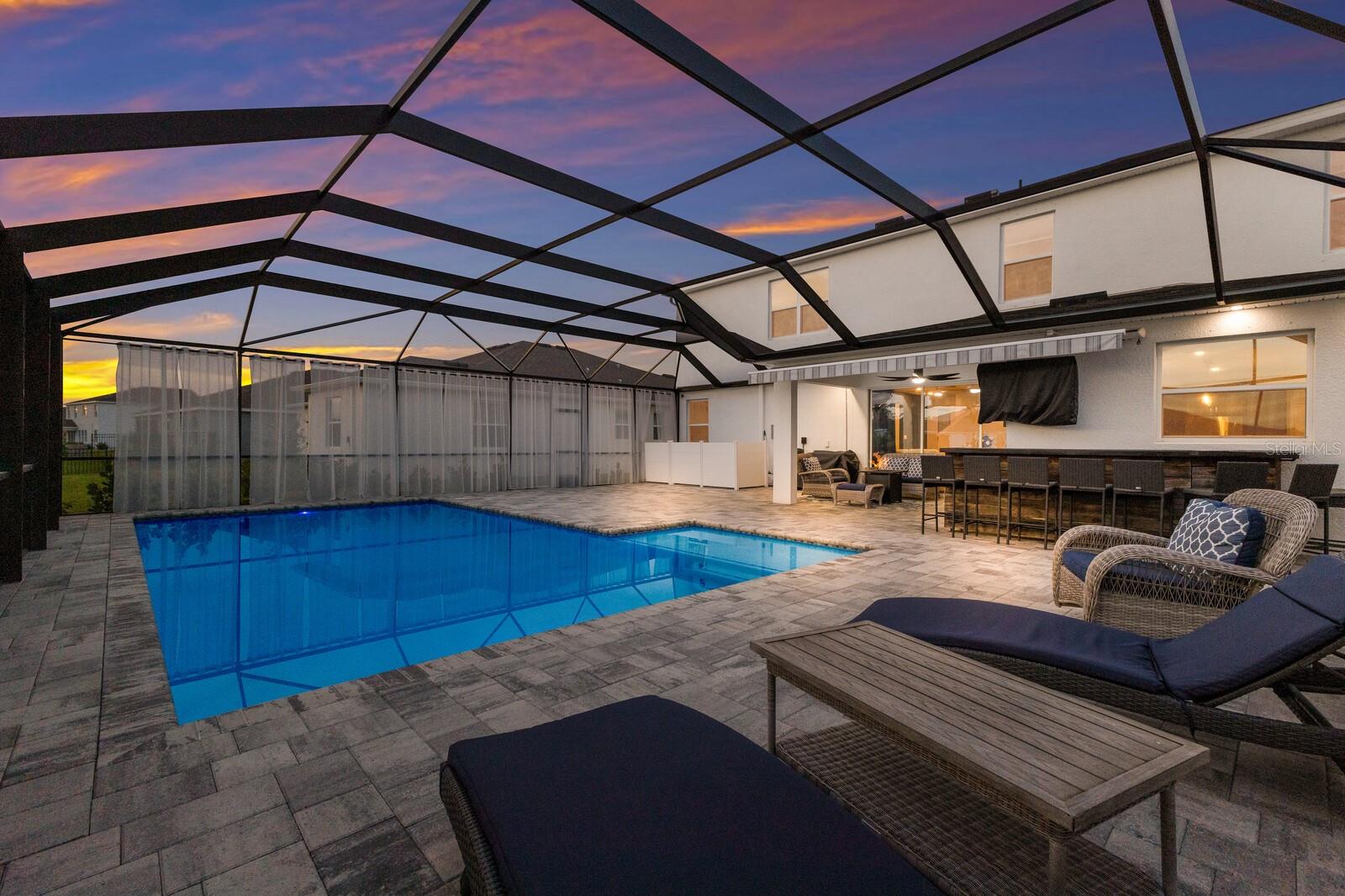 Seller is offering $10,000 CREDIT towards closing costs or interest rate buydown!!! ABSOLUTELY STUNNING and practically Brand New BEAUTIFUL home in the amazing community of Coddington!!! This STUNNING, 3,314 sq ft, Jordyn II model by DR Horton, features 5 bedrooms, 3 1/2 baths, bonus room, den and a spacious 3 car garage. Designed with an open floor plan, the main level boasts a seamless flow between the kitchen, dining room, and living room, perfect for modern living and entertaining. The gourmet kitchen is a chef's delight equipped with granite countertops and stainless steel appliances. It offers a delightful view of the dining area with a custom built in wet bar and cabinets with a view of the pool area. The living room provides BREATHTAKING views of the pool and the serene lake, creating a tranquil ambiance. Conveniently located on the main floor is a bedroom with a full bath, ideal for guests. Additionally, a versatile den can serve as an office space. Tile flooring throughout the downstairs adds to the home's elegance and ease of maintenance. Upstairs, discover 4 generously sized bedrooms and a BONUS room that can be transformed into an office or media room to suit your needs. The 5th bedroom, thoughtfully added by the owners, enhances the home's flexibility. The luxurious master suite features an ensuite bath complete with a walk-in shower, tub, and dual sinks, offering a private retreat for relaxation. Step outside to the screened-in lanai, where a custom 20x30 ft. heated, saltwater POOL awaits. The 40x50 ft. screened in cage ensures a spacious and comfortable outdoor experience. The outdoor bar, TV, and lighting make it the ultimate space for entertaining and to enjoy endless SUNSETS. Privacy curtains enhance the intimate atmosphere, making it perfect for gatherings or unwinding after a long day. This home is filled with thoughtful additions, including fans and TV mounts throughout, a trash platform and enhanced landscaping. The majority of the interior has been freshly painted, adding a modern touch. The laundry room has been upgraded with a new sink and cabinetry, providing extra storage and convenience. The quaint community of Coddington offers luxurious amenities including a pool, cabana, a flex lawn for events and a playground, ensuring there's something for everyone. This home is not just a place to live but a lifestyle to be enjoyed. Come and experience the unparalleled LUXURY and comfort of this EXQUISITE property in Coddington!! LOW annual HOA fees and A+ rated schools!! This home's location is outstanding providing close access to I-75, Sarasota/Bradenton Airport, Lakewood Ranch, downtown Sarasota/Bradenton, world-class shopping, fine dining and the FAMOUS GULF BEACHES!!!