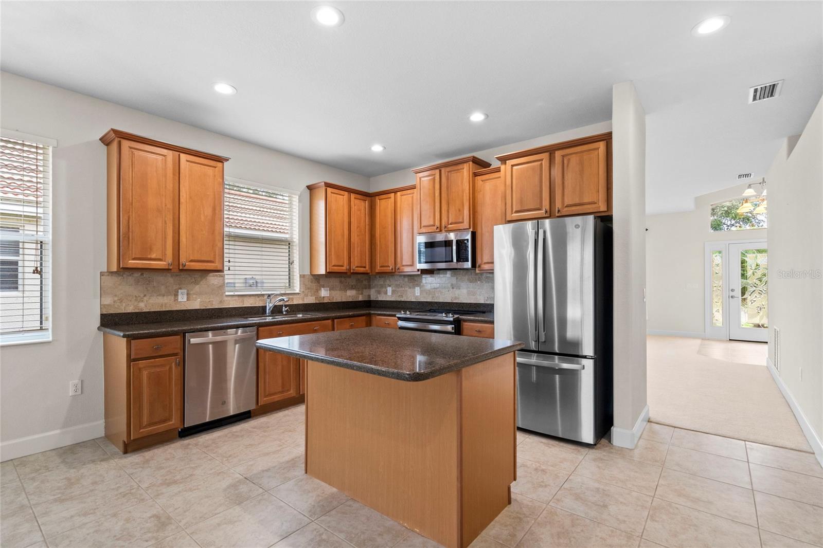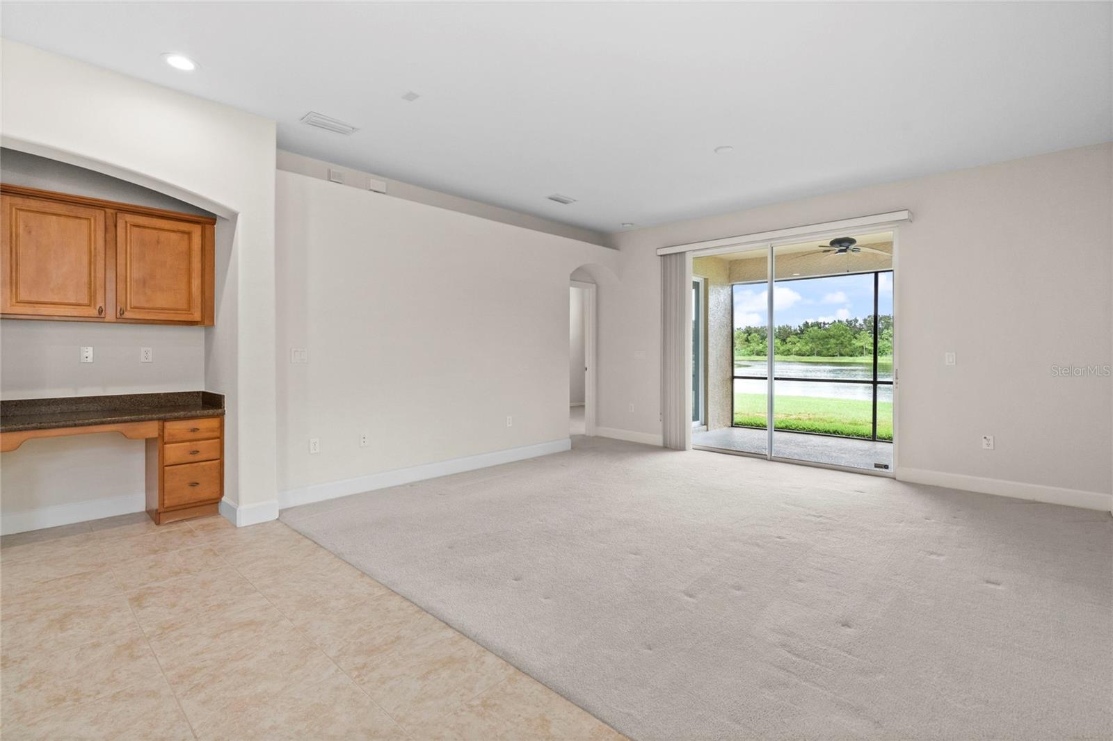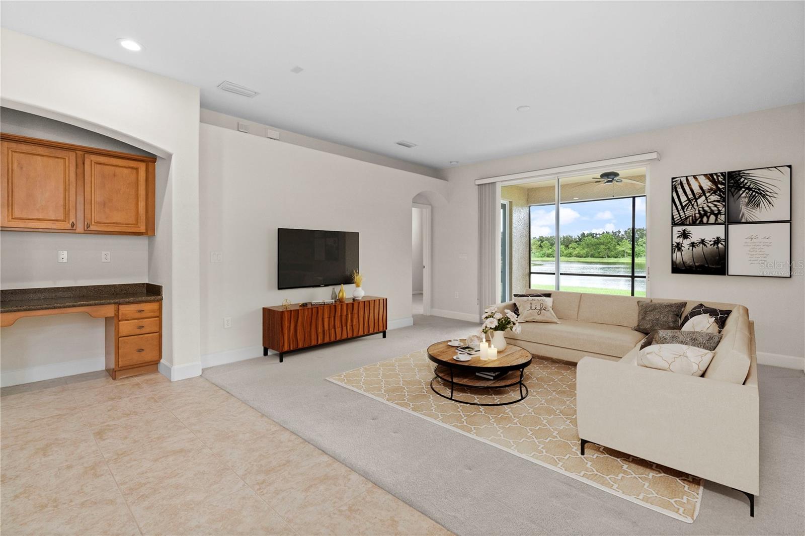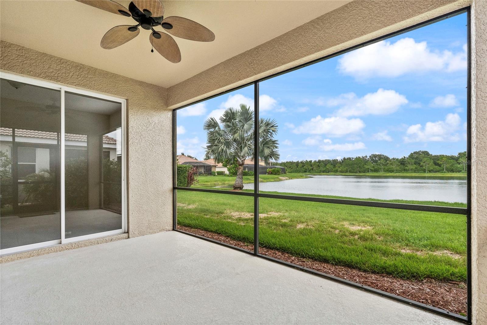 One or more photo(s) has been virtually staged. MOTIVATED SELLER. Additional PRICE IMPROVEMENT as well as $10K floor allowance. The GOLF DEEDED home boasts three bedrooms and two bathrooms as well as an office/den, providing ample room for comfortable living. The primary selling point is the stunning water view, which can be fully enjoyed by opening the sliding glass doors and stepping out onto the private lanai. The meticulously maintained interior showcases a spacious kitchen with granite countertops and GE stainless steel appliances, offering a seamless blend of form and function. The split floor plan ensures privacy for guests, while the primary suite includes a generously sized walk-in closet. Enhancing the home's appeal are features such as ceiling fans, hurricane shutters, and an irrigation system, ensuring both comfort and security. The added bonus of "golf included" provides residents with the opportunity to enjoy the 27-hole championship course designed by Arthur Hills. The resort-style community offers an array of impressive amenities, including a 39,000-square-foot Tuscan-inspired clubhouse, a bar and grill restaurant, card and billiard rooms, conference facilities, lighted tennis courts, pickleball courts, two fitness centers, a resort-style pool with a Tiki Bar, and multiple satellite pools. Cable TV, Wi-Fi, and internet are included in the homeowners' association fees. Conveniently located, this property offers easy access to I-75, Costco, airports, shopping, and world-renowned beaches.