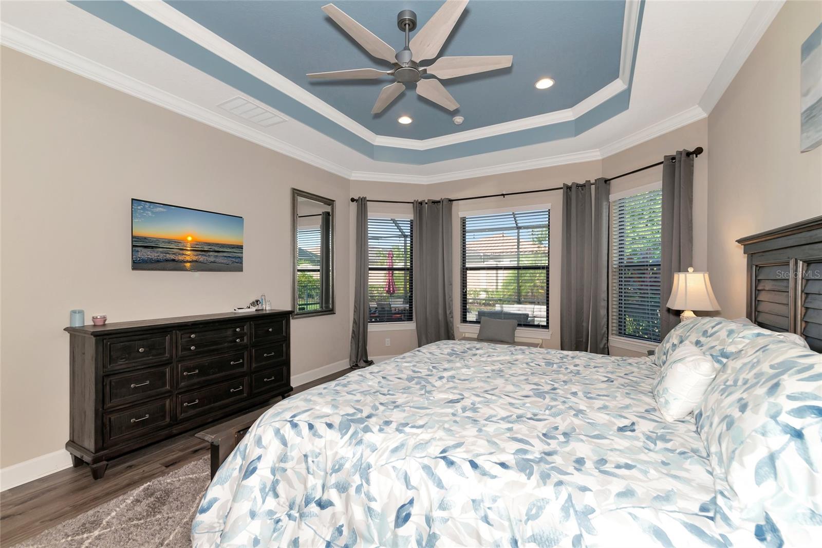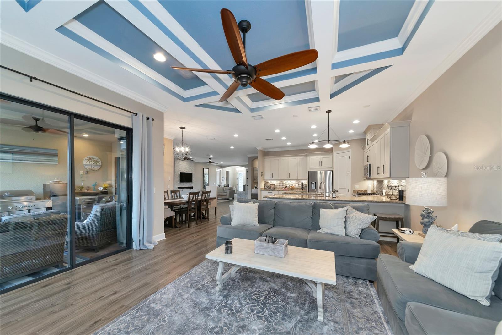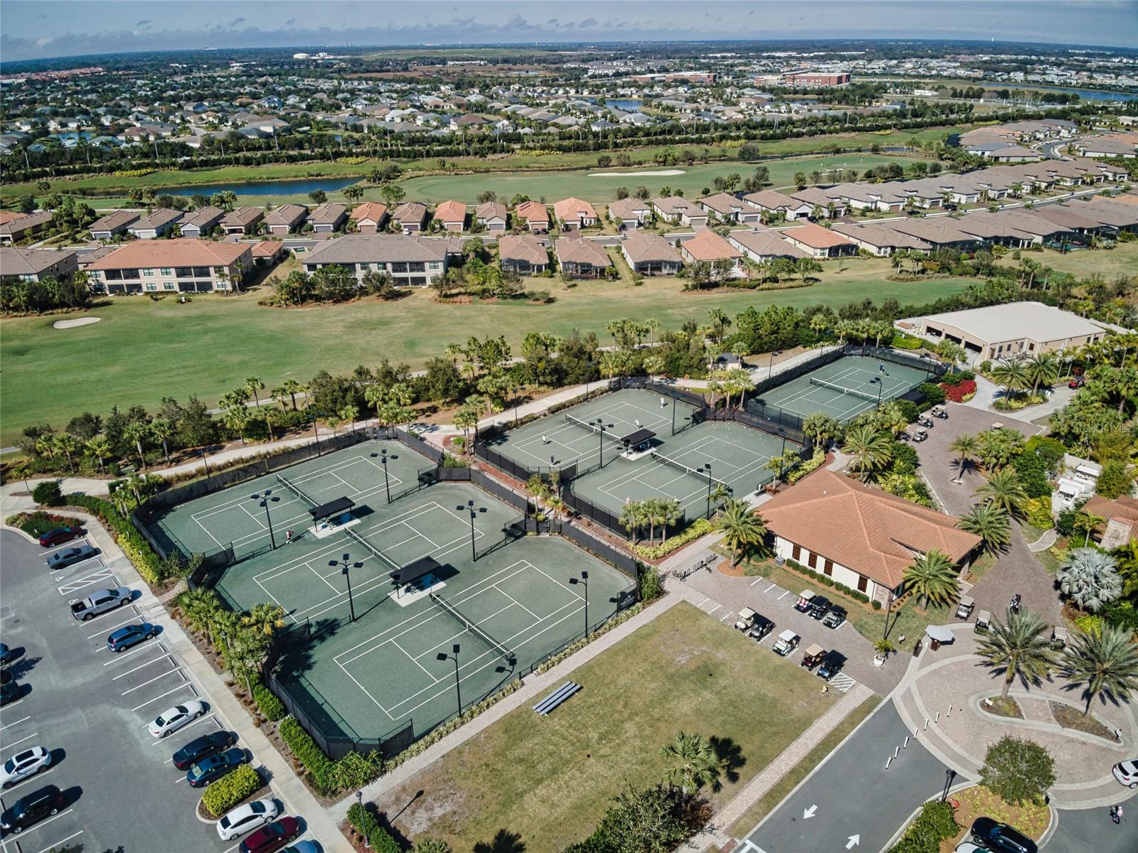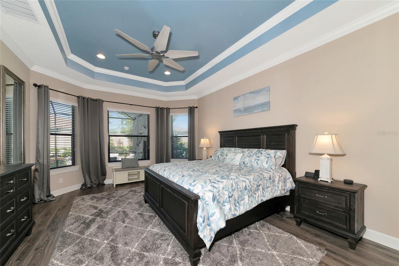 GOLF-DEEDED HOME! Furniture available on a separate Bill of Sale. Discover a life of elegance and recreation in the prestigious Esplanade Golf & Country Club with this magnificent Bella Casa model home by Taylor Morrison. From the moment you step through the grand entrance, you are greeted with an array of sophisticated features including coffered ceilings, towering 10 ft ceilings, and majestic 8 ft doors that establish an ambiance of refined style. Spanning nearly 3,000 square feet, this exquisite property offers three plush bedrooms and four luxurious baths, ensuring ample space and privacy for family and guests alike. The interior boasts stunning wood laminate flooring that complements the unique stone accent walls, adding a touch of rustic charm to the modern design. Each room is meticulously crafted to maximize comfort and aesthetic appeal. The home's functionality is matched by its recent upgrades, including a brand new HVAC system with a transferrable warranty, ensuring peace of mind and year-round comfort. Outside, the screened lanai with hurricane protection invites you to enjoy serene evenings or vibrant social gatherings, enhanced by tasteful outdoor lighting. Living in the Esplanade Golf & Country Club means more than just enjoying a beautiful home; it’s about embracing a lifestyle. The community offers a wide range of amenities that cater to all interests and ages. Whether you’re perfecting your swing on the golf course, engaging in a spirited game of pickleball or tennis, staying active in the state-of-the-art fitness center, or unwinding in the full-service spa, Esplanade has something to enrich every day. Socialize at the Bahama Bar, dive into resort-style pools, and explore culinary delights at the community center, all managed under the watchful eye of a dedicated lifestyle director. The gated community is nestled in a prime location within Lakewood Ranch, renowned for its "A" rated schools, picturesque walking trails, abundant shopping, and top-tier restaurants. Moreover, the proximity to stunning area beaches offers the perfect escape on sun-filled afternoons. This home isn’t just a place to live—it's a gateway to a lifestyle of luxury, convenience, and endless enjoyment. Embrace the opportunity to make it yours and experience the pinnacle of Florida living.