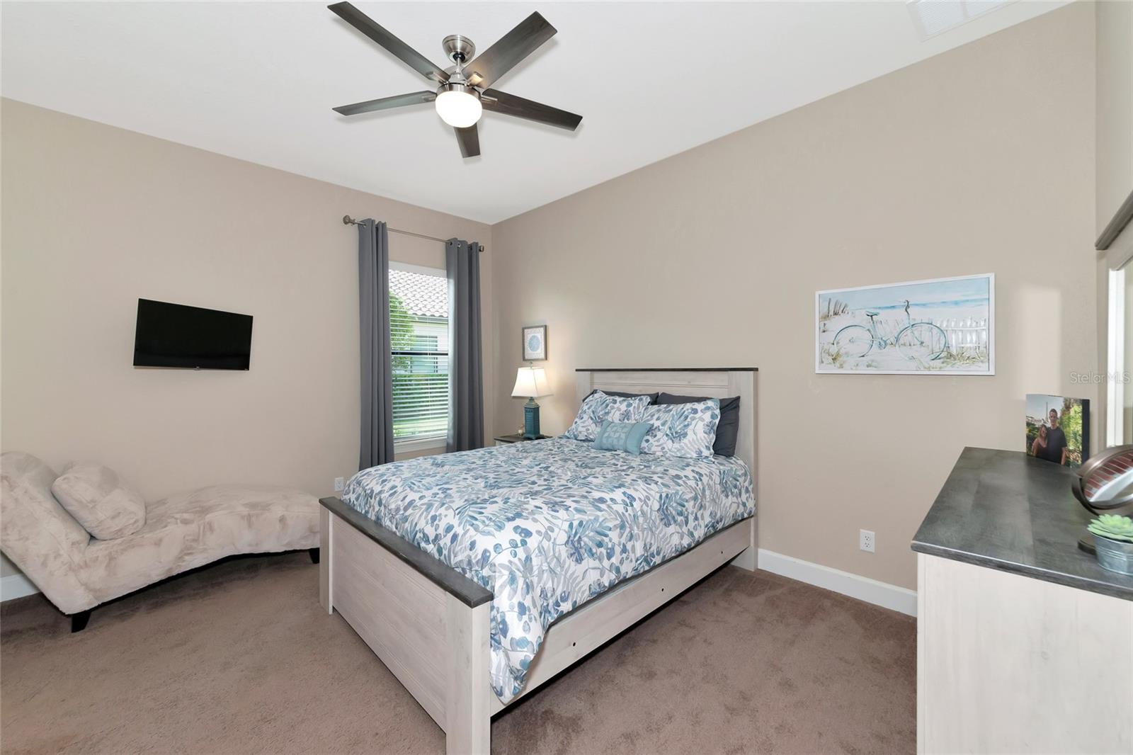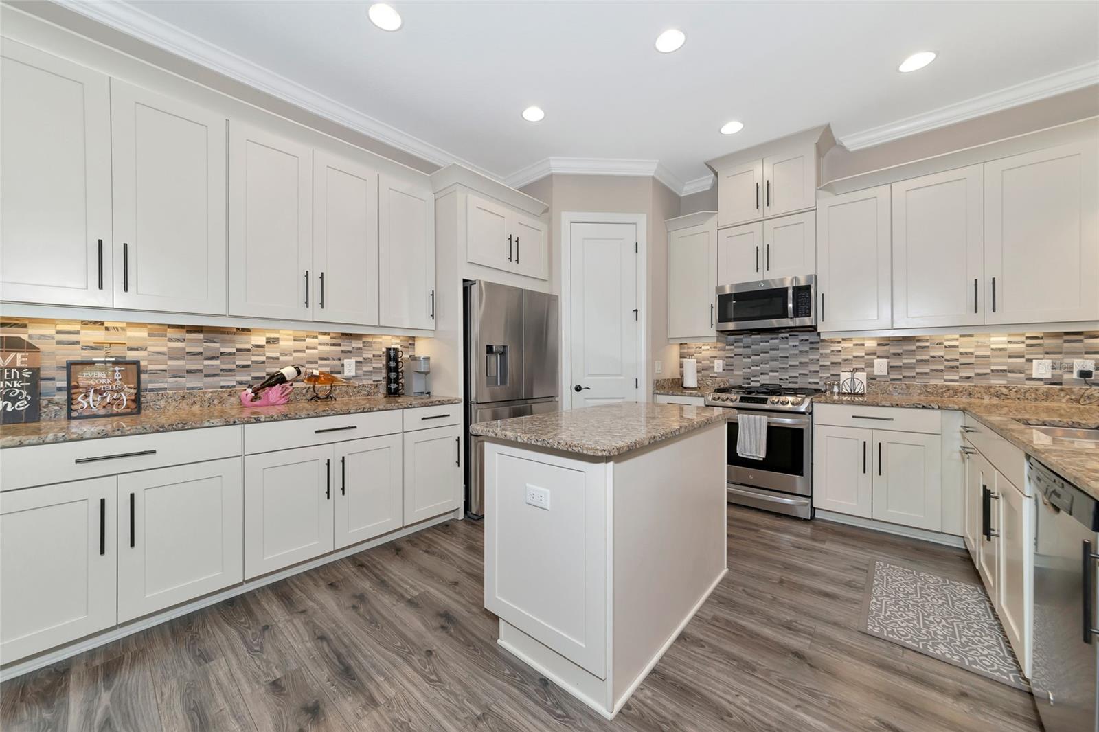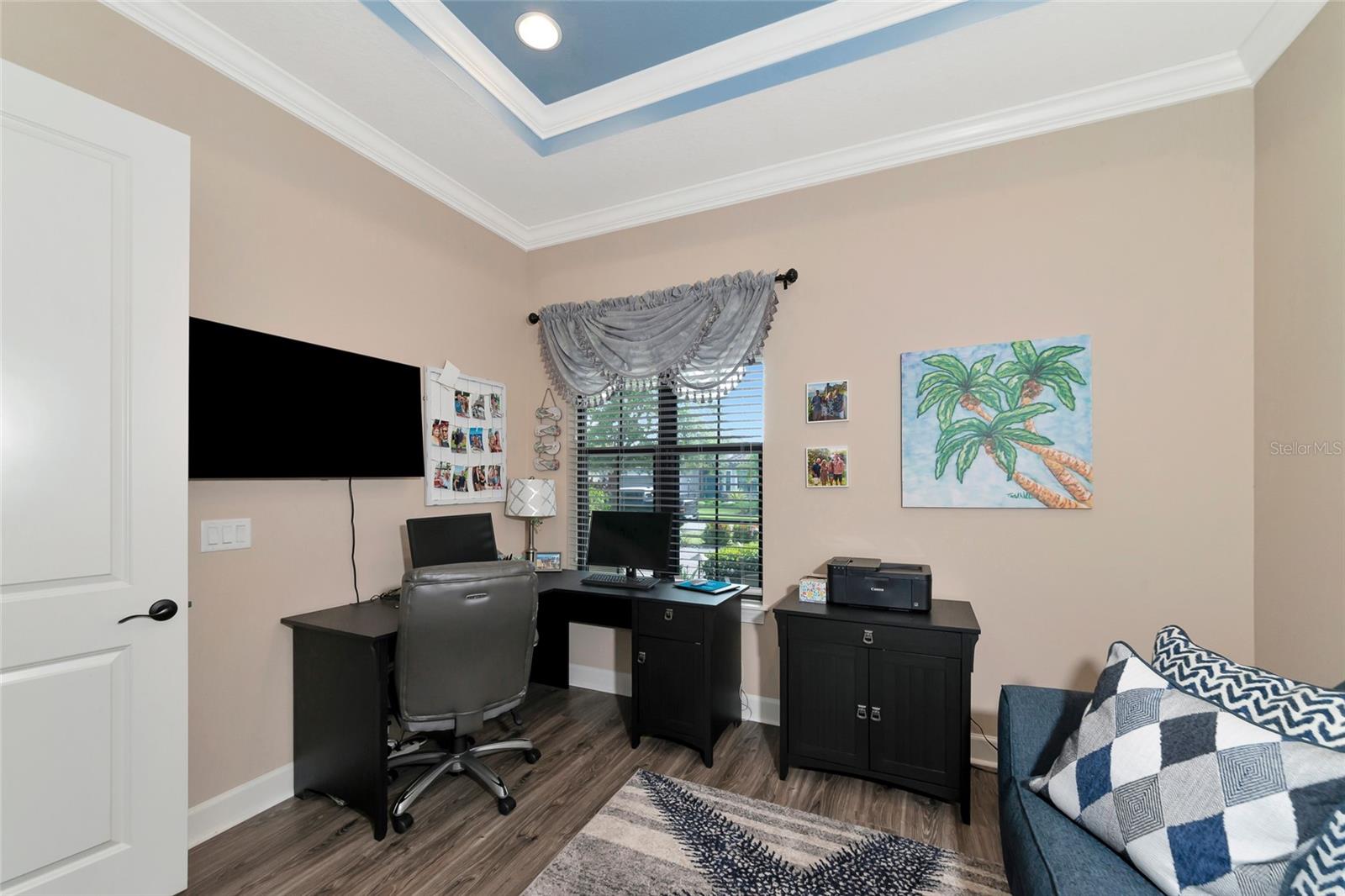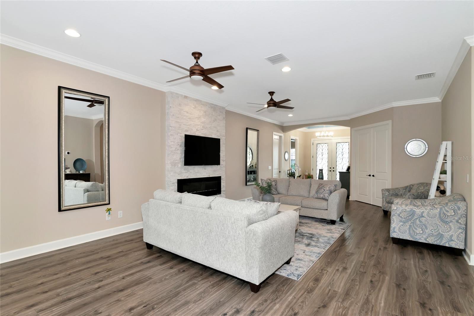 GOLF-DEEDED HOME! Furniture available on a separate Bill of Sale. Discover a life of elegance and recreation in the prestigious Esplanade Golf & Country Club with this magnificent Bella Casa model home by Taylor Morrison. From the moment you step through the grand entrance, you are greeted with an array of sophisticated features including coffered ceilings, towering 10 ft ceilings, and majestic 8 ft doors that establish an ambiance of refined style. Spanning nearly 3,000 square feet, this exquisite property offers three plush bedrooms and four luxurious baths, ensuring ample space and privacy for family and guests alike. The interior boasts stunning wood laminate flooring that complements the unique stone accent walls, adding a touch of rustic charm to the modern design. Each room is meticulously crafted to maximize comfort and aesthetic appeal. The home's functionality is matched by its recent upgrades, including a brand new HVAC system with a transferrable warranty, ensuring peace of mind and year-round comfort. Outside, the screened lanai with hurricane protection invites you to enjoy serene evenings or vibrant social gatherings, enhanced by tasteful outdoor lighting. Living in the Esplanade Golf & Country Club means more than just enjoying a beautiful home; it’s about embracing a lifestyle. The community offers a wide range of amenities that cater to all interests and ages. Whether you’re perfecting your swing on the golf course, engaging in a spirited game of pickleball or tennis, staying active in the state-of-the-art fitness center, or unwinding in the full-service spa, Esplanade has something to enrich every day. Socialize at the Bahama Bar, dive into resort-style pools, and explore culinary delights at the community center, all managed under the watchful eye of a dedicated lifestyle director. The gated community is nestled in a prime location within Lakewood Ranch, renowned for its "A" rated schools, picturesque walking trails, abundant shopping, and top-tier restaurants. Moreover, the proximity to stunning area beaches offers the perfect escape on sun-filled afternoons. This home isn’t just a place to live—it's a gateway to a lifestyle of luxury, convenience, and endless enjoyment. Embrace the opportunity to make it yours and experience the pinnacle of Florida living.