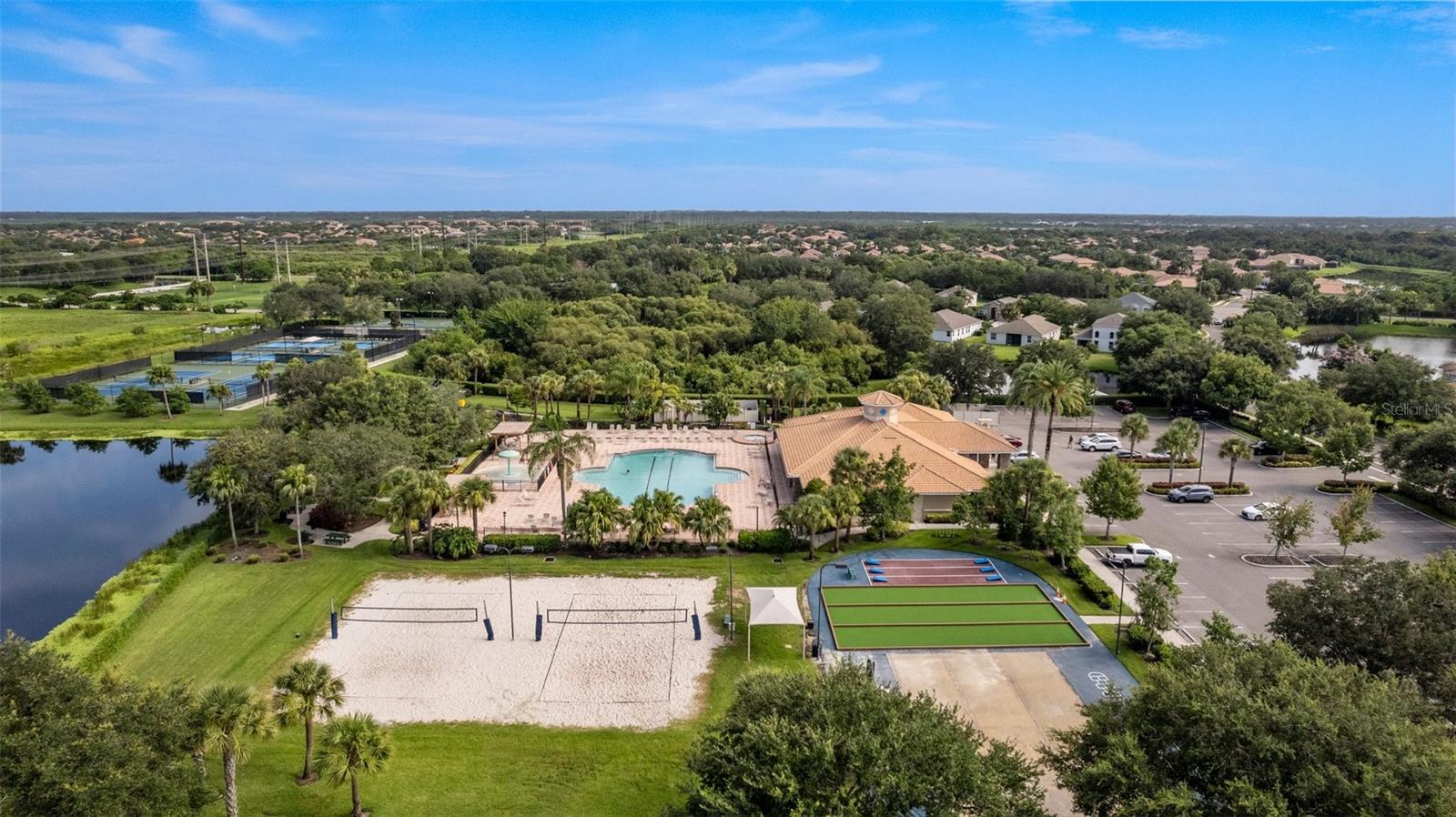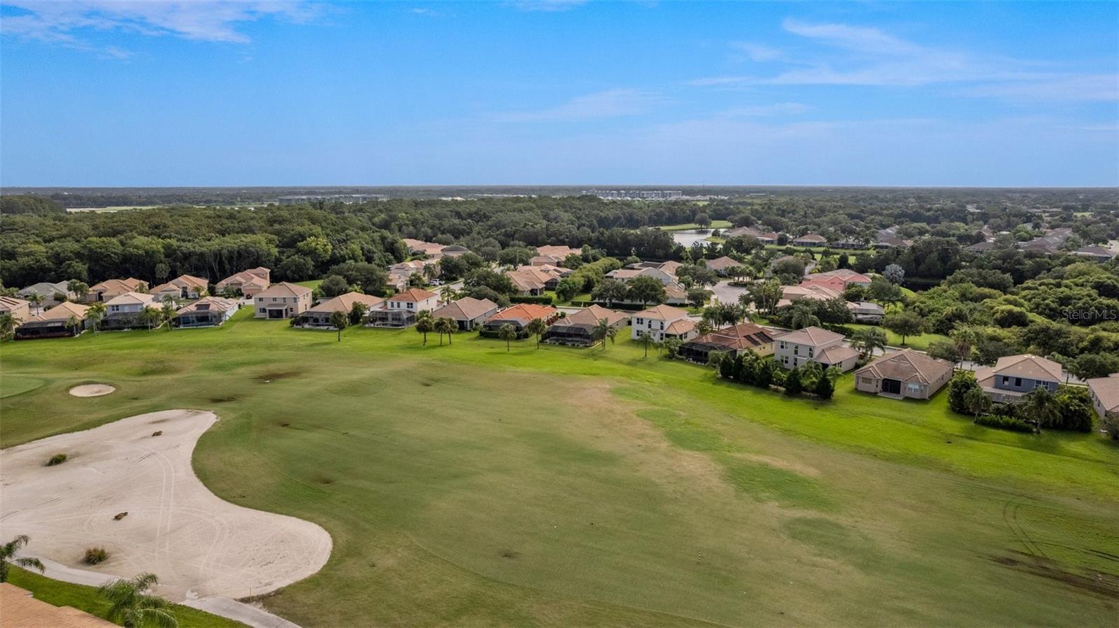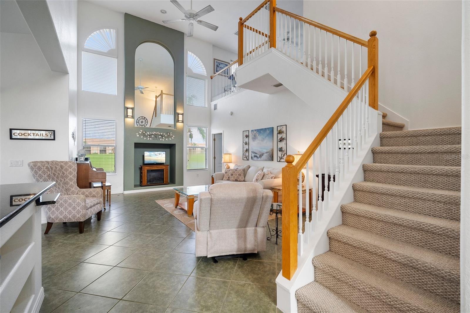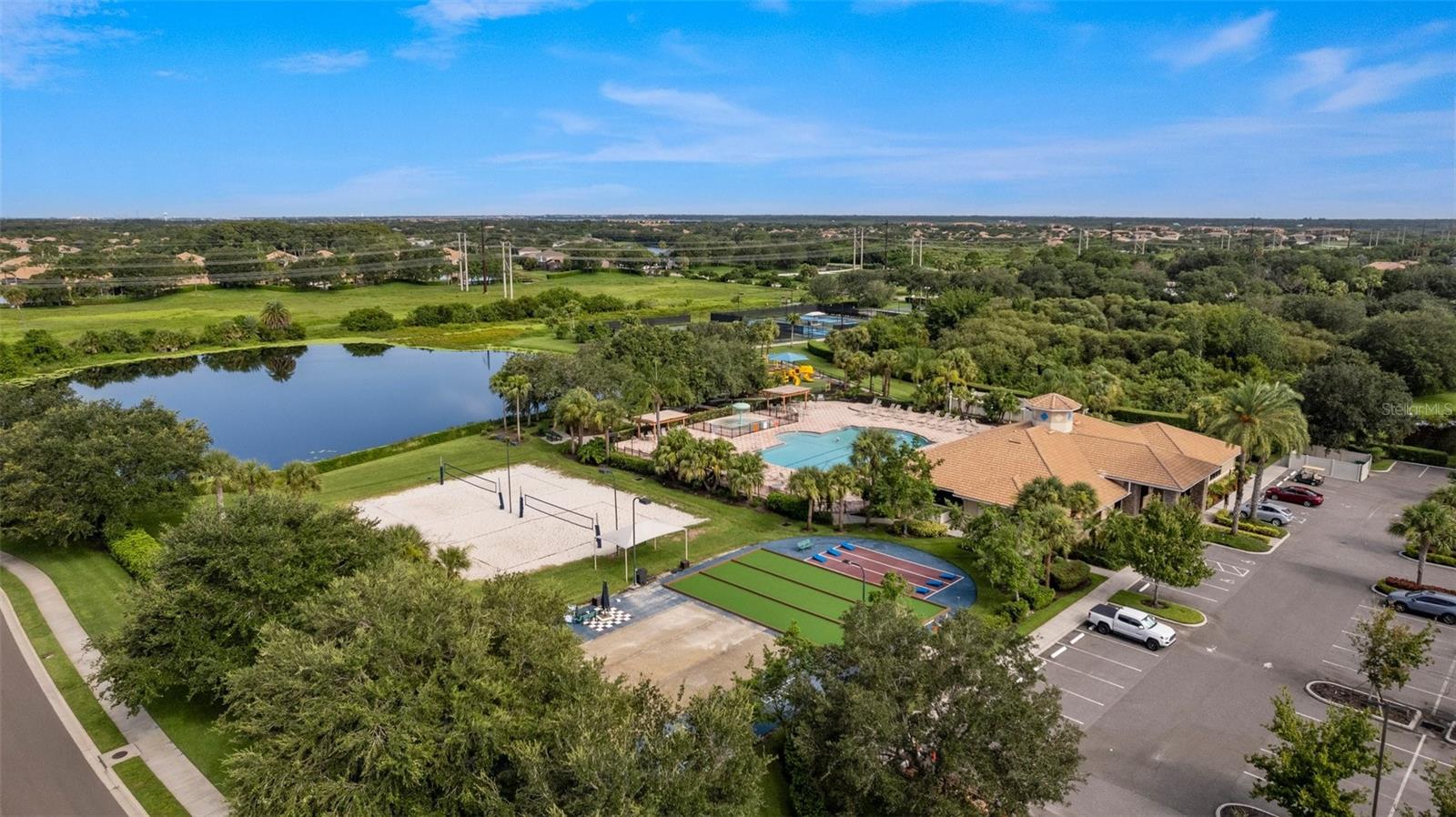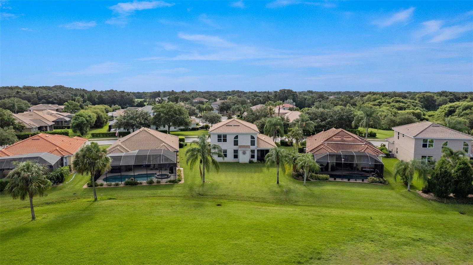 Your home awaits you in Stoneybrook, a beautiful golf community. You will love this three bedroom, two and a half bath with the primary bedroom and laundry room on the first floor. This home, with a barrel tile roof and hurricane shutters, has an open floor plan with custom tile layed at a diagonal in the gathering spaces. As you walk in the front door, you are met with a generous great room and high ceilings. There are plenty of places to eat, as the home is fit with a formal dining room, breakfast nook, and breakfast bar. The kitchen is adorned with ample cabinets, granite countertops, new stainless steel appliances (including a gas stove, double oven, wine fridge, main fridge with a glass door, and freezer that creates craft ice balls). The kitchen also includes a pantry for extra storage and opens up to the breakfast nook adjacent to the sliders that lead to the covered and screened lanai and a gorgeous golf course view. Note that this side of the golf course does not have the golf cart path for extra privacy. Main bedroom has crown molding, his and hers walk-in closets, and an en-suite bathroom. The primary bathroom has a separate tub and shower combo, dual vanities, and a separate water closet. There is a 2 year old state of the art $17,000 HVAC system that saves owner $200 per month. Never had a bill over $218 and they keep it at 73 degrees! Upstairs you will find a bonus/flex room and two guest bedrooms. Thinking of adding a pool? There is more than enough room here! Live like you are on vacation all year round with an 18-hole championship golf course, restaurant, active golf club and recreation center, 2 resort style heated pool and one has a spa, fitness center, tennis, pickleball, basketball, volleyball, shuffleboard, bocci ball, lake with a fishing pier, playgrounds, picnic area, dog parks, and more! Coming soon to the area: Seasons 52, Hobby Lobby, and Whole Foods!