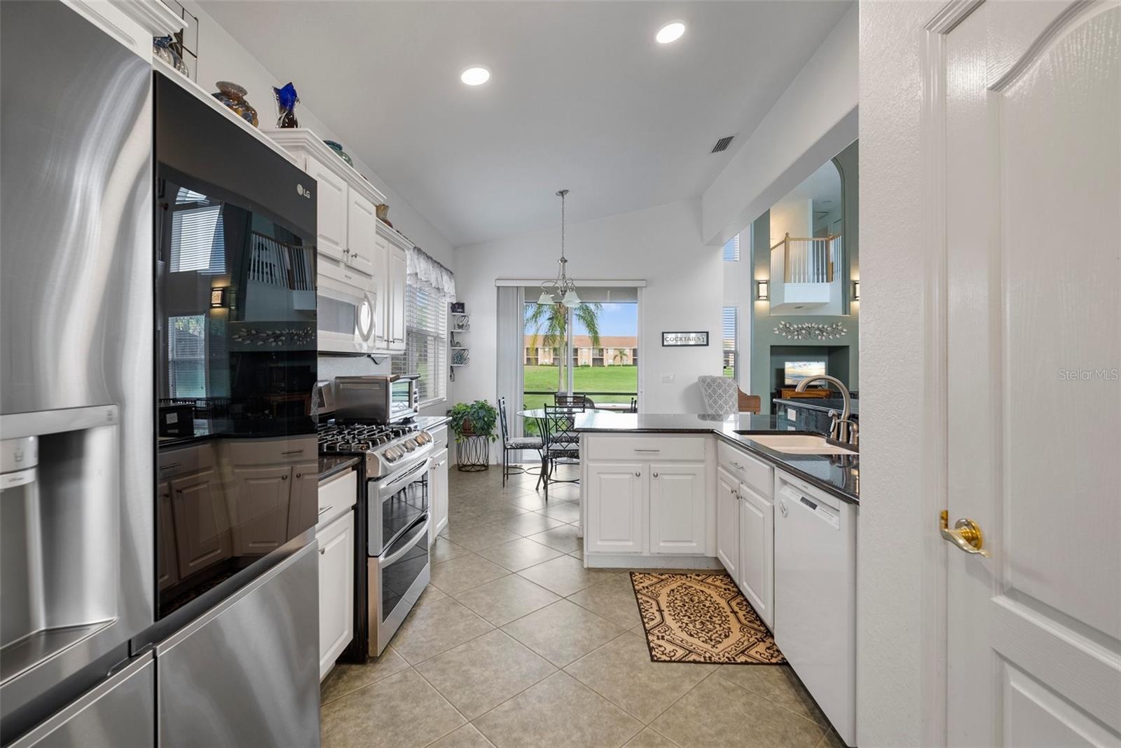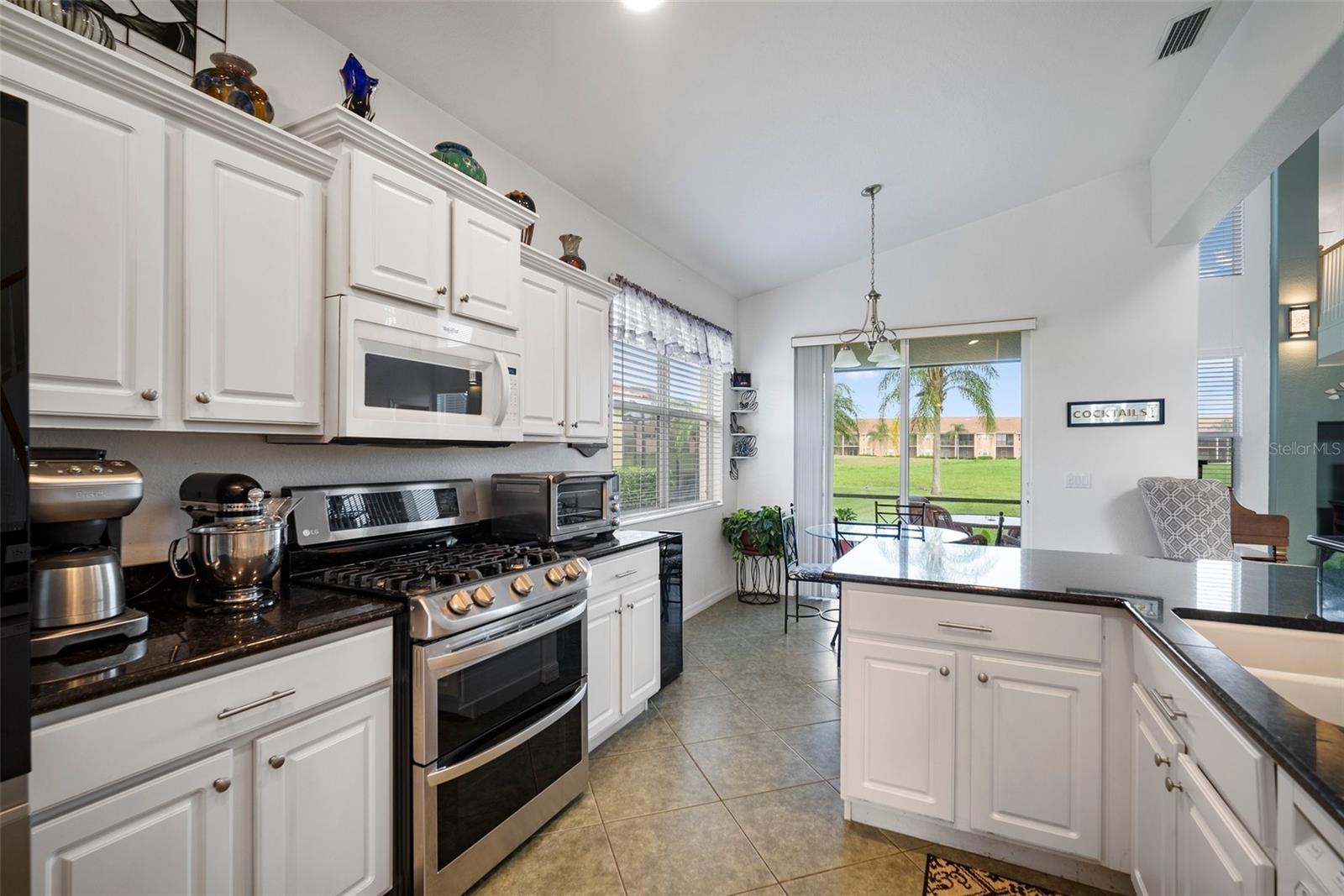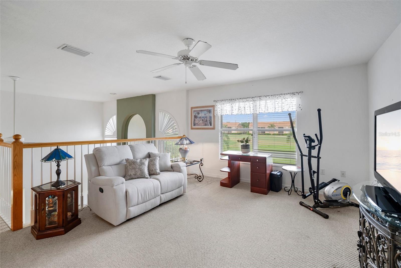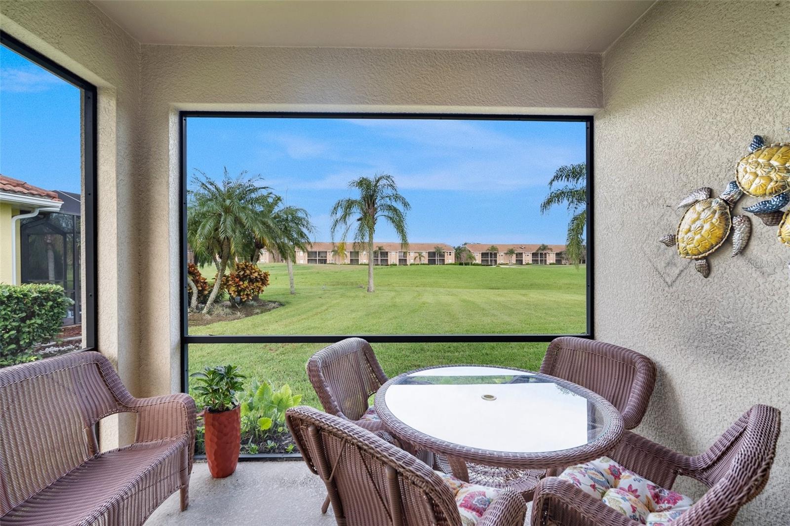 Your home awaits you in Stoneybrook, a beautiful golf community. You will love this three bedroom, two and a half bath with the primary bedroom and laundry room on the first floor. This home, with a barrel tile roof and hurricane shutters, has an open floor plan with custom tile layed at a diagonal in the gathering spaces. As you walk in the front door, you are met with a generous great room and high ceilings. There are plenty of places to eat, as the home is fit with a formal dining room, breakfast nook, and breakfast bar. The kitchen is adorned with ample cabinets, granite countertops, new stainless steel appliances (including a gas stove, double oven, wine fridge, main fridge with a glass door, and freezer that creates craft ice balls). The kitchen also includes a pantry for extra storage and opens up to the breakfast nook adjacent to the sliders that lead to the covered and screened lanai and a gorgeous golf course view. Note that this side of the golf course does not have the golf cart path for extra privacy. Main bedroom has crown molding, his and hers walk-in closets, and an en-suite bathroom. The primary bathroom has a separate tub and shower combo, dual vanities, and a separate water closet. There is a 2 year old state of the art $17,000 HVAC system that saves owner $200 per month. Never had a bill over $218 and they keep it at 73 degrees! Upstairs you will find a bonus/flex room and two guest bedrooms. Thinking of adding a pool? There is more than enough room here! Live like you are on vacation all year round with an 18-hole championship golf course, restaurant, active golf club and recreation center, 2 resort style heated pool and one has a spa, fitness center, tennis, pickleball, basketball, volleyball, shuffleboard, bocci ball, lake with a fishing pier, playgrounds, picnic area, dog parks, and more! Coming soon to the area: Seasons 52, Hobby Lobby, and Whole Foods!