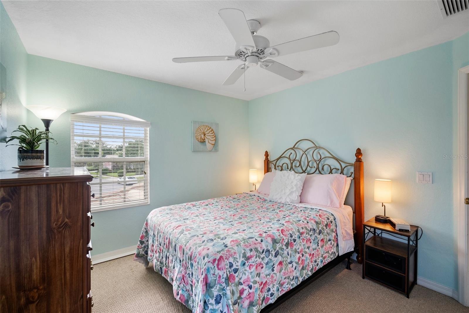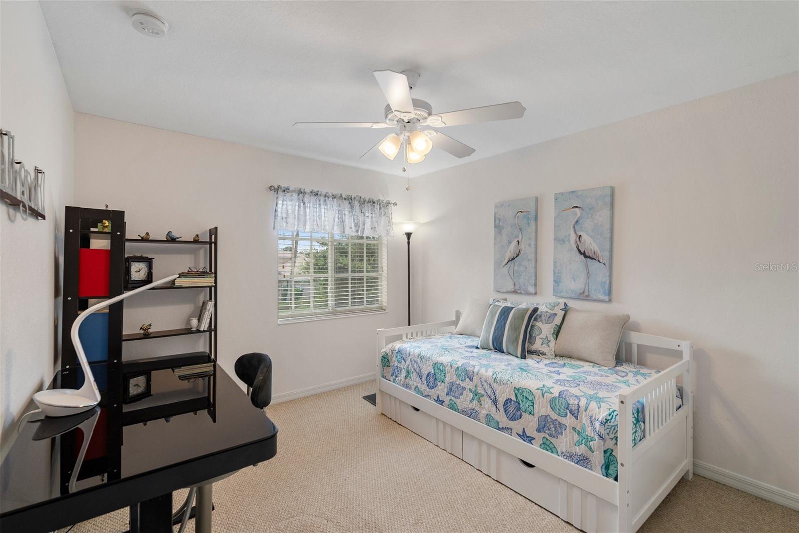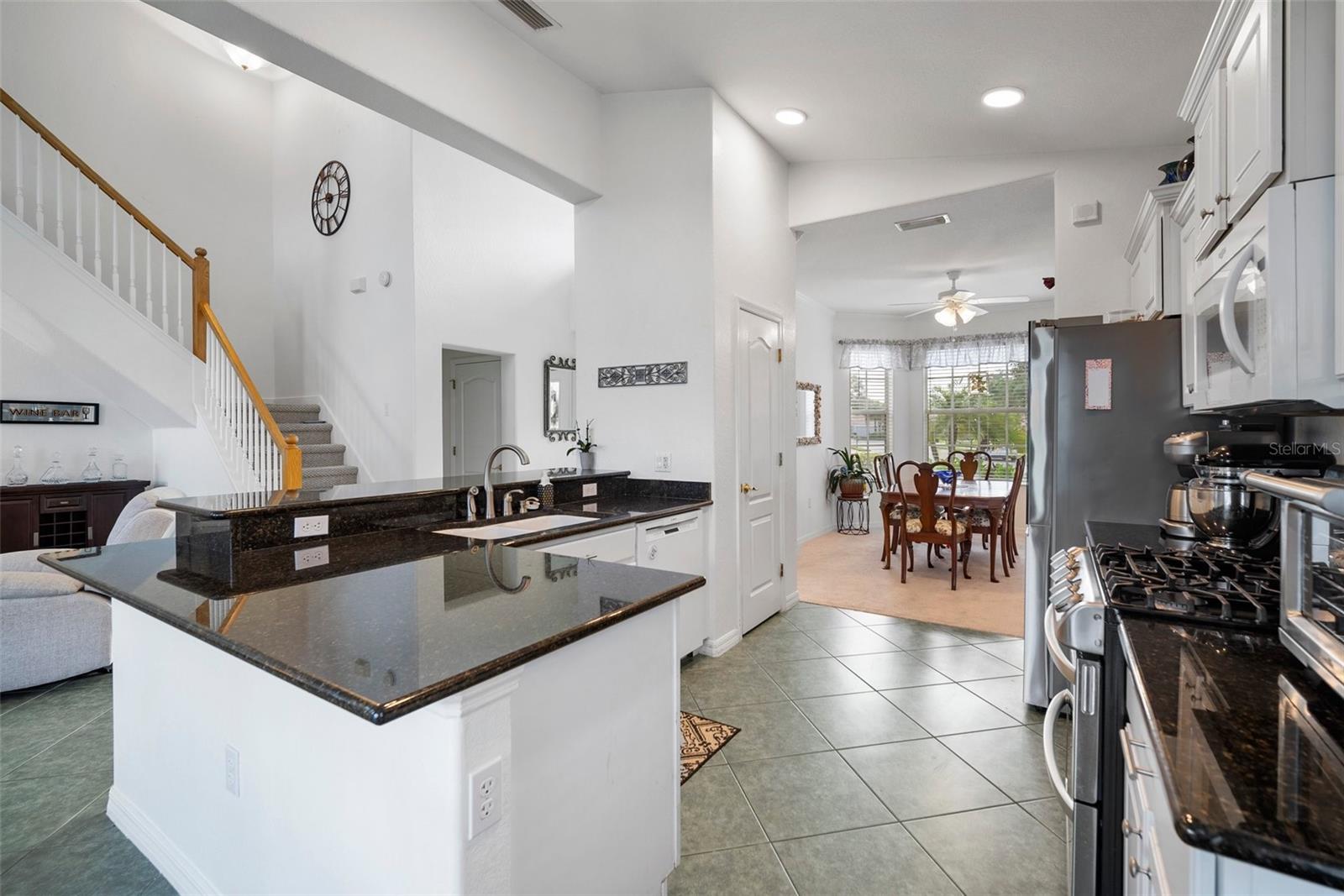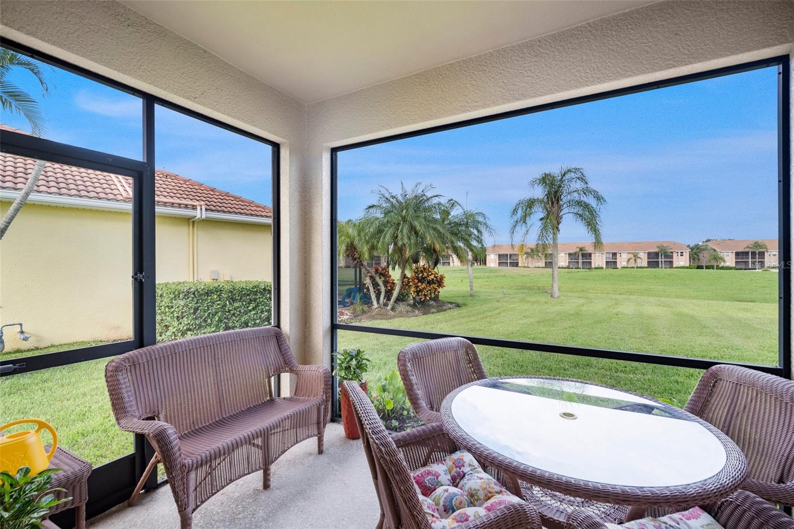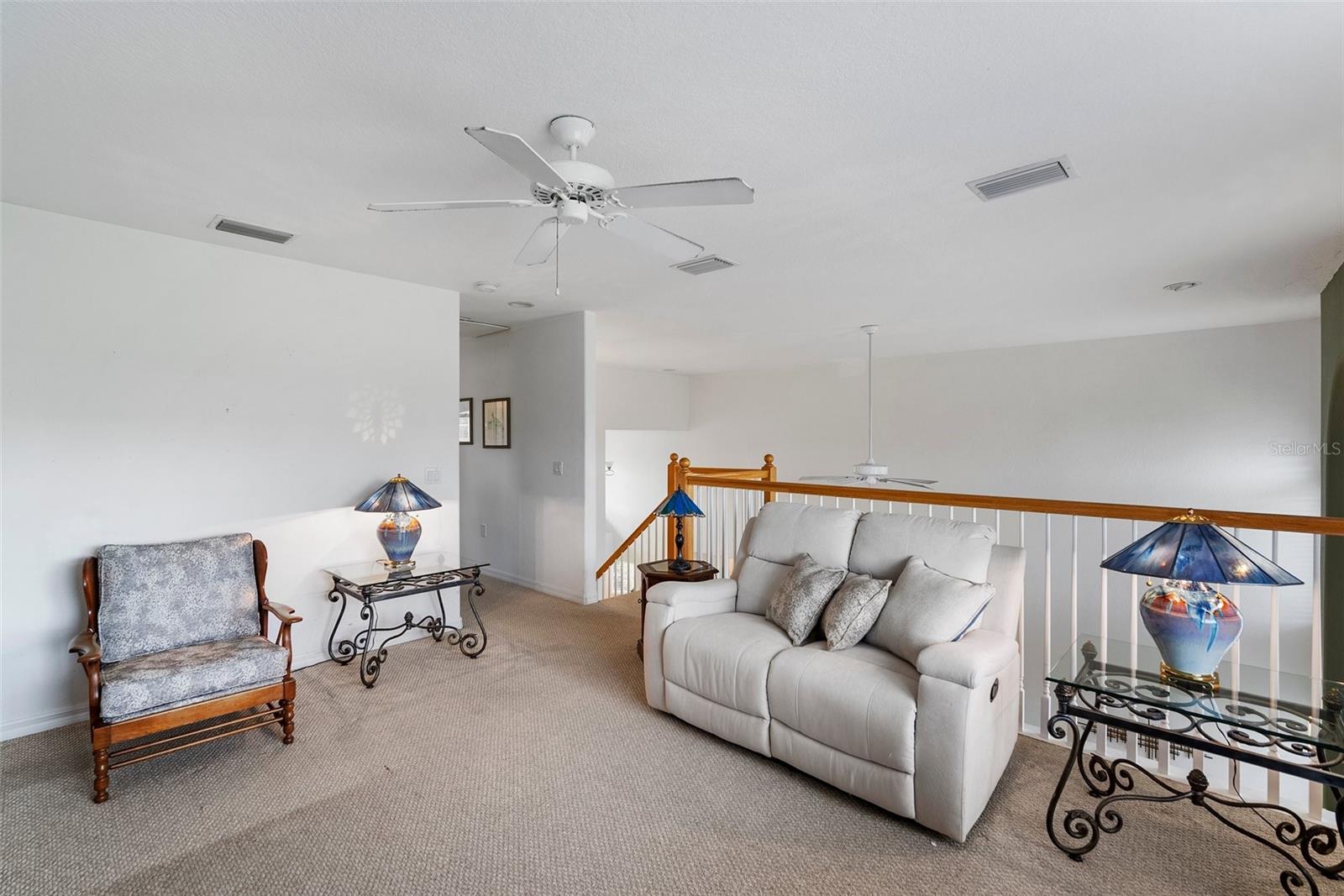 Your home awaits you in Stoneybrook, a beautiful golf community. You will love this three bedroom, two and a half bath with the primary bedroom and laundry room on the first floor. This home, with a barrel tile roof and hurricane shutters, has an open floor plan with custom tile layed at a diagonal in the gathering spaces. As you walk in the front door, you are met with a generous great room and high ceilings. There are plenty of places to eat, as the home is fit with a formal dining room, breakfast nook, and breakfast bar. The kitchen is adorned with ample cabinets, granite countertops, new stainless steel appliances (including a gas stove, double oven, wine fridge, main fridge with a glass door, and freezer that creates craft ice balls). The kitchen also includes a pantry for extra storage and opens up to the breakfast nook adjacent to the sliders that lead to the covered and screened lanai and a gorgeous golf course view. Note that this side of the golf course does not have the golf cart path for extra privacy. Main bedroom has crown molding, his and hers walk-in closets, and an en-suite bathroom. The primary bathroom has a separate tub and shower combo, dual vanities, and a separate water closet. There is a 2 year old state of the art $17,000 HVAC system that saves owner $200 per month. Never had a bill over $218 and they keep it at 73 degrees! Upstairs you will find a bonus/flex room and two guest bedrooms. Thinking of adding a pool? There is more than enough room here! Live like you are on vacation all year round with an 18-hole championship golf course, restaurant, active golf club and recreation center, 2 resort style heated pool and one has a spa, fitness center, tennis, pickleball, basketball, volleyball, shuffleboard, bocci ball, lake with a fishing pier, playgrounds, picnic area, dog parks, and more! Coming soon to the area: Seasons 52, Hobby Lobby, and Whole Foods!