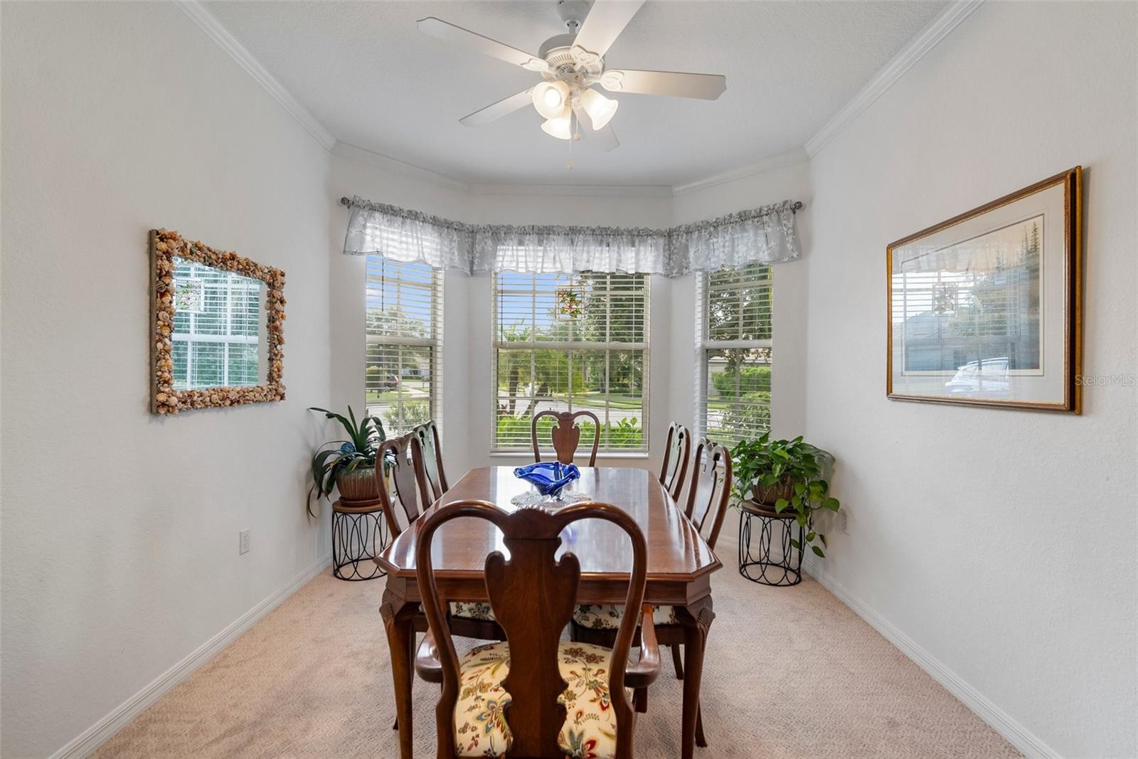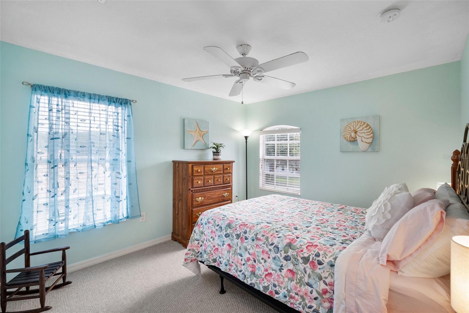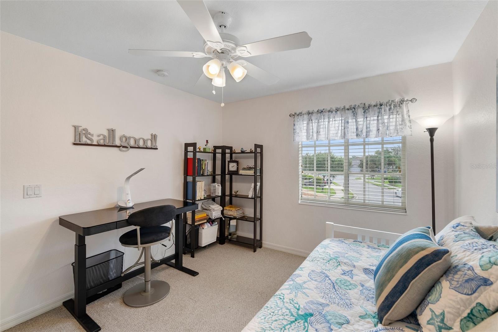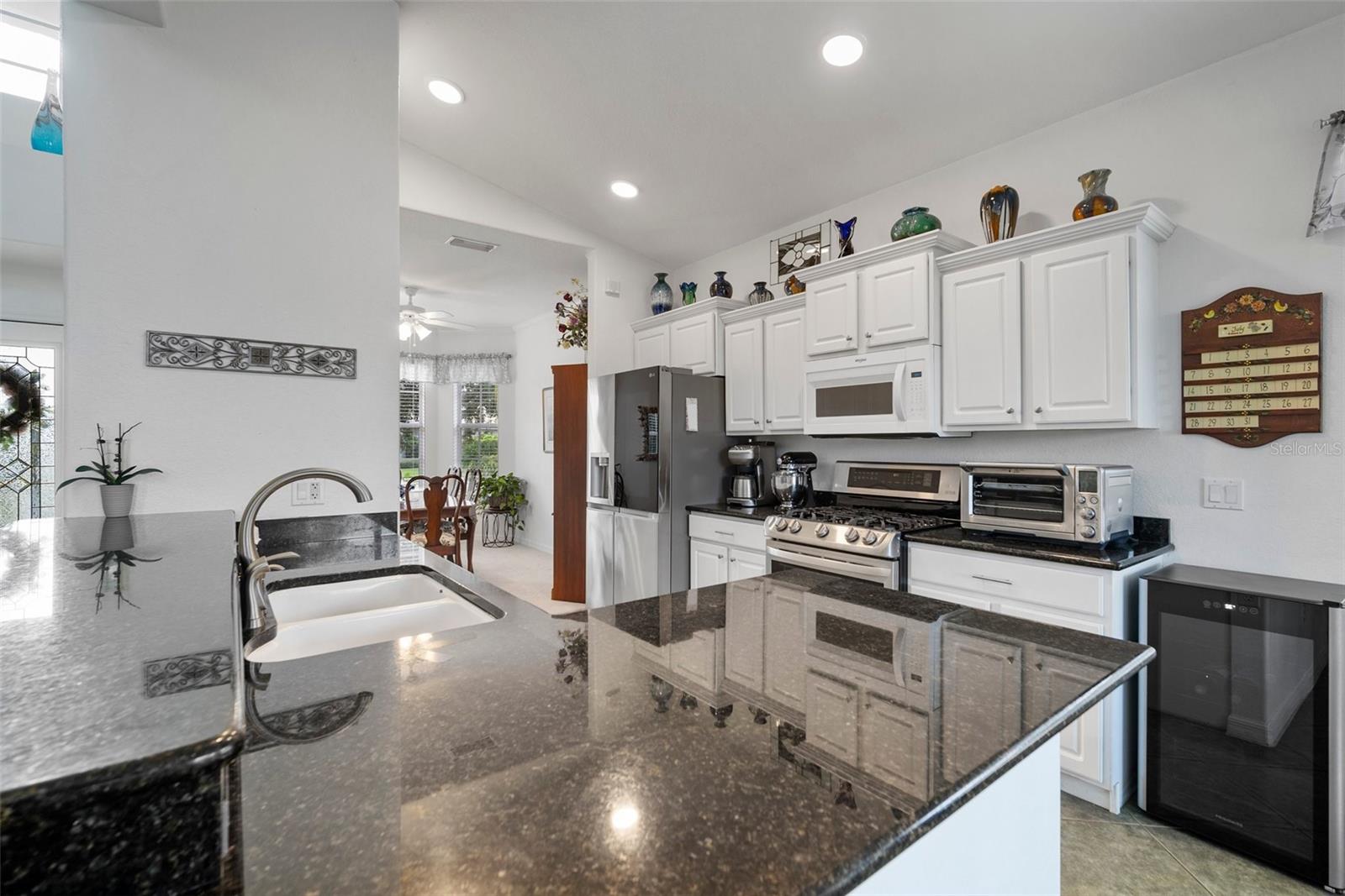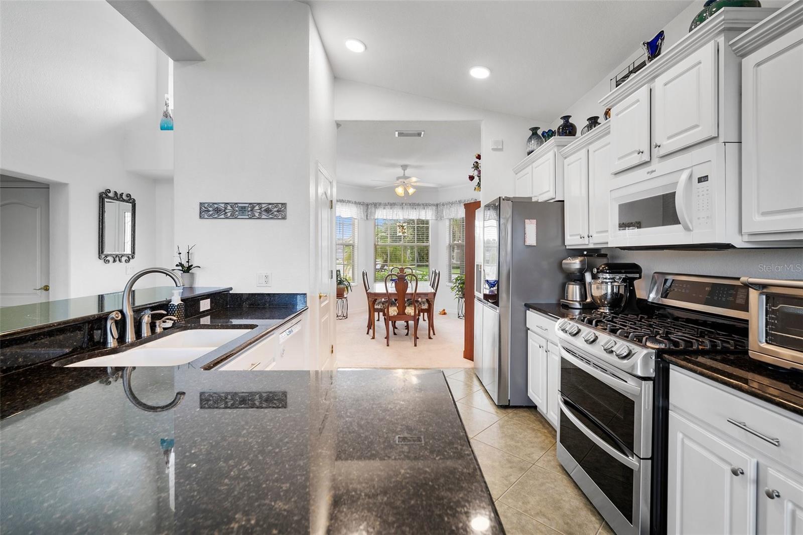 Your home awaits you in Stoneybrook, a beautiful golf community. You will love this three bedroom, two and a half bath with the primary bedroom and laundry room on the first floor. This home, with a barrel tile roof and hurricane shutters, has an open floor plan with custom tile layed at a diagonal in the gathering spaces. As you walk in the front door, you are met with a generous great room and high ceilings. There are plenty of places to eat, as the home is fit with a formal dining room, breakfast nook, and breakfast bar. The kitchen is adorned with ample cabinets, granite countertops, new stainless steel appliances (including a gas stove, double oven, wine fridge, main fridge with a glass door, and freezer that creates craft ice balls). The kitchen also includes a pantry for extra storage and opens up to the breakfast nook adjacent to the sliders that lead to the covered and screened lanai and a gorgeous golf course view. Note that this side of the golf course does not have the golf cart path for extra privacy. Main bedroom has crown molding, his and hers walk-in closets, and an en-suite bathroom. The primary bathroom has a separate tub and shower combo, dual vanities, and a separate water closet. There is a 2 year old state of the art $17,000 HVAC system that saves owner $200 per month. Never had a bill over $218 and they keep it at 73 degrees! Upstairs you will find a bonus/flex room and two guest bedrooms. Thinking of adding a pool? There is more than enough room here! Live like you are on vacation all year round with an 18-hole championship golf course, restaurant, active golf club and recreation center, 2 resort style heated pool and one has a spa, fitness center, tennis, pickleball, basketball, volleyball, shuffleboard, bocci ball, lake with a fishing pier, playgrounds, picnic area, dog parks, and more! Coming soon to the area: Seasons 52, Hobby Lobby, and Whole Foods!