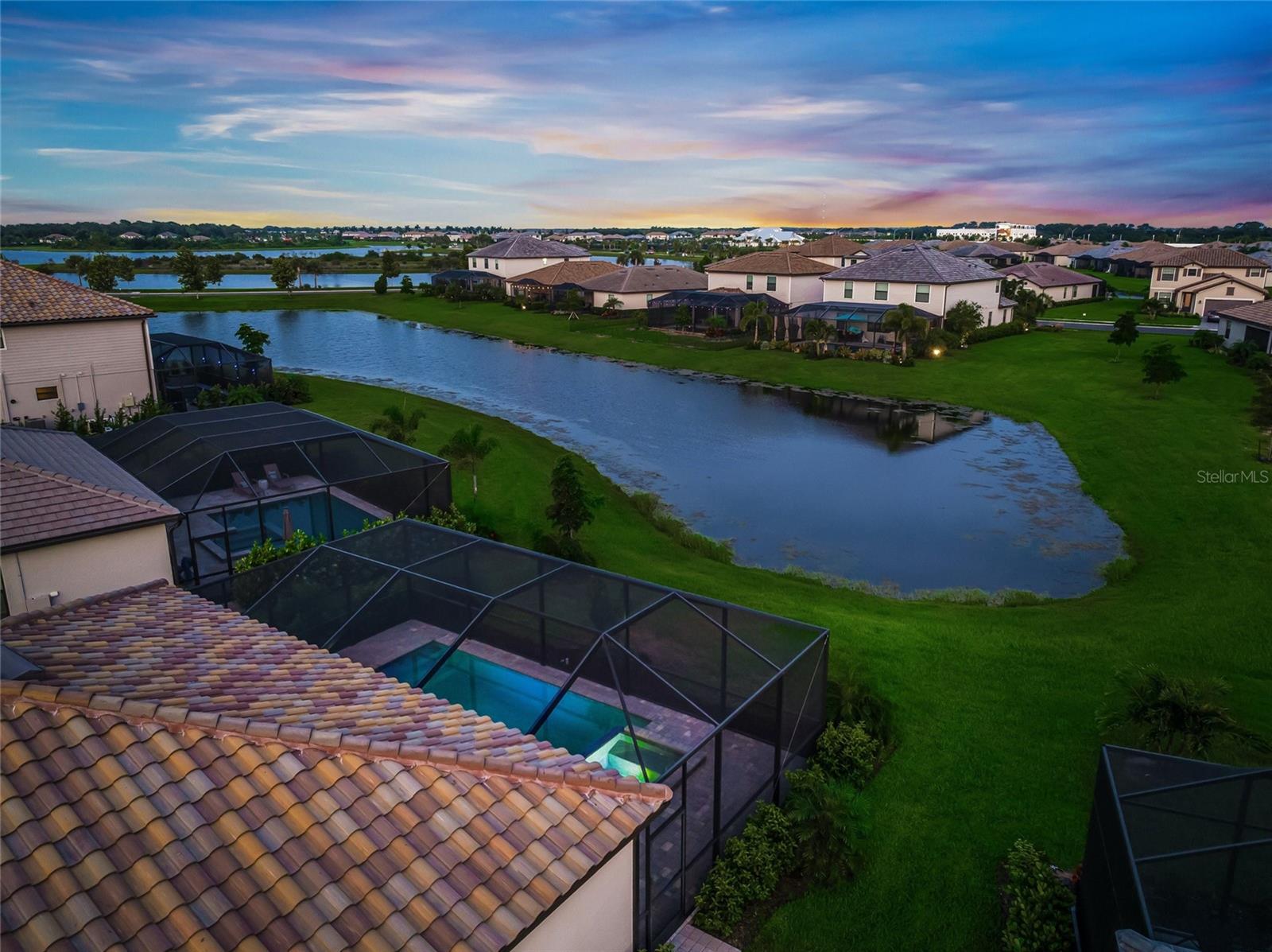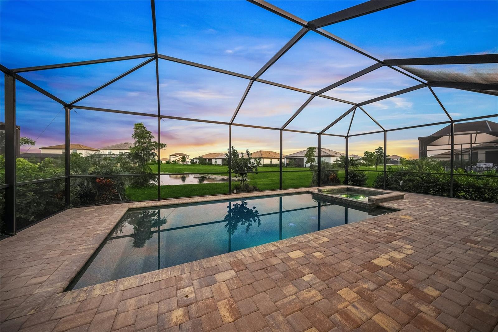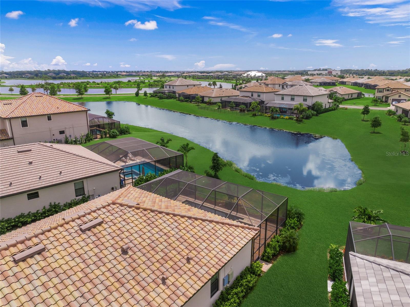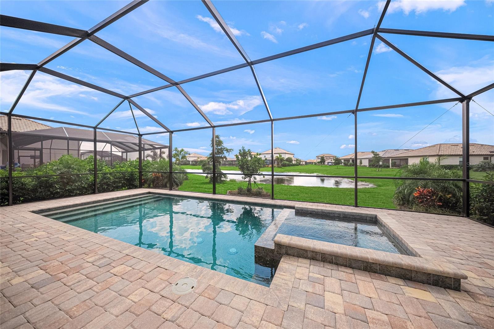 Lived in for only 1 year! Come and get a Nearly New 4 Bedroom 3 Bath Pool home with a water view, on almost a quarter of an acre, and all of the amenities you can dream of in the highly sought after Lorraine Lakes. ****SPECIAL FEATURES AND UPGRADES INCLUDE: Heated Salt-Water Pool & Spa, Upgraded Light Fixtures & Fans, brand new LPV Flooring in all bedrooms (no carpets!), Glass Front Door, Grand Entryway, Pavered Lanai & Driveway. Kitchen is equipped with Granite Countertops, Shaker Cabinets, Stainless Appliances, Gas Range, and a Single Basin Undermount Sink. Primary Bedroom is oversized, has 2 Walk-in Closets, and has Dual Sinks and a Walk-In Shower in the ensuite bath. Bedroom 2 has a private ensuite full bath. Matterport Tour and most recent survey is available. ****AMENITIES INCLUDE: Clubhouse, Resort-Style Community Pool with Poolside Bar, Full Service Restaurant and Poolside Bar, Fitness Center, Aerobics Studio, Splash Park, Pickleball, Tennis, Playground, Sport Court, Basketball Court, Volleyball Court, Arcade. HOA Fees cover all amenities as well ass cable, internet, lawn maintenance, gates & guardhouse.