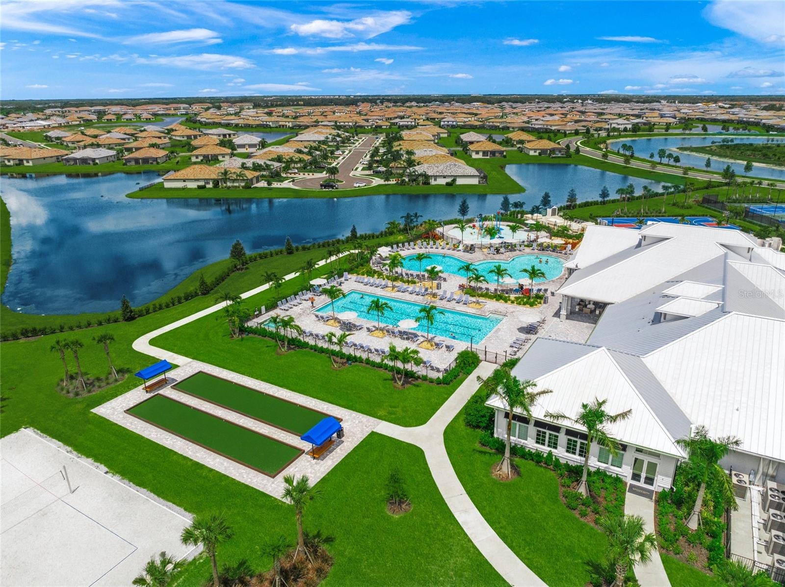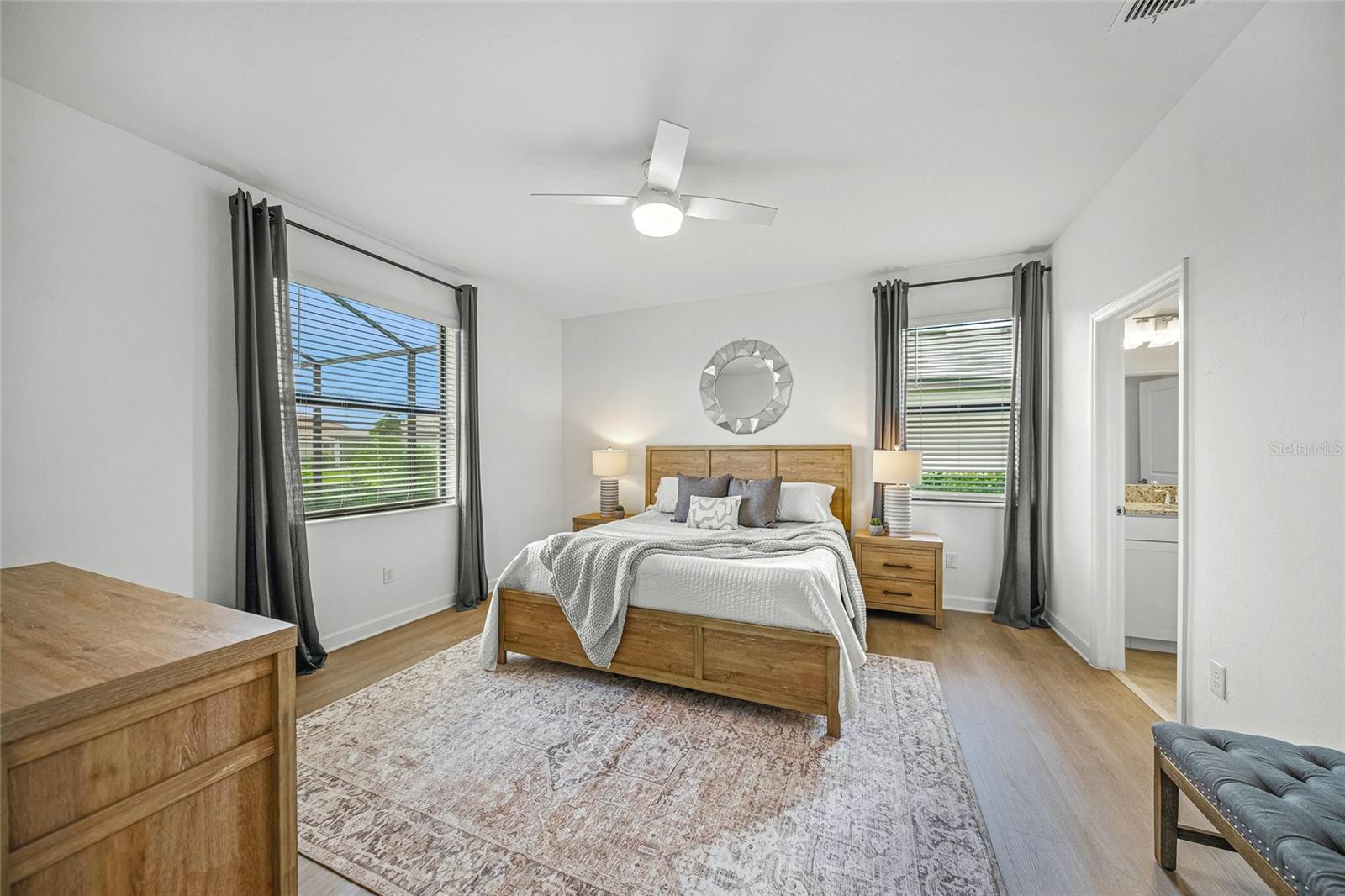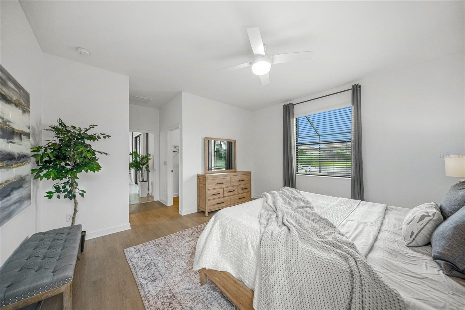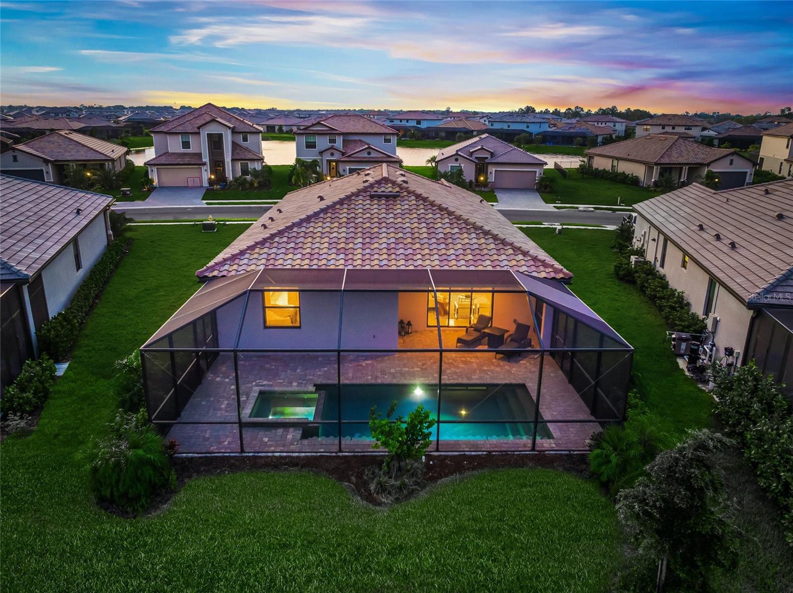 Lived in for only 1 year! Come and get a Nearly New 4 Bedroom 3 Bath Pool home with a water view, on almost a quarter of an acre, and all of the amenities you can dream of in the highly sought after Lorraine Lakes. ****SPECIAL FEATURES AND UPGRADES INCLUDE: Heated Salt-Water Pool & Spa, Upgraded Light Fixtures & Fans, brand new LPV Flooring in all bedrooms (no carpets!), Glass Front Door, Grand Entryway, Pavered Lanai & Driveway. Kitchen is equipped with Granite Countertops, Shaker Cabinets, Stainless Appliances, Gas Range, and a Single Basin Undermount Sink. Primary Bedroom is oversized, has 2 Walk-in Closets, and has Dual Sinks and a Walk-In Shower in the ensuite bath. Bedroom 2 has a private ensuite full bath. Matterport Tour and most recent survey is available. ****AMENITIES INCLUDE: Clubhouse, Resort-Style Community Pool with Poolside Bar, Full Service Restaurant and Poolside Bar, Fitness Center, Aerobics Studio, Splash Park, Pickleball, Tennis, Playground, Sport Court, Basketball Court, Volleyball Court, Arcade. HOA Fees cover all amenities as well ass cable, internet, lawn maintenance, gates & guardhouse.