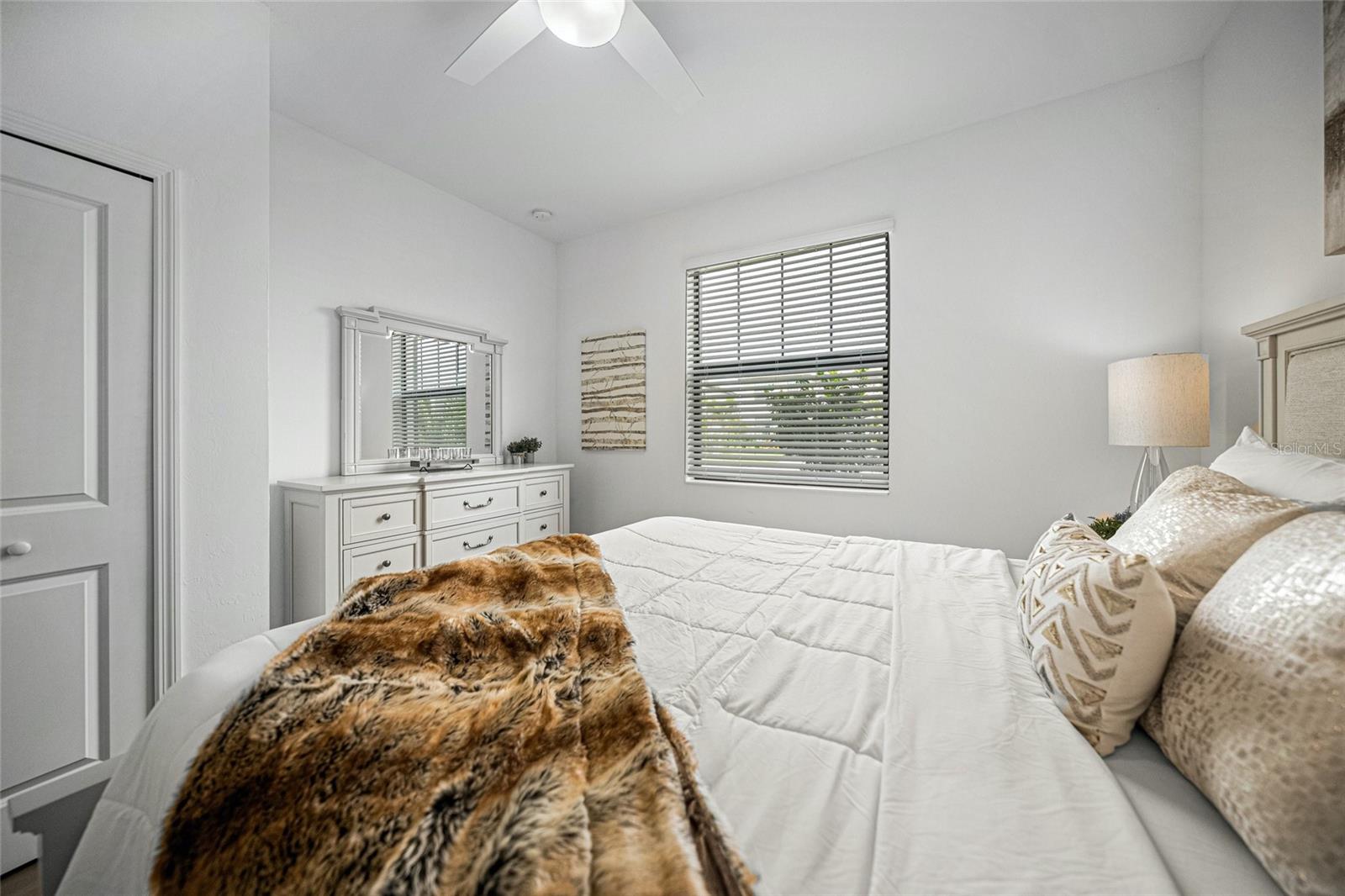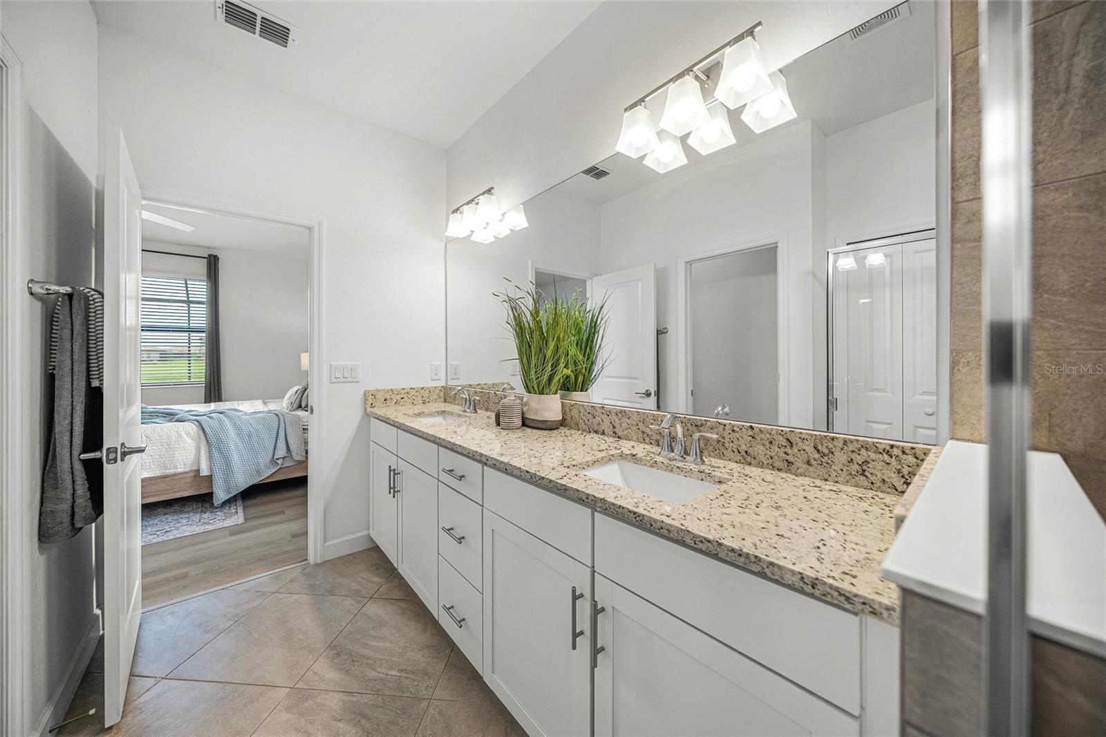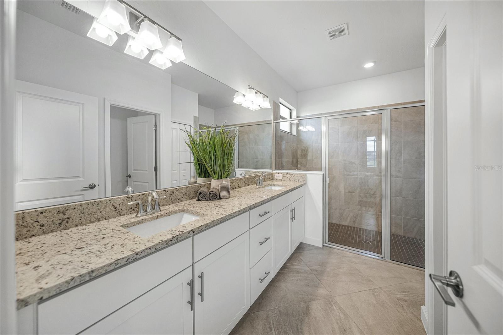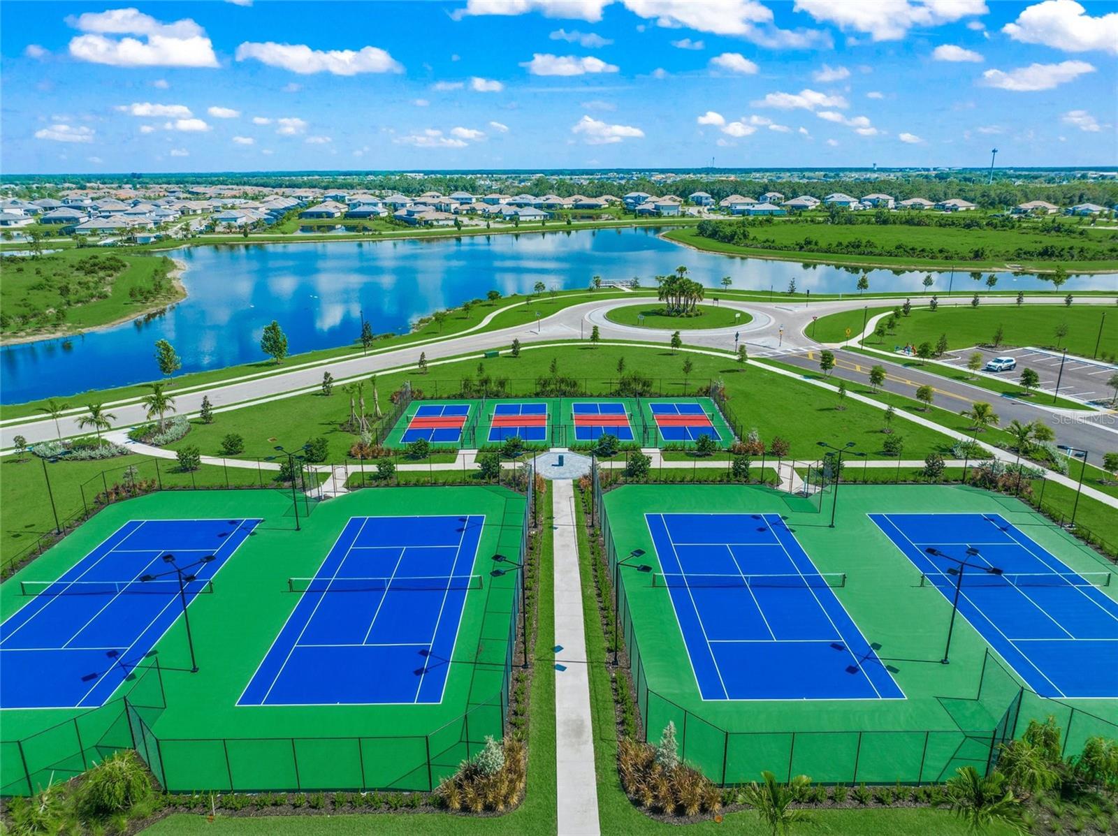 Lived in for only 1 year! Come and get a Nearly New 4 Bedroom 3 Bath Pool home with a water view, on almost a quarter of an acre, and all of the amenities you can dream of in the highly sought after Lorraine Lakes. ****SPECIAL FEATURES AND UPGRADES INCLUDE: Heated Salt-Water Pool & Spa, Upgraded Light Fixtures & Fans, brand new LPV Flooring in all bedrooms (no carpets!), Glass Front Door, Grand Entryway, Pavered Lanai & Driveway. Kitchen is equipped with Granite Countertops, Shaker Cabinets, Stainless Appliances, Gas Range, and a Single Basin Undermount Sink. Primary Bedroom is oversized, has 2 Walk-in Closets, and has Dual Sinks and a Walk-In Shower in the ensuite bath. Bedroom 2 has a private ensuite full bath. Matterport Tour and most recent survey is available. ****AMENITIES INCLUDE: Clubhouse, Resort-Style Community Pool with Poolside Bar, Full Service Restaurant and Poolside Bar, Fitness Center, Aerobics Studio, Splash Park, Pickleball, Tennis, Playground, Sport Court, Basketball Court, Volleyball Court, Arcade. HOA Fees cover all amenities as well ass cable, internet, lawn maintenance, gates & guardhouse.