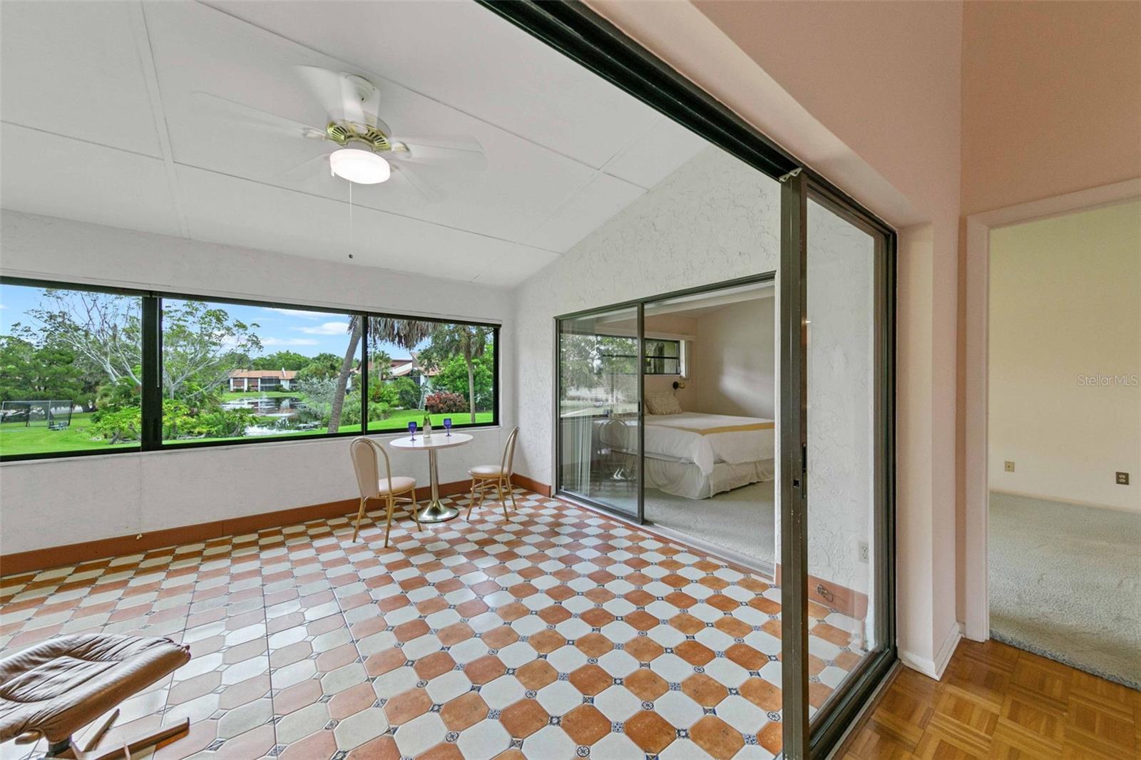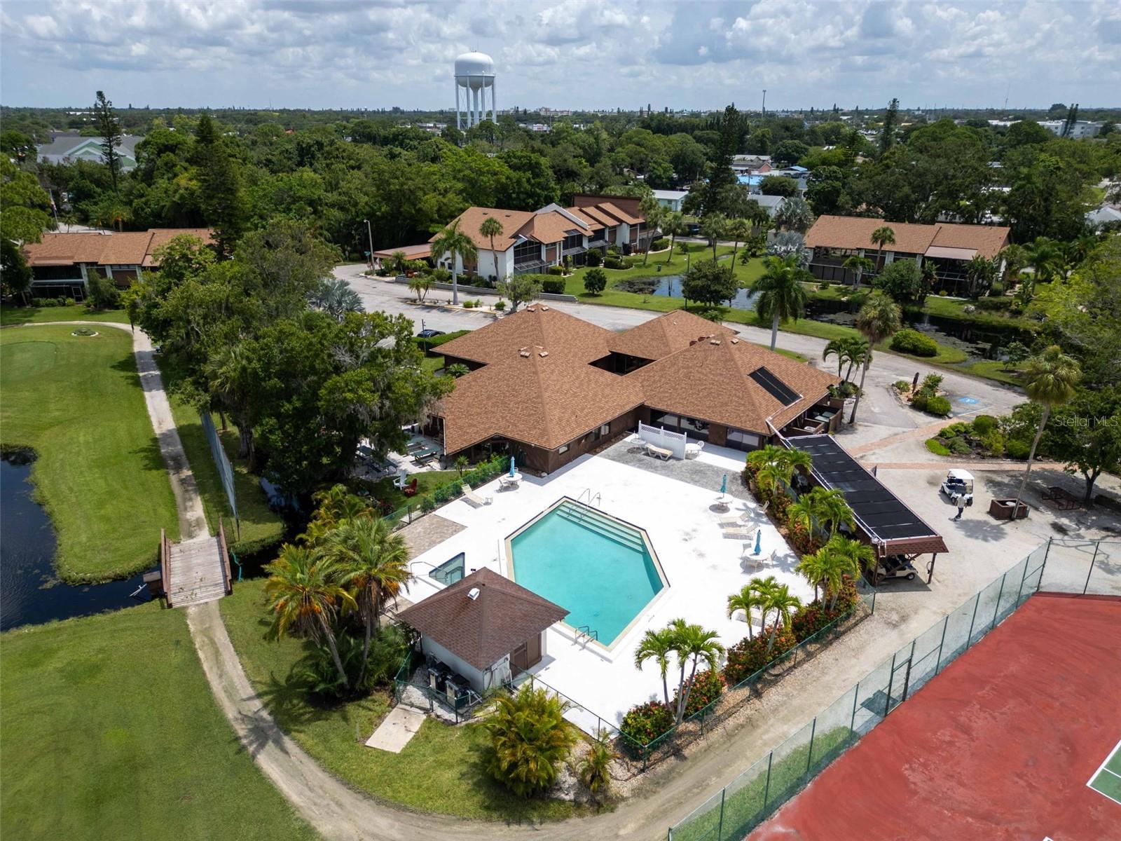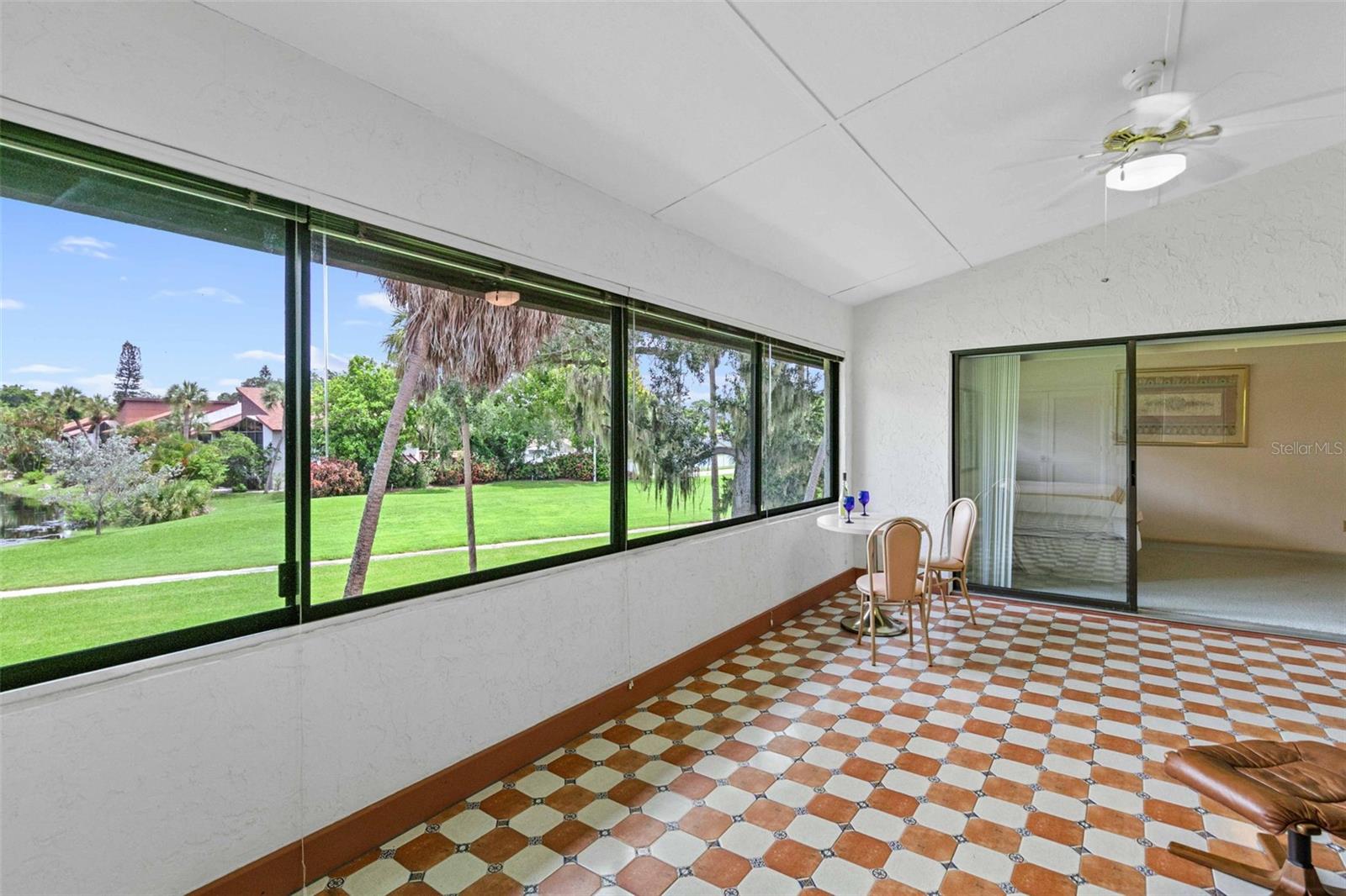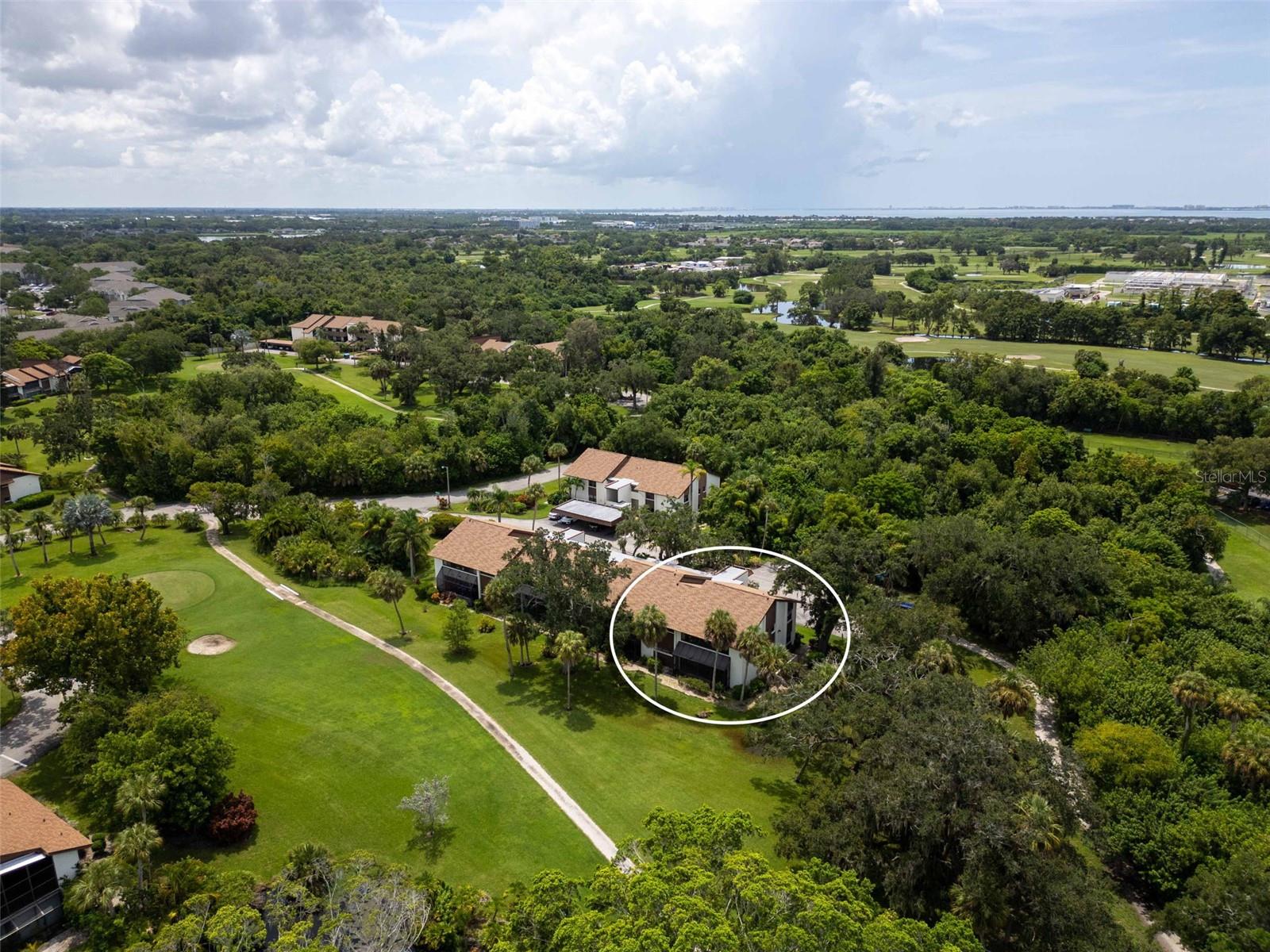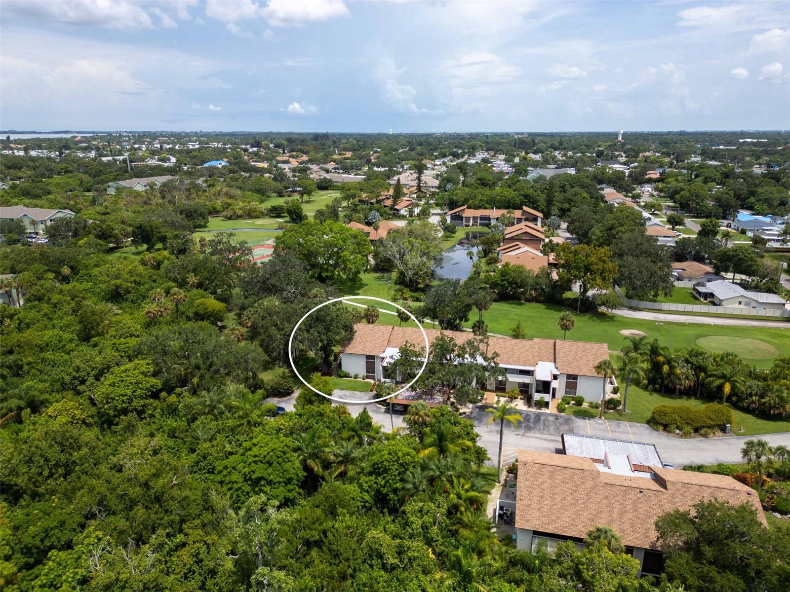 Welcome home to paradise, with the premier unit with the best views in all of Timber Creek! This flawless condo in the highly coveted 55+ pet friendly community of Timber Creek is a spacious 2nd floor 2 bedroom 2 bath Condo and is a TRUE end unit with NO neighbors on three sides, and comes with dedicated covered parking. Perfect for those wanting to live a Florida lifestyle it features a double ensuite layout for hosting friends or family separated for privacy. Relish in the panoramic views of multiple golf holes, lagoon, pickleball/tennis courts, clubhouse and pool from your large fully enclosed and air conditioned Florida Room, which also features a separate storage area and fully enclosed washer/dryer area. Or, sit on the large front porch and enjoy a glass of wine, read a good book or enjoy the winter sunsets (unique to this community). Not only is this location perfect but from the moment you step into this spacious unit you will be left speechless by the amount of natural light that fills the main living area which boasts vaulted ceilings and the many upgrades (all since 2022) which include: new light fixtures, new luxury tile and plush carpet, refinished guest bath and master bath, updated kitchen with white oak and stainless steel backsplash, new appliances (refrigerator, range, dishwasher and microwave) and a new roof. The open and split floor plan is perfect for large gatherings with family or friends all while maintaining a sense of privacy. If you enjoy playing golf this unit, and community, are perfect for you with a Nine-hole par 3 golf course, which is also an Audubon preserve. Simply grab your clubs from the golf closet and you will be tee off in minutes. Timber Creek is a quiet low density community spread out over approximately 27 acres and embodies the quintessential Florida Lifestyle boasting: a tranquil bird sanctuary and pond, golf cart friendly active community with heated pool & spa, pickleball, fitness center, golf shop, clubhouse with kitchen, library, pool table & ping pong table, and tennis courts. Timber Creek is located only 5 miles from the turquoise waters and white sand beaches of the Gulf of Mexico, one mile to GT Bray Park and the YMCA, easy access to I-75 and SRQ airport, near shopping, restaurants, hospitals & medical offices, local marinas and boat ramps. Book your private viewing and make an offer before it's gone!