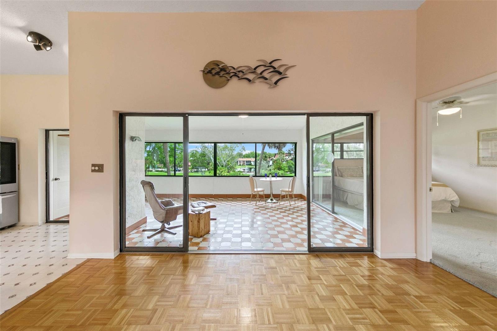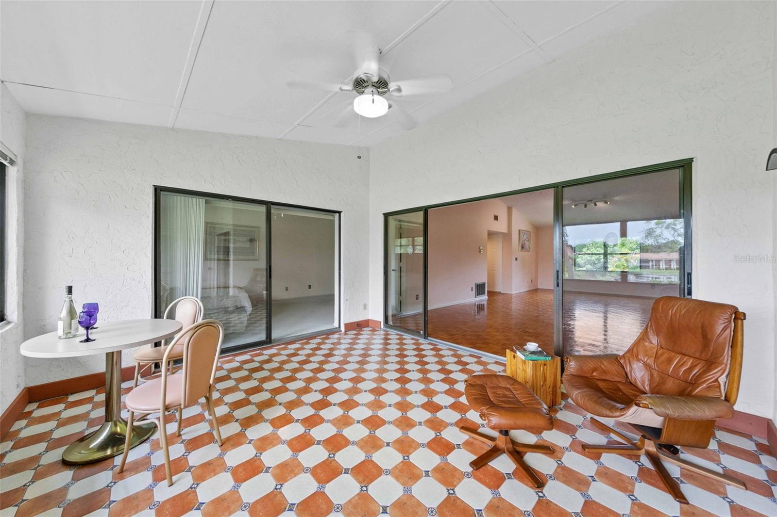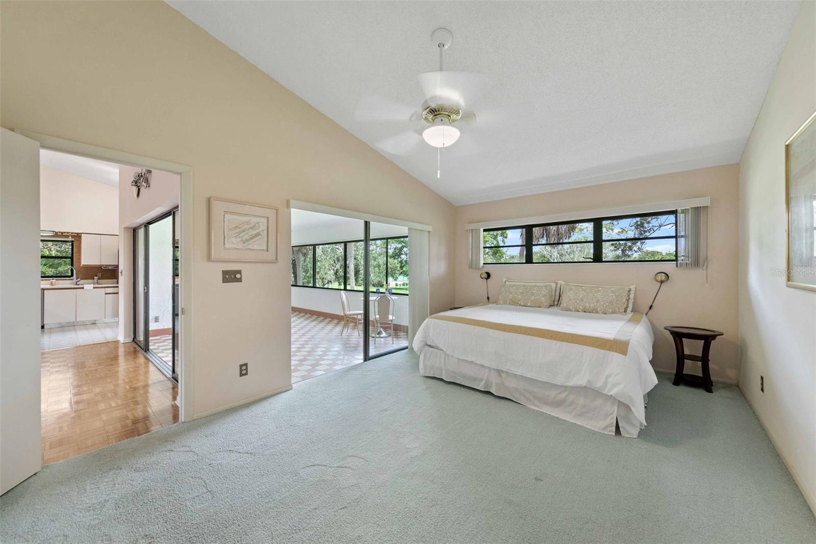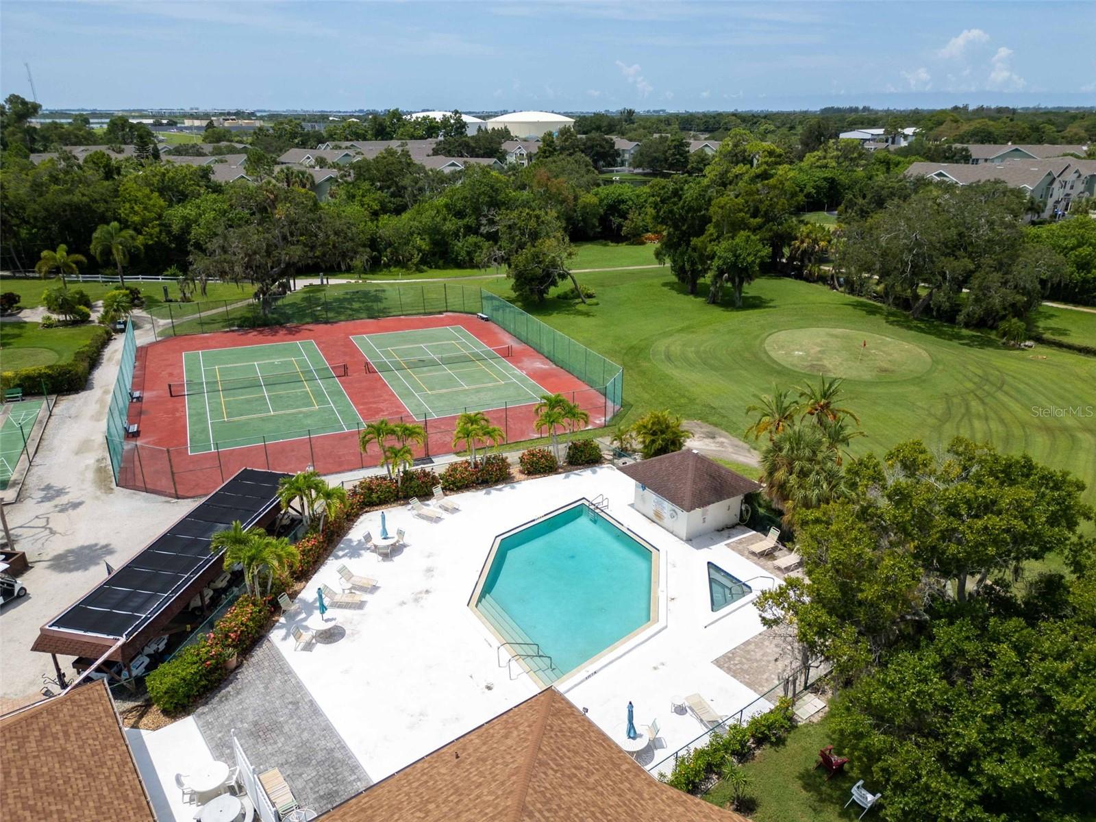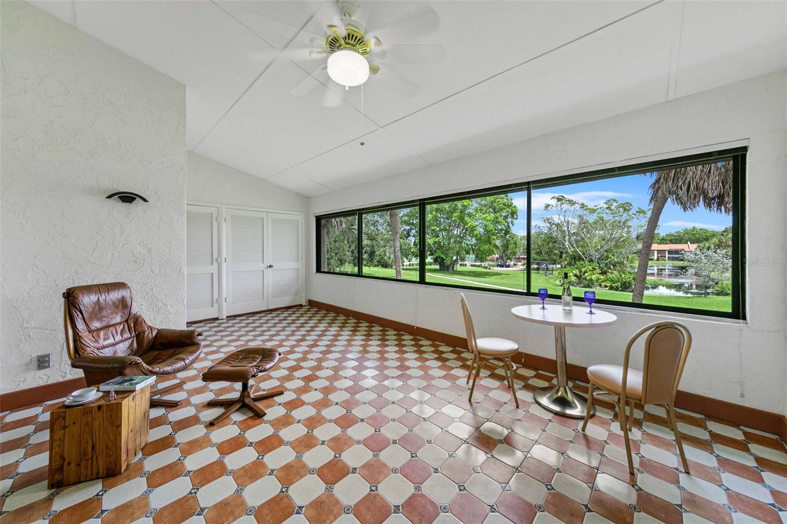 Welcome home to paradise, with the premier unit with the best views in all of Timber Creek! This flawless condo in the highly coveted 55+ pet friendly community of Timber Creek is a spacious 2nd floor 2 bedroom 2 bath Condo and is a TRUE end unit with NO neighbors on three sides, and comes with dedicated covered parking. Perfect for those wanting to live a Florida lifestyle it features a double ensuite layout for hosting friends or family separated for privacy. Relish in the panoramic views of multiple golf holes, lagoon, pickleball/tennis courts, clubhouse and pool from your large fully enclosed and air conditioned Florida Room, which also features a separate storage area and fully enclosed washer/dryer area. Or, sit on the large front porch and enjoy a glass of wine, read a good book or enjoy the winter sunsets (unique to this community). Not only is this location perfect but from the moment you step into this spacious unit you will be left speechless by the amount of natural light that fills the main living area which boasts vaulted ceilings and the many upgrades (all since 2022) which include: new light fixtures, new luxury tile and plush carpet, refinished guest bath and master bath, updated kitchen with white oak and stainless steel backsplash, new appliances (refrigerator, range, dishwasher and microwave) and a new roof. The open and split floor plan is perfect for large gatherings with family or friends all while maintaining a sense of privacy. If you enjoy playing golf this unit, and community, are perfect for you with a Nine-hole par 3 golf course, which is also an Audubon preserve. Simply grab your clubs from the golf closet and you will be tee off in minutes. Timber Creek is a quiet low density community spread out over approximately 27 acres and embodies the quintessential Florida Lifestyle boasting: a tranquil bird sanctuary and pond, golf cart friendly active community with heated pool & spa, pickleball, fitness center, golf shop, clubhouse with kitchen, library, pool table & ping pong table, and tennis courts. Timber Creek is located only 5 miles from the turquoise waters and white sand beaches of the Gulf of Mexico, one mile to GT Bray Park and the YMCA, easy access to I-75 and SRQ airport, near shopping, restaurants, hospitals & medical offices, local marinas and boat ramps. Book your private viewing and make an offer before it's gone!