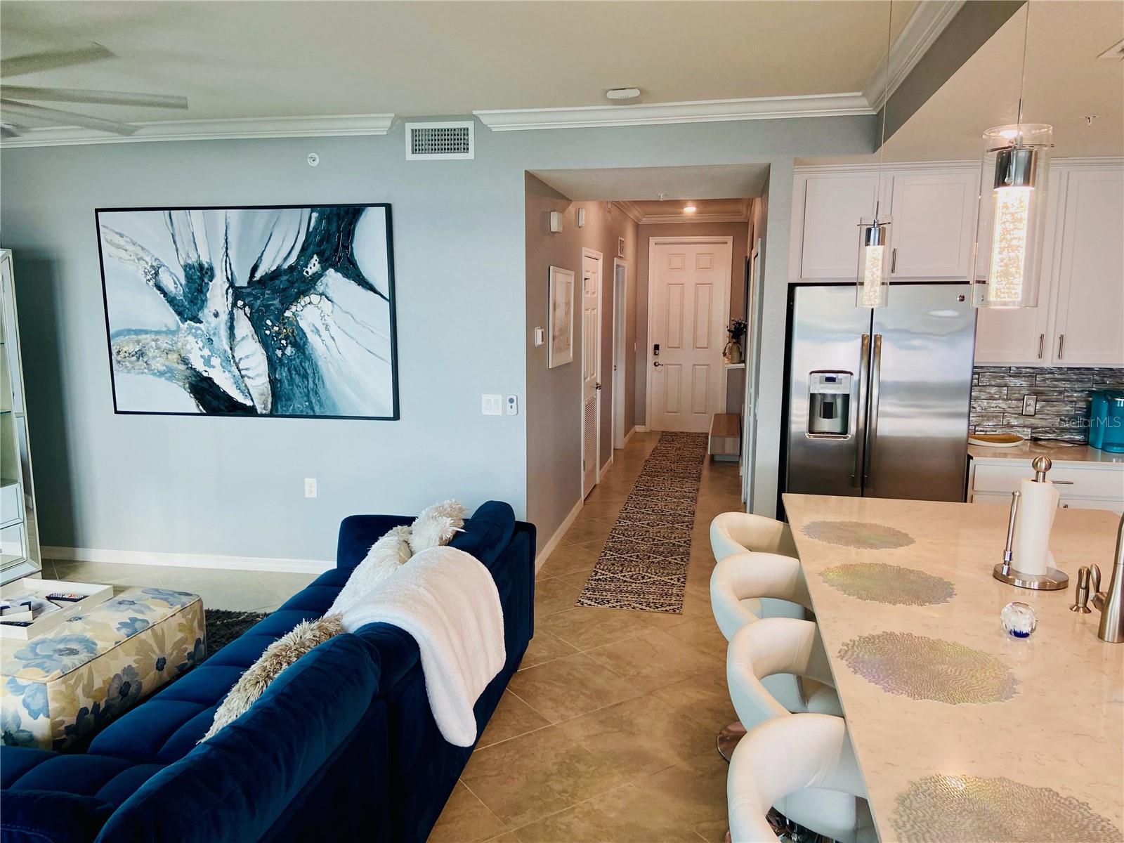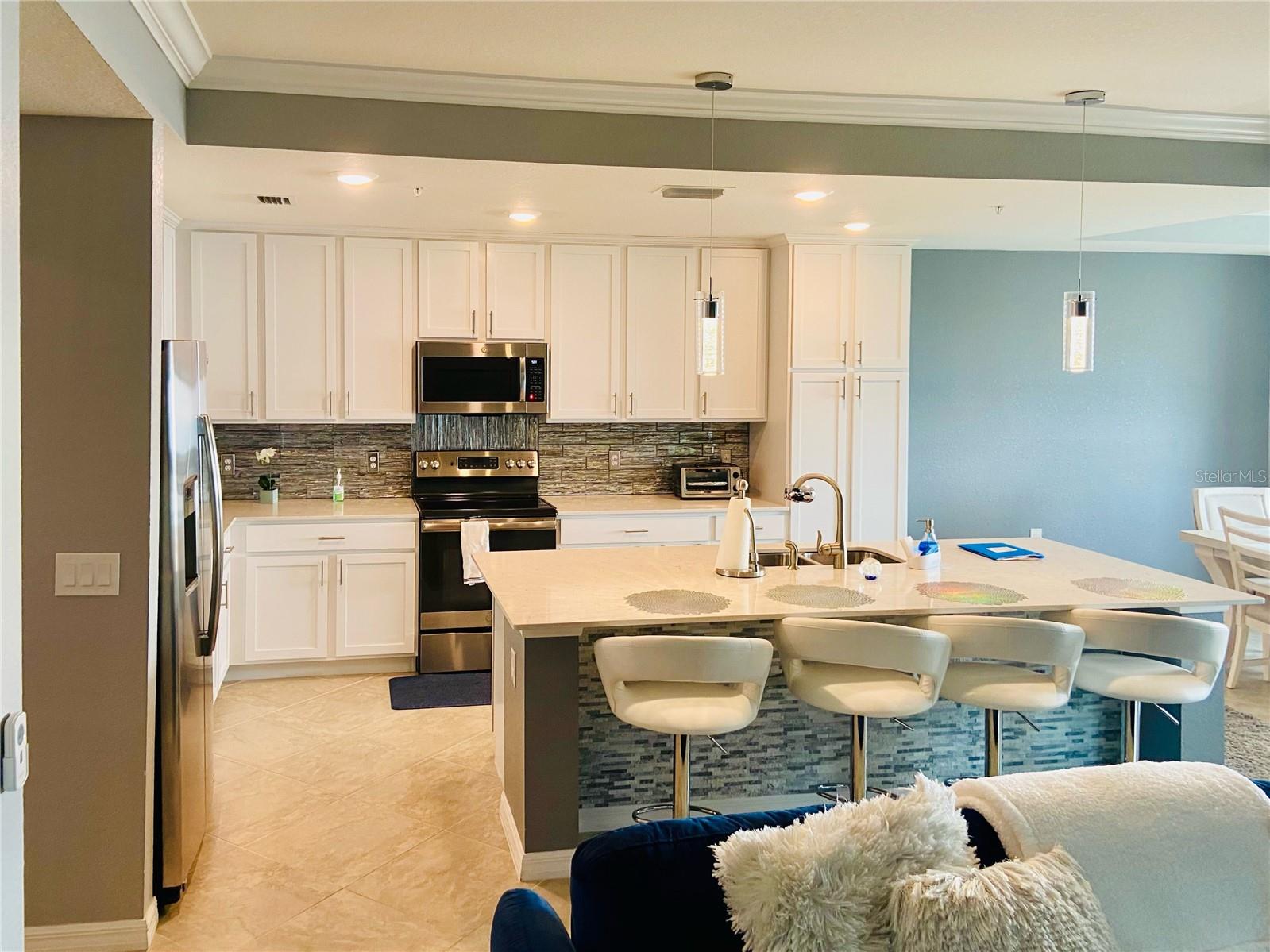 Tidewater preserve boating community is uniquely located to suit the lifestyle and entertainment needs of couples, families and friends. Premier direct waterfront unit overlooking the awe-inspiring Manatee River. From the private balconies overlooking the river, residents of Tidewater relish spectacular nightly sunsets and extraordinary sightings of dolphins, eagles and manatees. Exquisite craftsmanship is evident throughout this luxury 2 bedroom, 2 bathroom highly desired Birkdale model condo. Enjoy your million dollar waterfront view from your living room, kitchen, dining room and screened Lanai. This condo features an open, ultra-modern kitchen with a statement island, stainless steel appliances, stylish backsplash, distinctive quartz counter-tops, and luxurious 42" Shaker cabinets. High volume ceilings featuring crown molding, upgraded fixtures and HURRICANE RATED windows/sliders. 2 bedrooms and elegant finishes throughout the 2 bathrooms which feature a luxurious master bath with quartz vanity and expansive shower. Laundry room includes full washer and dryer. Designated covered parking. Separate exterior storage unit included. FURNISHINGS AVAILABLE! Tidewater community includes all amenities; private secured gated and 24/7 manned entrance, clubhouse, 3 pools, tennis courts, dog park and boating/sports enthusiasts can also take advantage of the boat marina, kayak/canoe park and fitness facilities. No fixed bridges, ocean access, and marina with max boat size 32 ft slips for rent. The community boat lift provides that lock system access from marina to the river with boating access to the barrier islands and Gulf. LOCATION puts you near I-75 for commuting, a few minutes to UTC, 15-20 minutes to any of the beaches. This isn't just a home, it's a lifestyle – a luxurious sanctuary where dreams become reality!