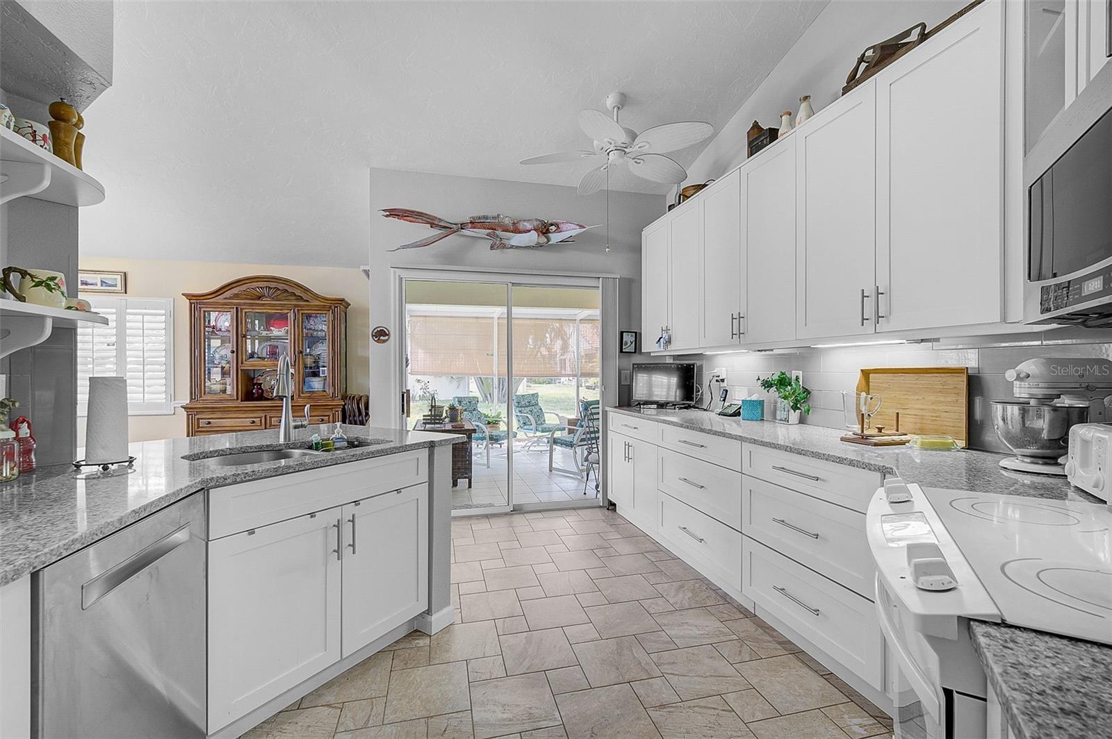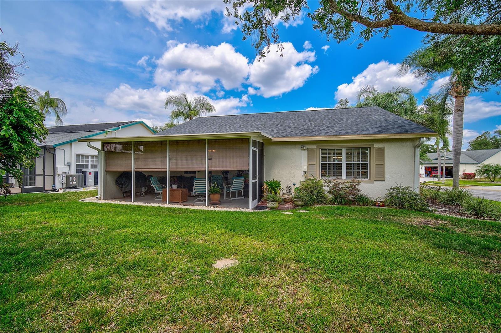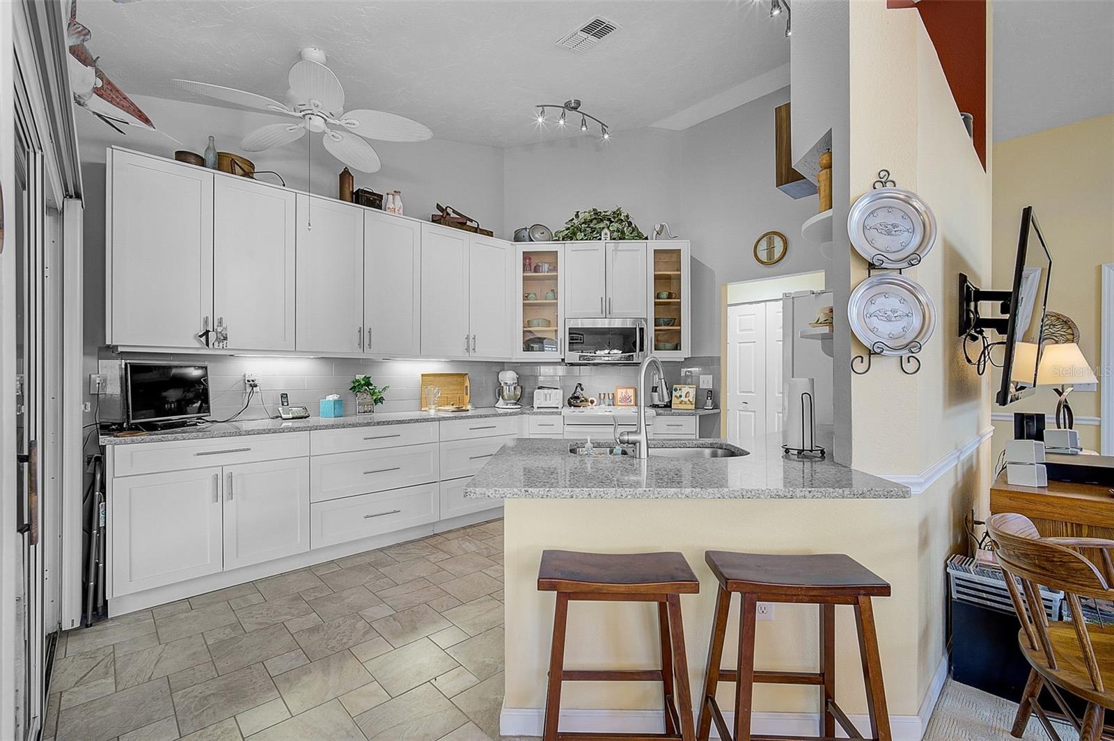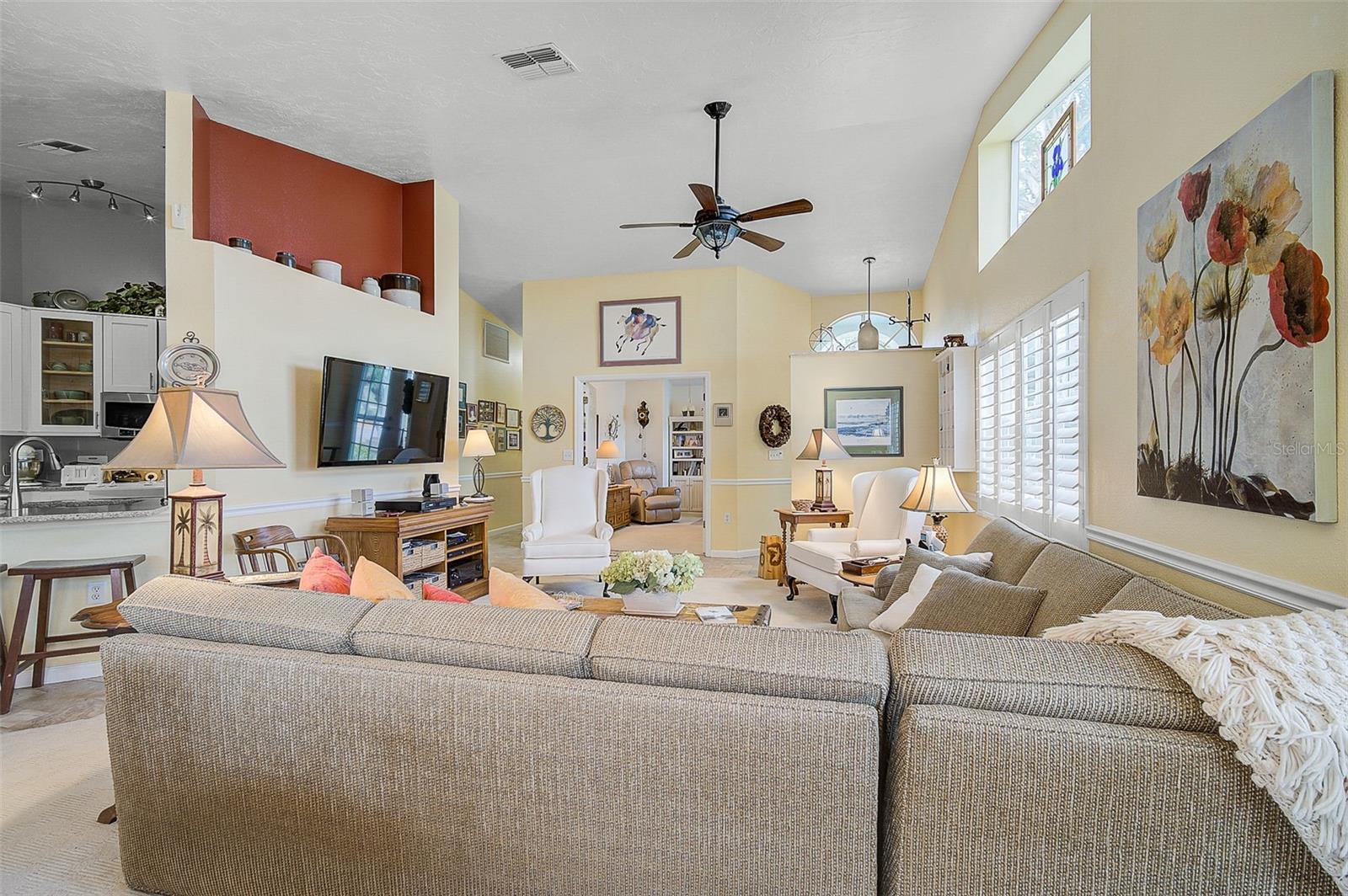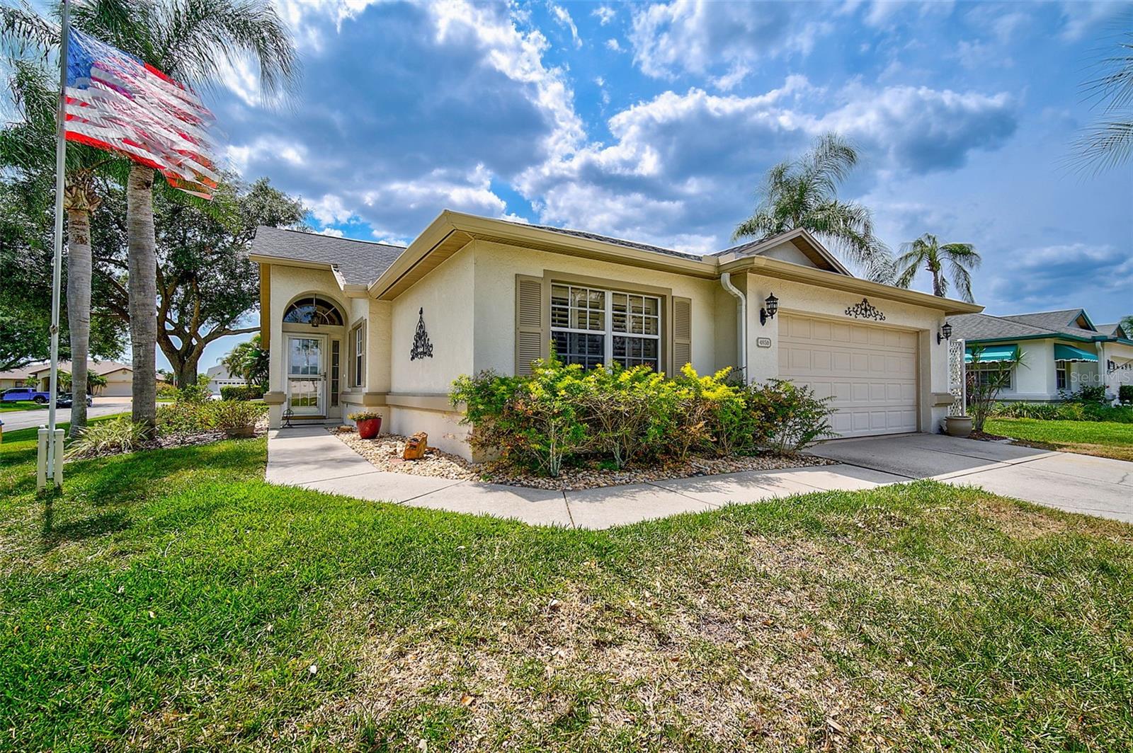 Located in The Greens of Peridia, this 1,756 Sq. Ft. home offers 2 BR/2BA + Den, all situated on a desirable corner lot. The entryway greets you with a gorgeous glass door, leading into a space filled with natural light. Plantation shutters adorn every window, adding both style and privacy. The updated kitchen features granite countertops, tall cabinets, track lighting, and a spacious pantry, offering both functionality and elegance. Adjacent to the kitchen, you'll find a combined living and dining area with high ceilings, perfect for entertaining. The primary bedroom includes a walk-in closet and an owner's bath with a large shower and dual sinks, providing a comfortable retreat. The versatile den can be used as a home office, guest room, or hobby space, catering to your unique needs. The large screened lanai provides a peaceful outdoor space to enjoy your morning coffee or evening relaxation. A/C replaced in 2020 and the roof in 2022. Don't miss out on this beautifully maintained home, ready for you to move in! Living in Peridia Golf & Country Club offers a vibrant lifestyle with access to an 18-hole executive golf course, tennis courts, pickleball, bar poker, live music with dancing, Mahjong, members-only events, and much more! Conveniently located close to restaurants, shopping, the Gulf beaches, the airport, and more! One Time- Capital Reserve $4,000; Quarterly- Yard Maintenance $329.00 ; Quarterly- Master Association $877; Annual- Food/beverage Minimum $450; One Time- Application Fees $200.