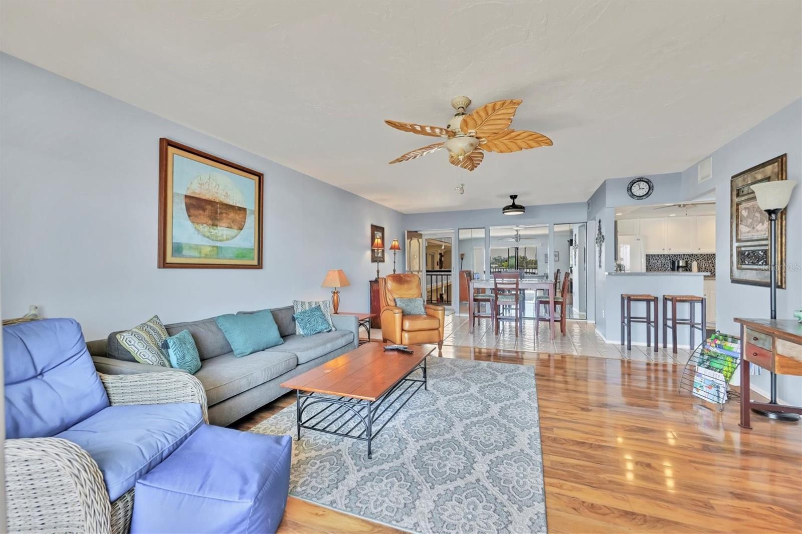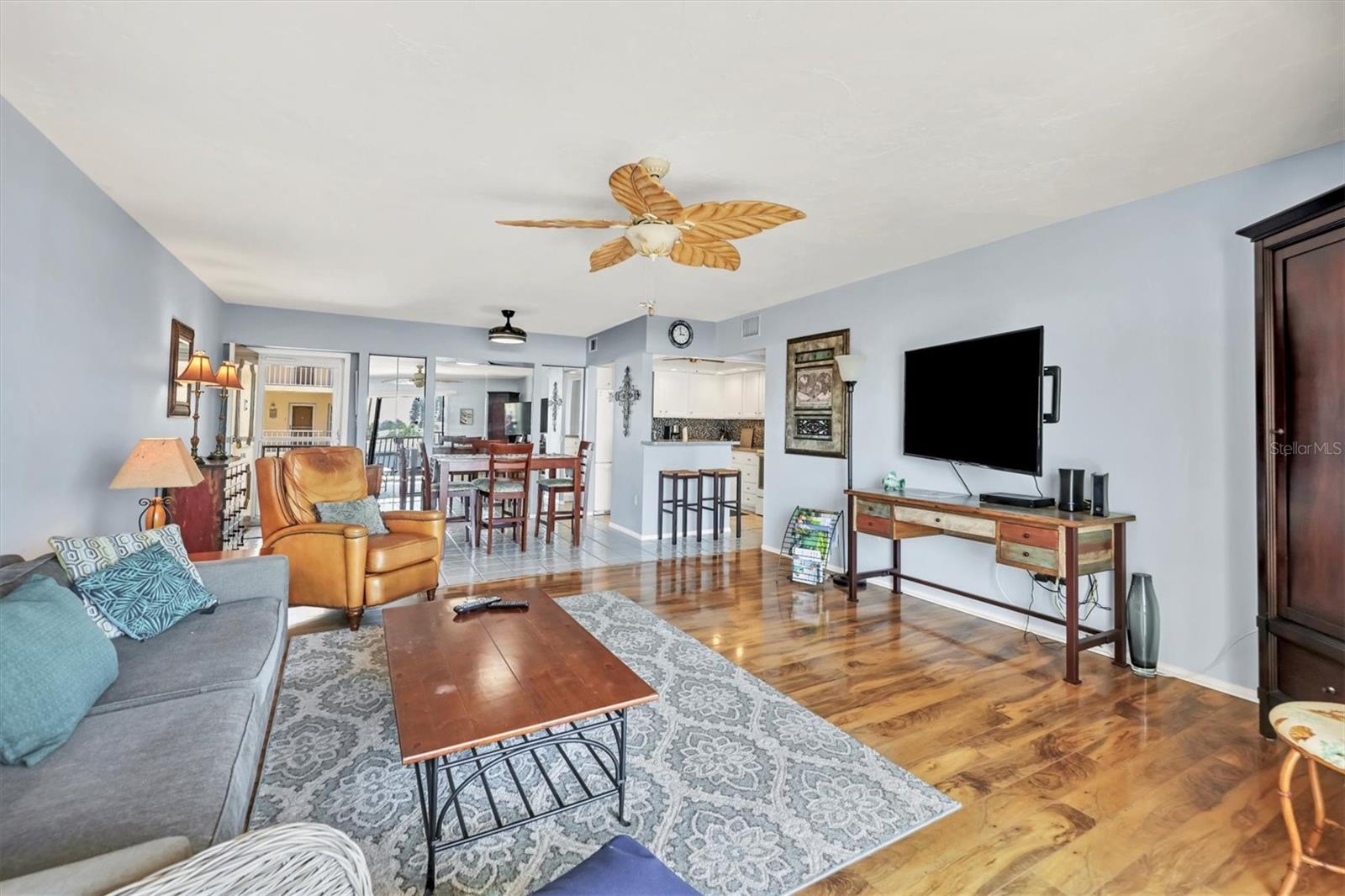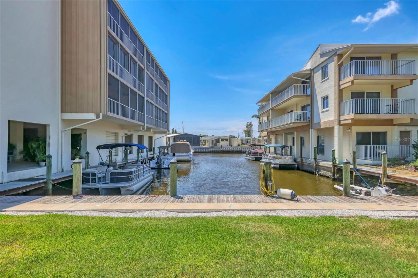 Location! Location! Location! This is a True Boaters Paradise! This is where you can park your boat for $2.00 a foot! Discover the best-kept secret in Bradenton— WELCOME BOATERS to Sarabay Cove! Step out of your condo and onto your boat, and in just minutes, you'll be cruising Sarasota Bay. Don't miss out on this stunning condo; it's a must-see! From the moment you enter, you'll notice the meticulous care and updates throughout this two-bedroom, two-bath, first-floor unit that feels like a model home. The kitchen features beautiful newer cabinets, a stylish backsplash, and quartz countertops, all opening to the living and dining rooms. There is also a balcony with sliding glass doors that lead to your lanai with a gorgeous water view. Enjoy a different breathtaking sunset every evening. Open the sliding doors to let in fresh air and create a perfect cross breeze. The master bedroom is freshly painted, with wood floors, a large walk-in closet, and sliding glass doors that lead to the balcony. The en-suite bathroom features a walk-in shower, a new vanity, and ceramic tile floors. The second bedroom is bright and airy, with a tub/shower combo and an updated hall bathroom. Hurricane shutters are on all the sliding glass doors, and it is easy to close in minutes. This unit features a storage closet on the lanai and an additional one on the first floor. The community boasts stunning water views, a beautiful clubhouse, gas grills, an Olympic-sized pool, a hot tub, tennis courts, a community workshop, a dinghy room, elevators, and storage for bikes, kayaks, and beach items. You can dock your boat for just $2.00 foot a month, with electricity and water included. The complex consists of three buildings with canals between each one, allowing up to 12 rentals year (with a 30-day minimum stay). Centrally located near shopping, banks, gyms, and the world-famous Lido Beach—RUN, don't walk, to see this spectacular condo!